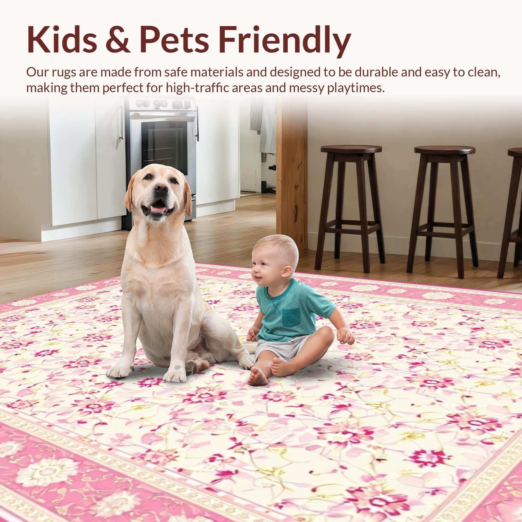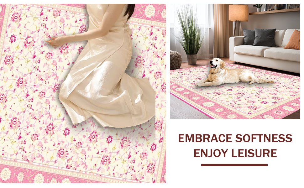 Ultra Soft Area Rug, Non Slip, Stain Resistant, Washable Area Rugs for Living Room, Bedroom, Inviting Cozy Diamond Pattern(Pink) Overview: