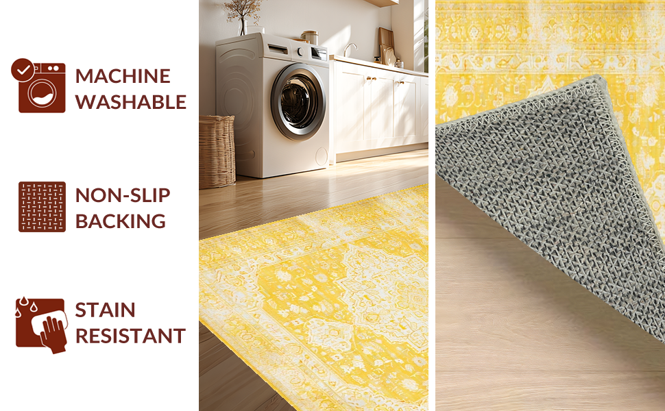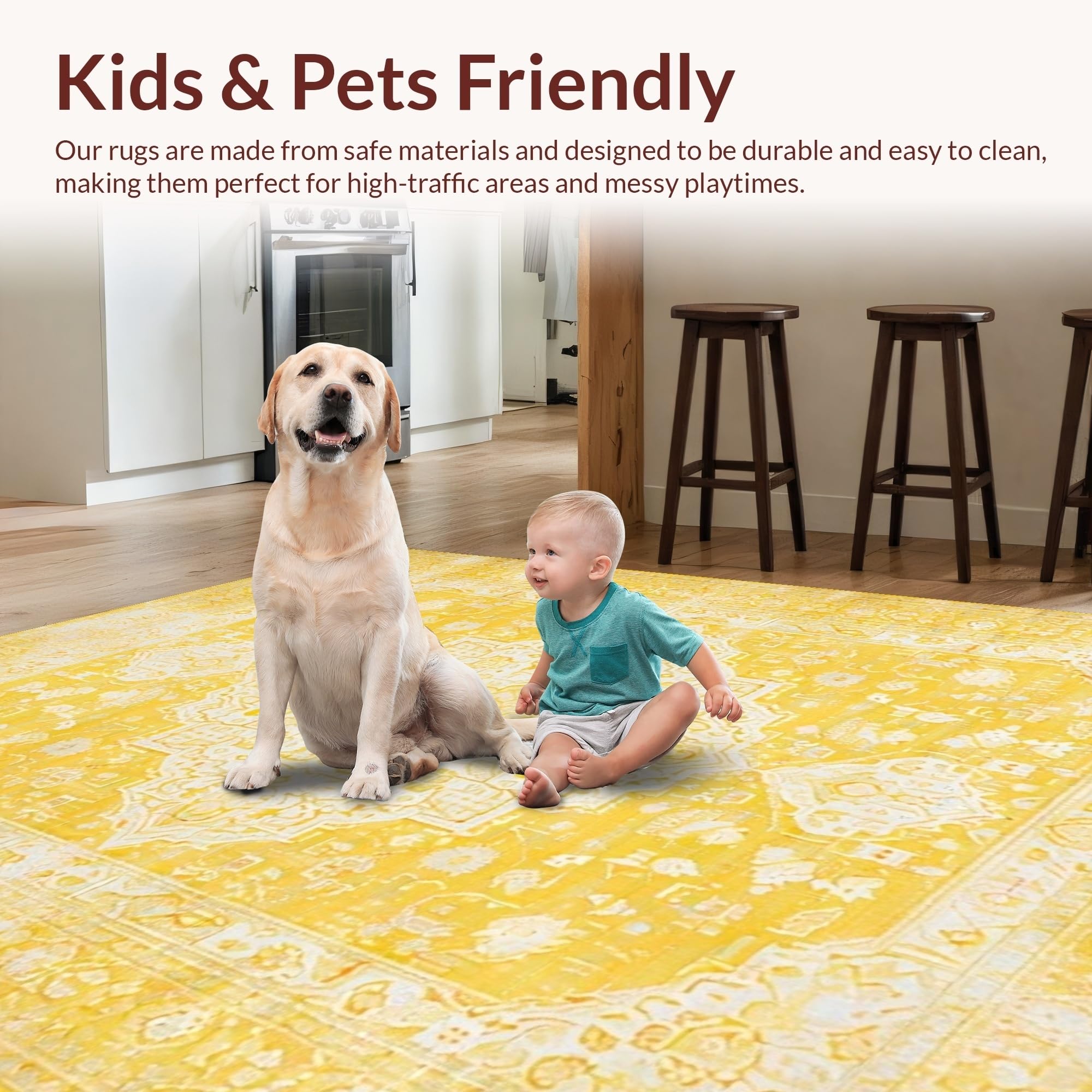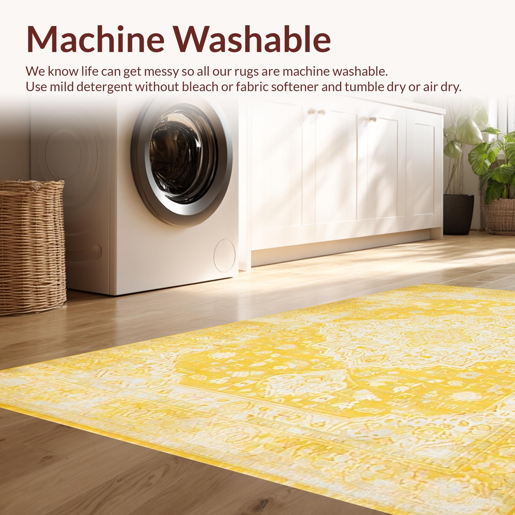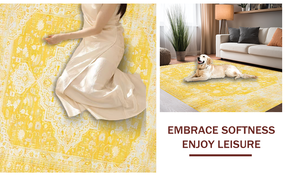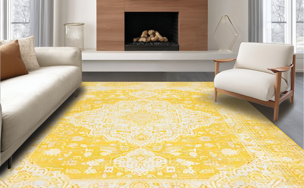 Ultra Soft Area Rug, Non Slip, Stain Resistant, Washable Area Rugs for Living Room, Bedroom, Inviting Cozy Floral Composition(Yellow) Overview: