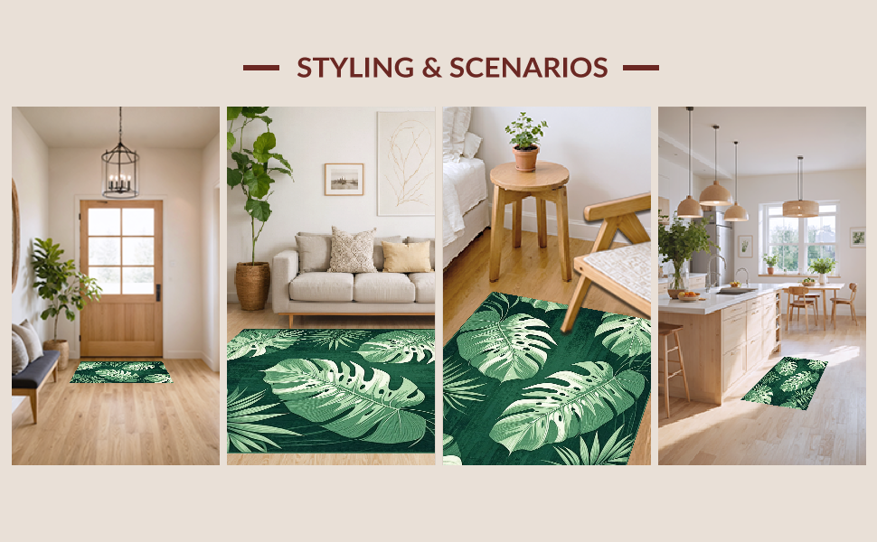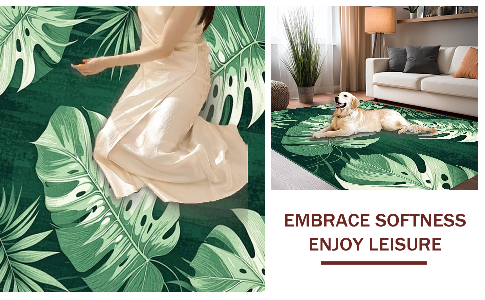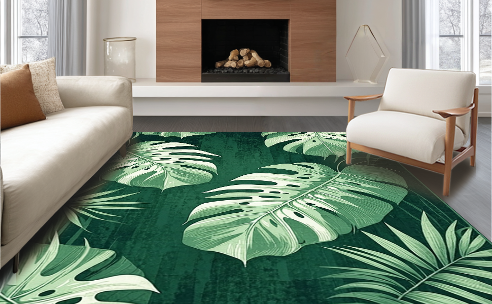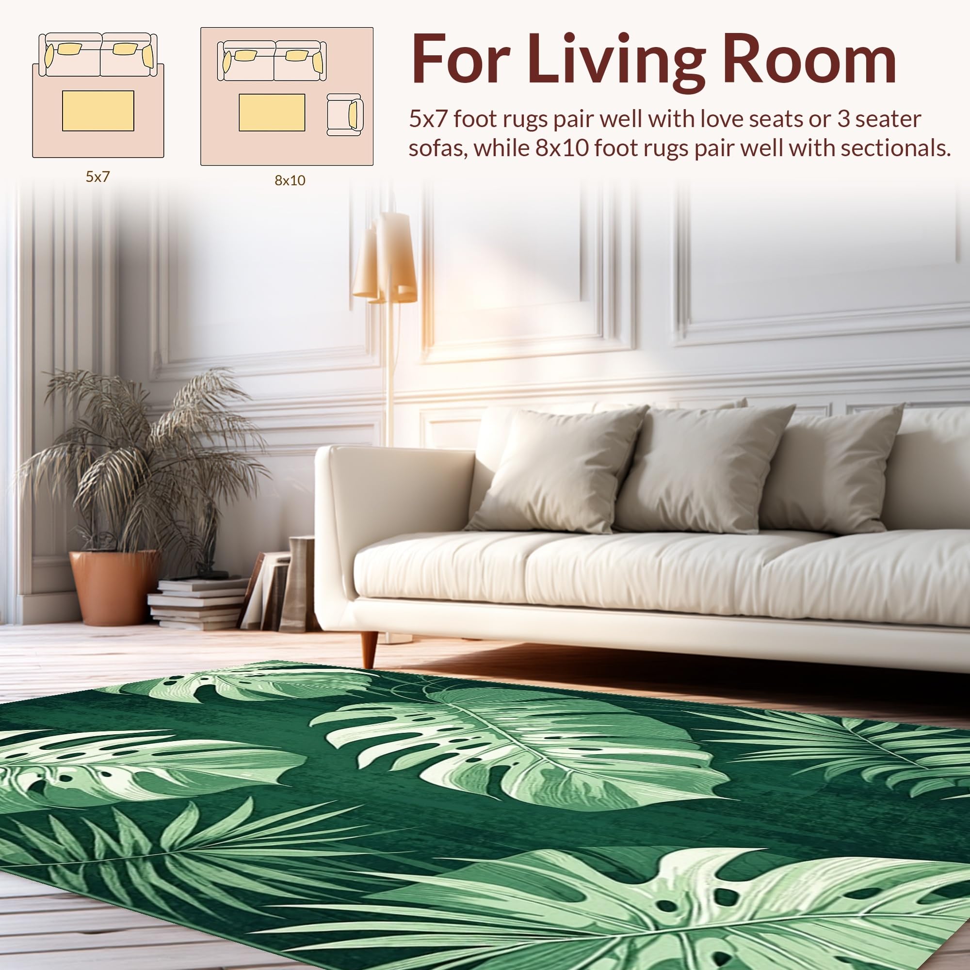 Ultra Soft Area Rug, Non Slip, Stain Resistant, Washable Area Rugs for Living Room, Bedroom, Inviting Greenery Decor Accent(Green) Overview: