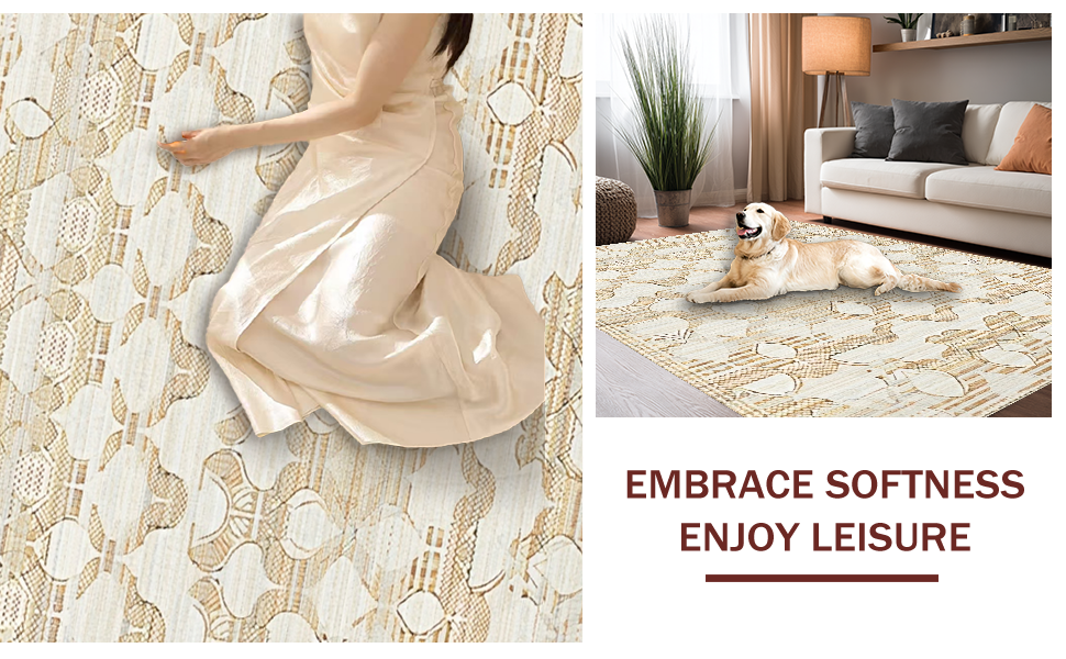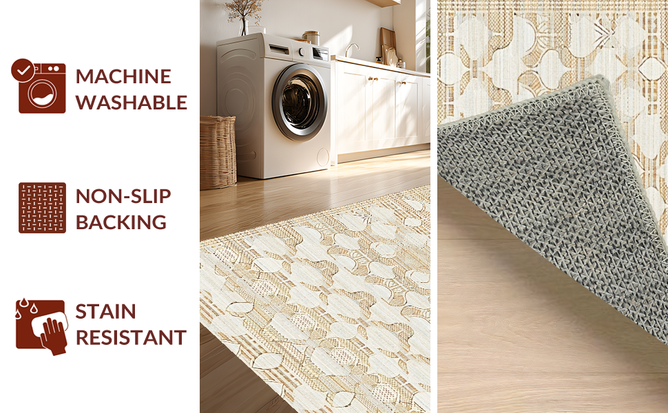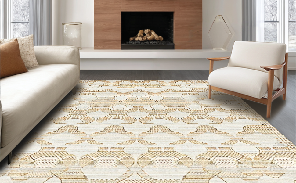 Ultra Soft Area Rug, Non Slip, Stain Resistant, Washable Area Rugs for Living Room, Bedroom, Inviting Handwoven Organic Lines(Beige) Overview: