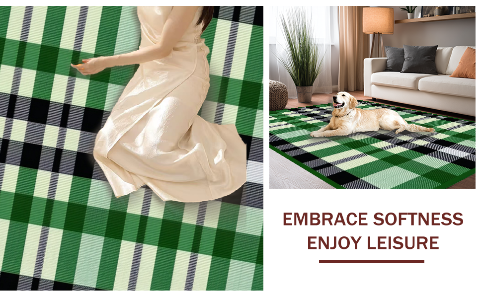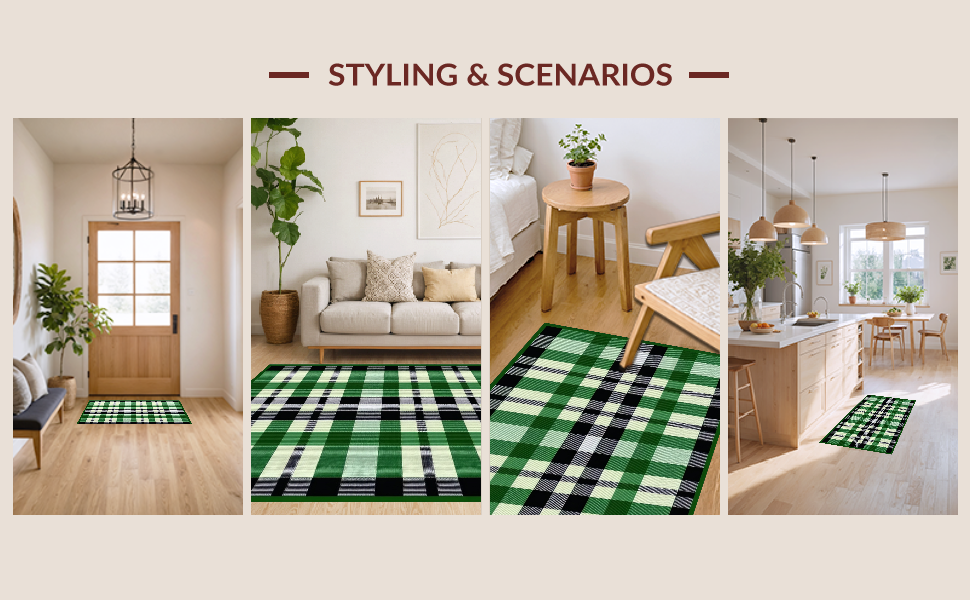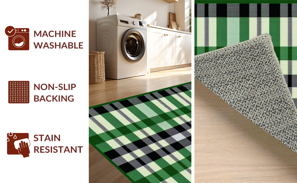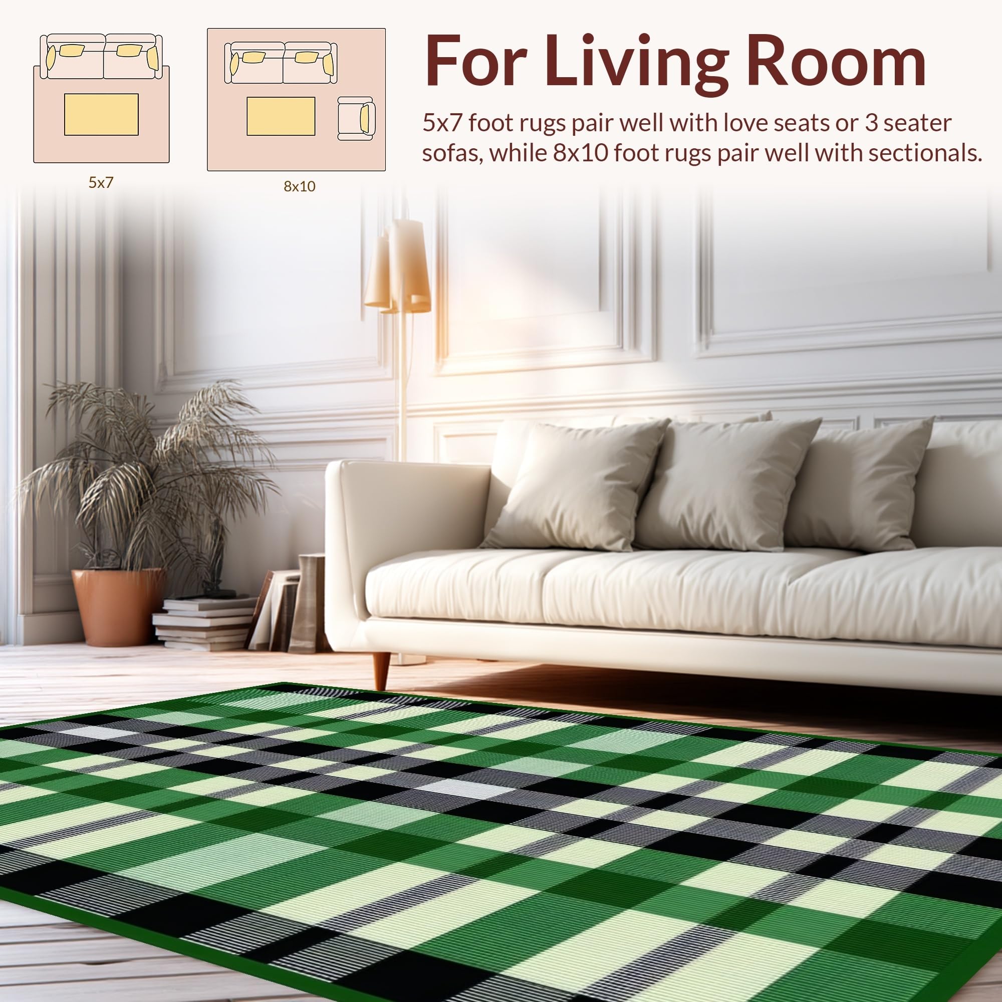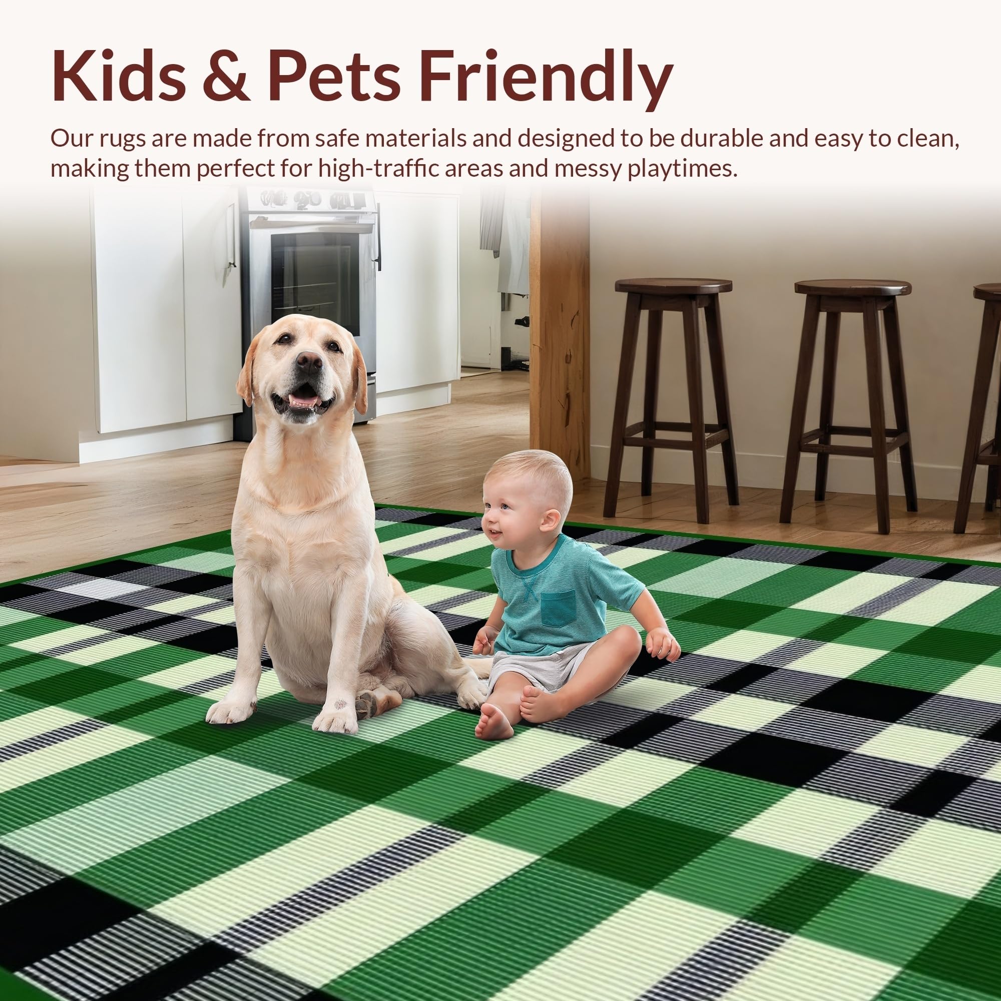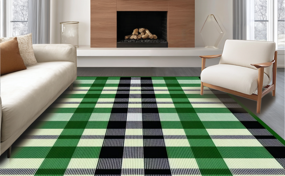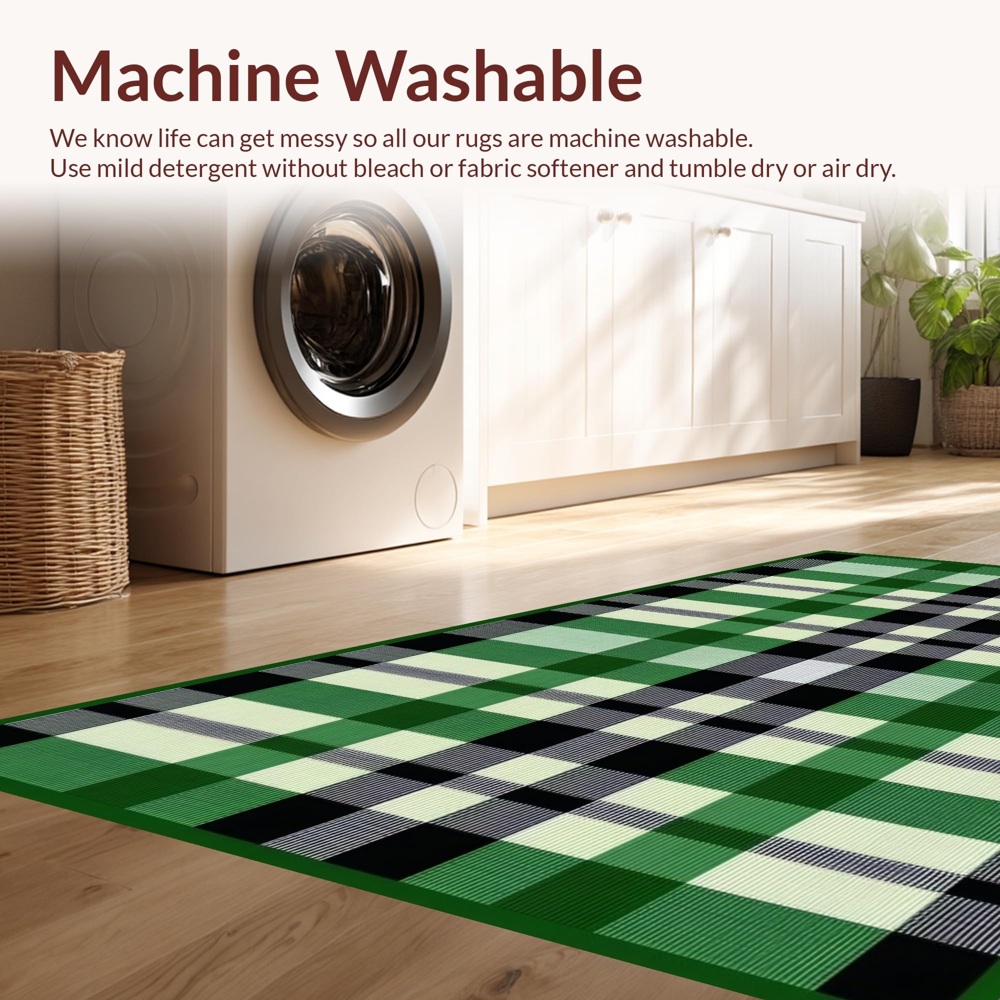 Ultra Soft Area Rug, Non Slip, Stain Resistant, Washable Area Rugs for Living Room, Bedroom, Inviting Holiday Plaid Decor Element(Green) Overview: