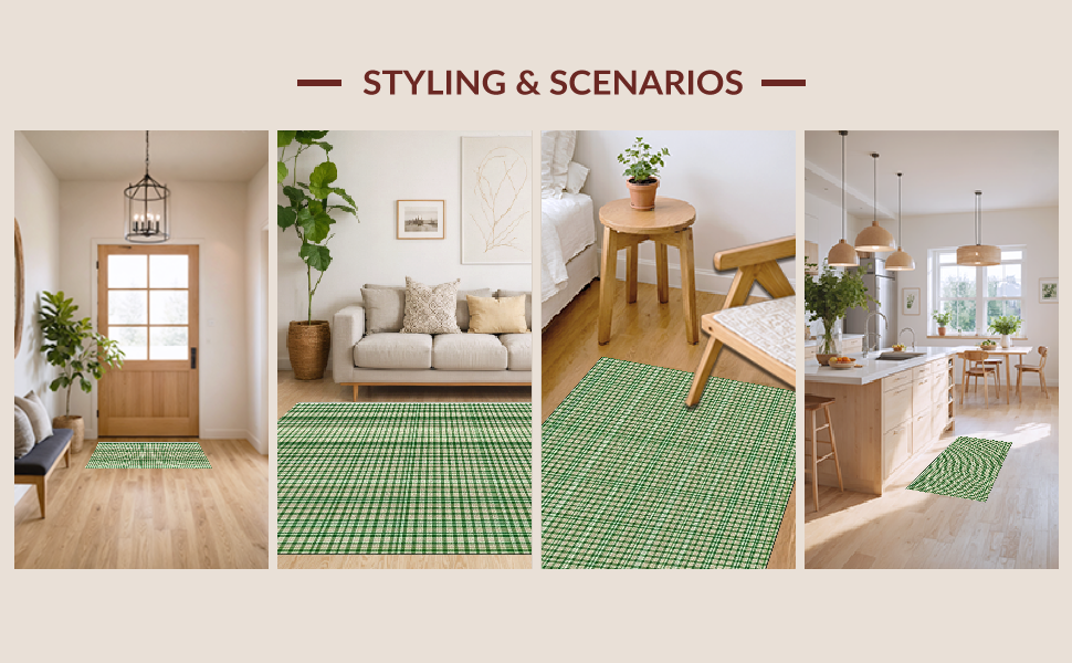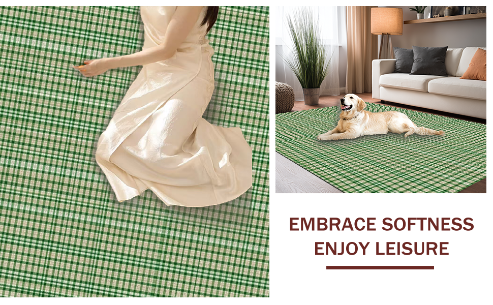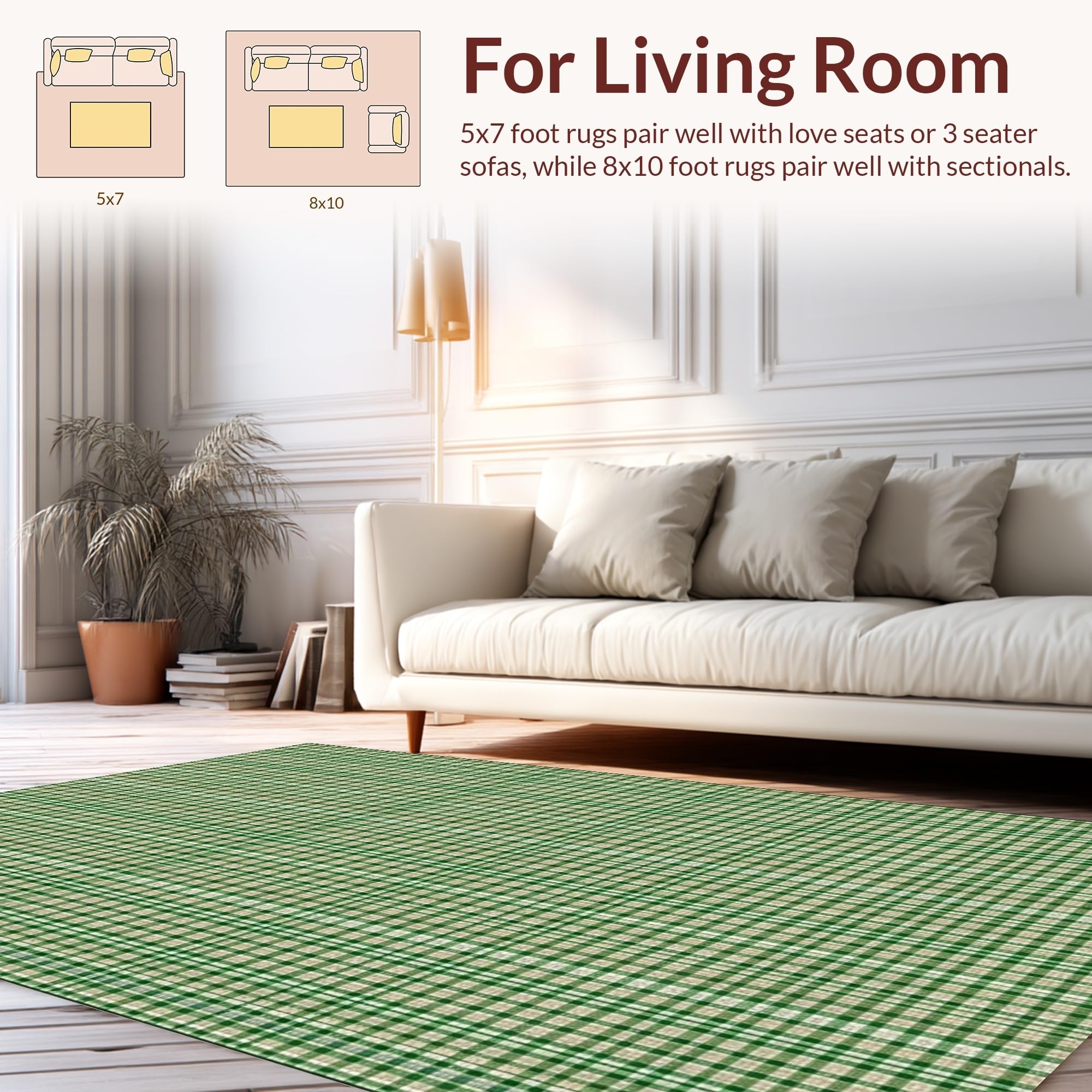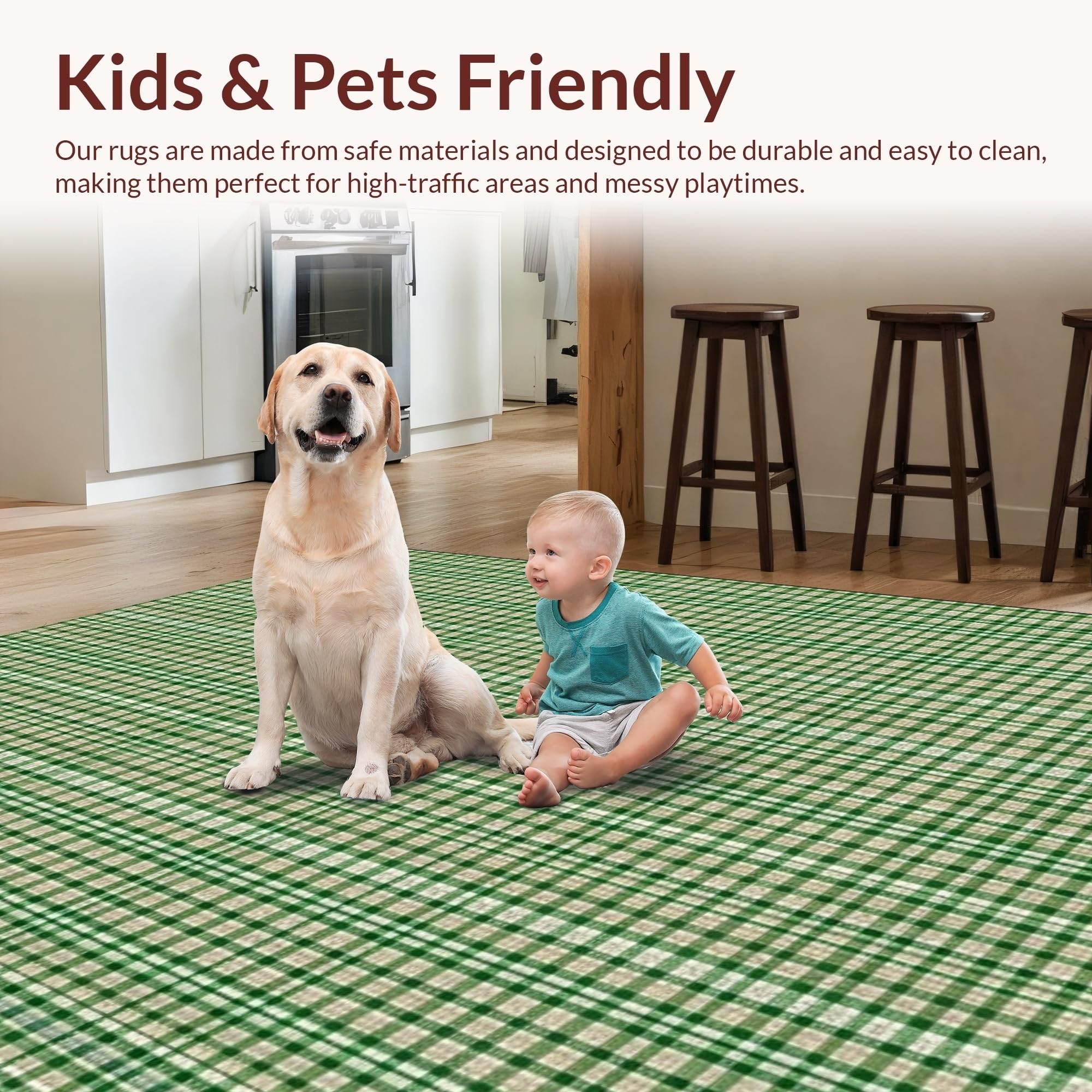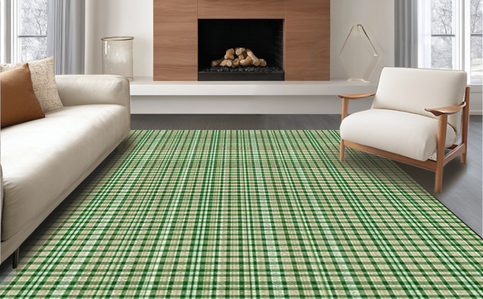 Ultra Soft Area Rug, Non Slip, Stain Resistant, Washable Area Rugs for Living Room, Bedroom, Inviting Rustic Plaid Design Charm(Beige) Overview: