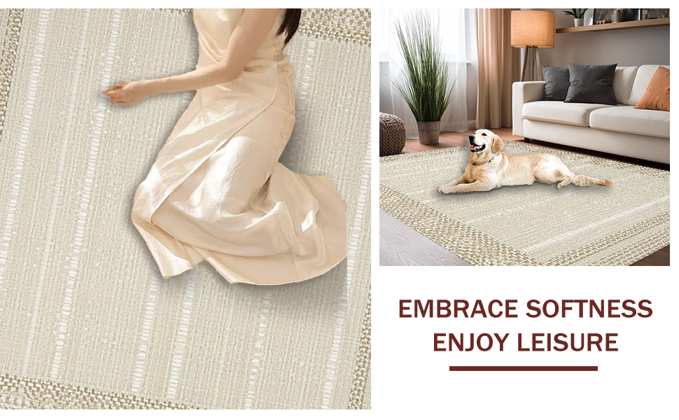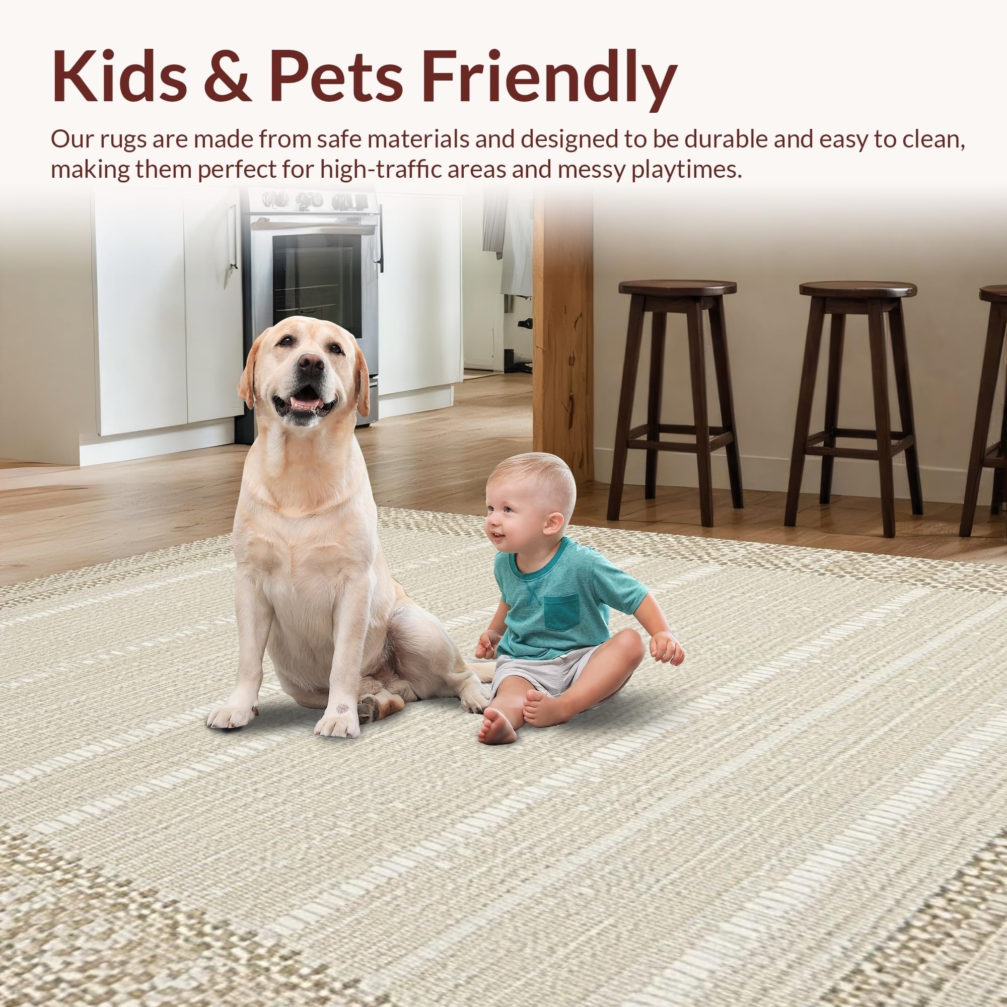 Ultra Soft Area Rug, Non Slip, Stain Resistant, Washable Area Rugs for Living Room, Bedroom, Inviting Scalloped Coastal Touch(Beige) Overview:
