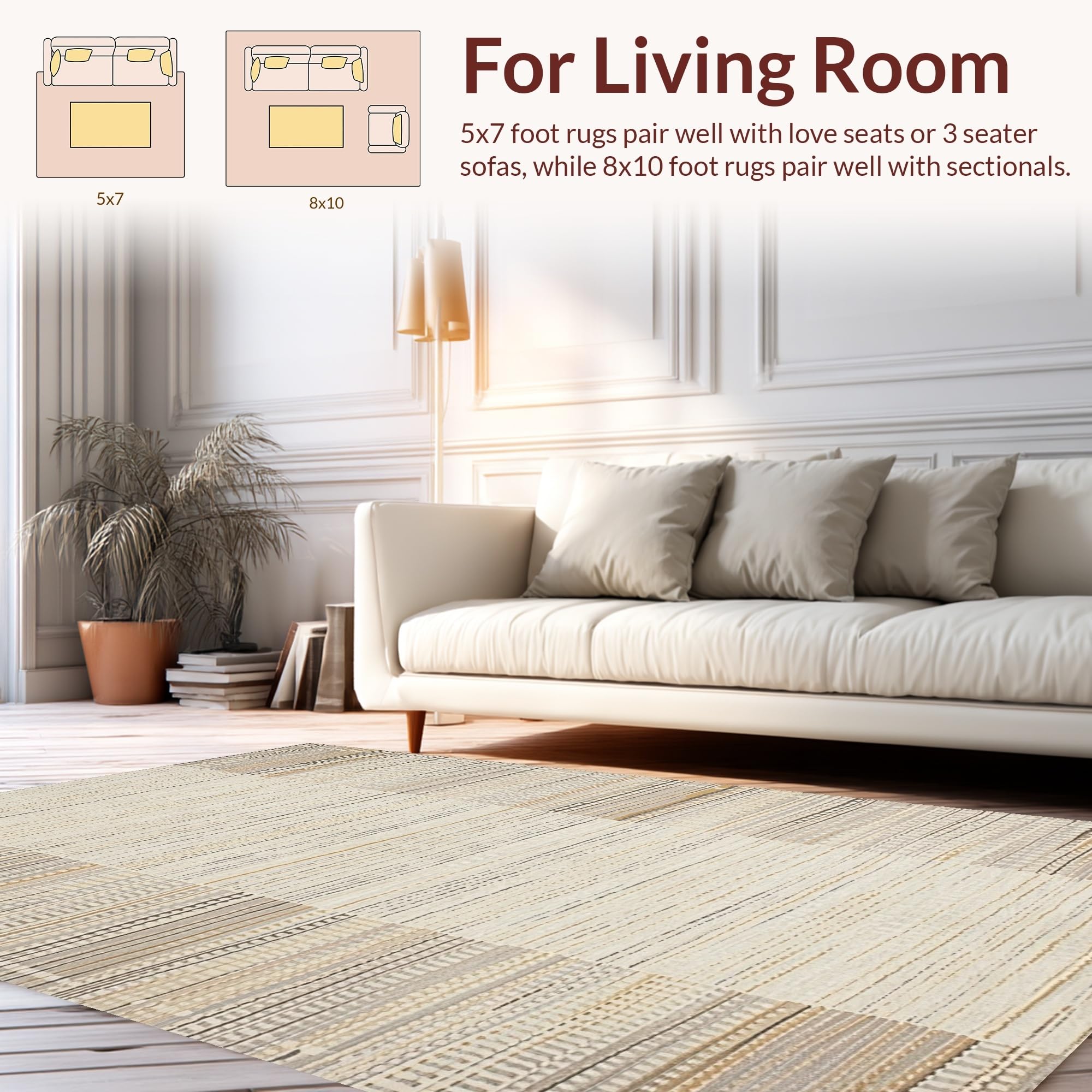 Ultra Soft Area Rug, Non Slip, Stain Resistant, Washable Area Rugs for Living Room, Bedroom, Inviting Soft Textured Surface(Beige) Overview: