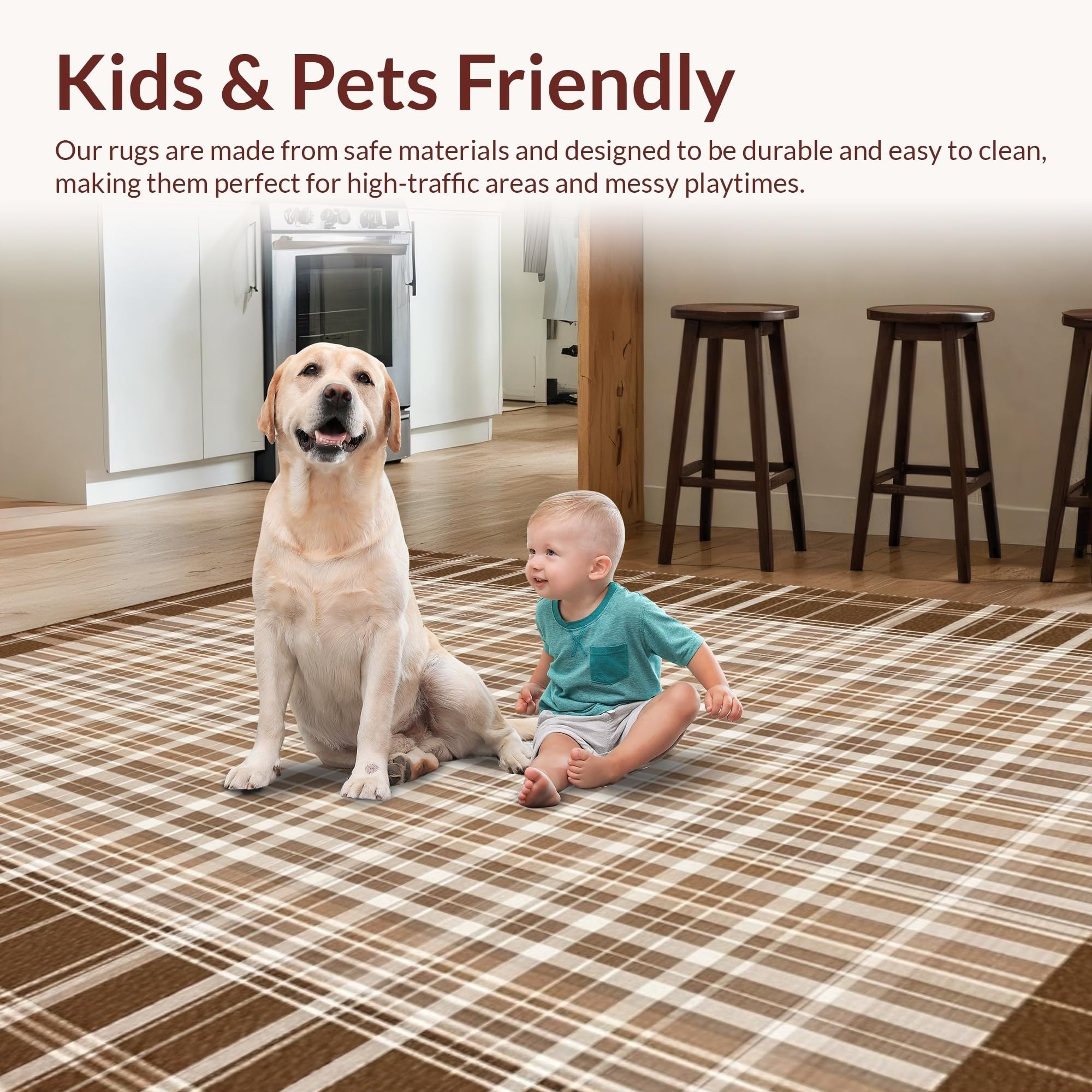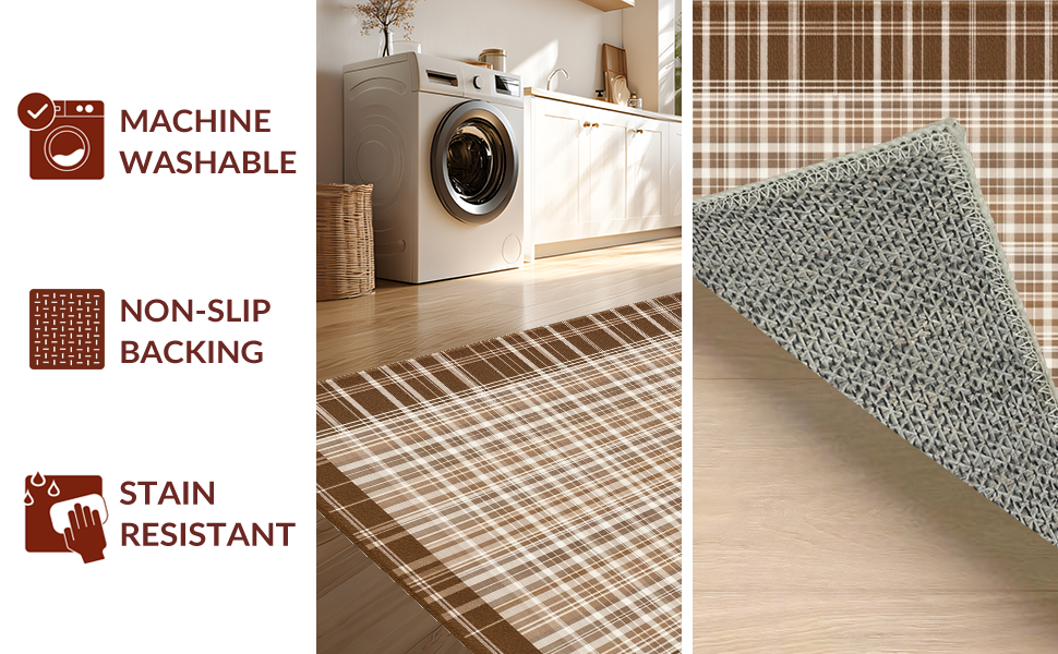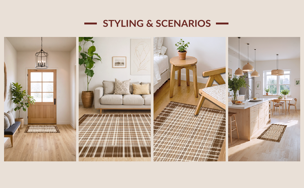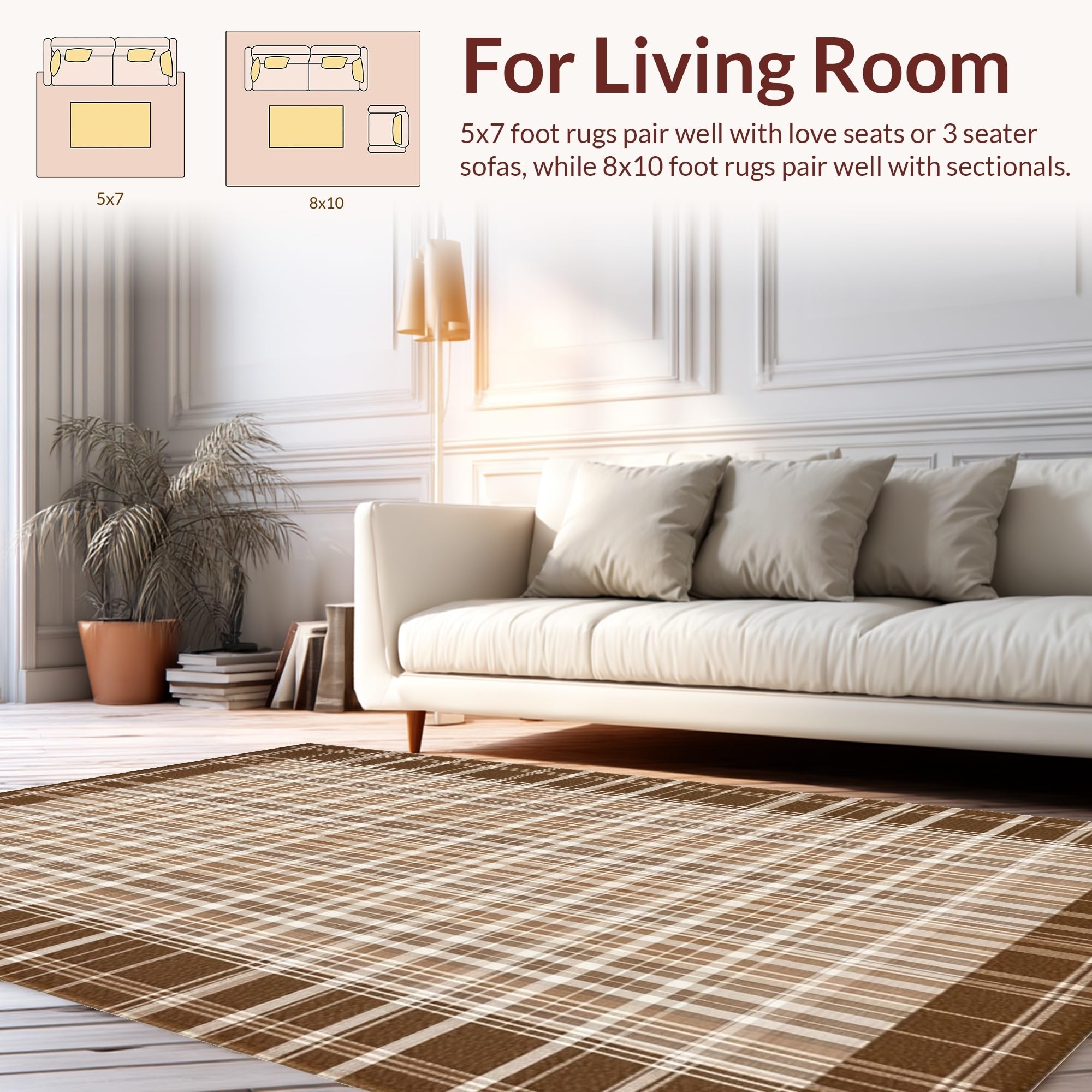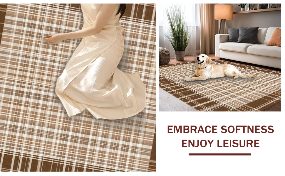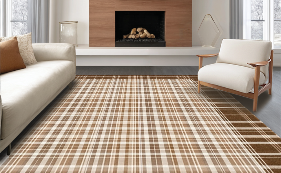 Ultra Soft Area Rug, Non Slip, Stain Resistant, Washable Area Rugs for Living Room, Bedroom, Inviting Soft-Toned Plaid Texture(Beige) Overview: