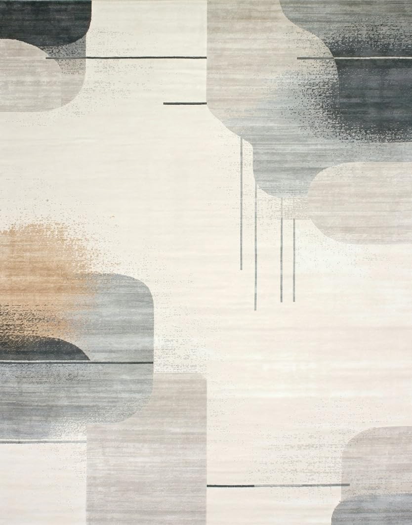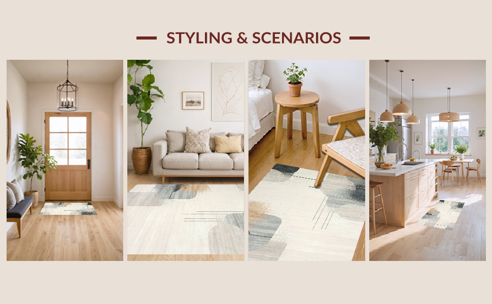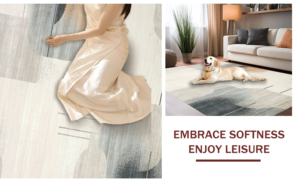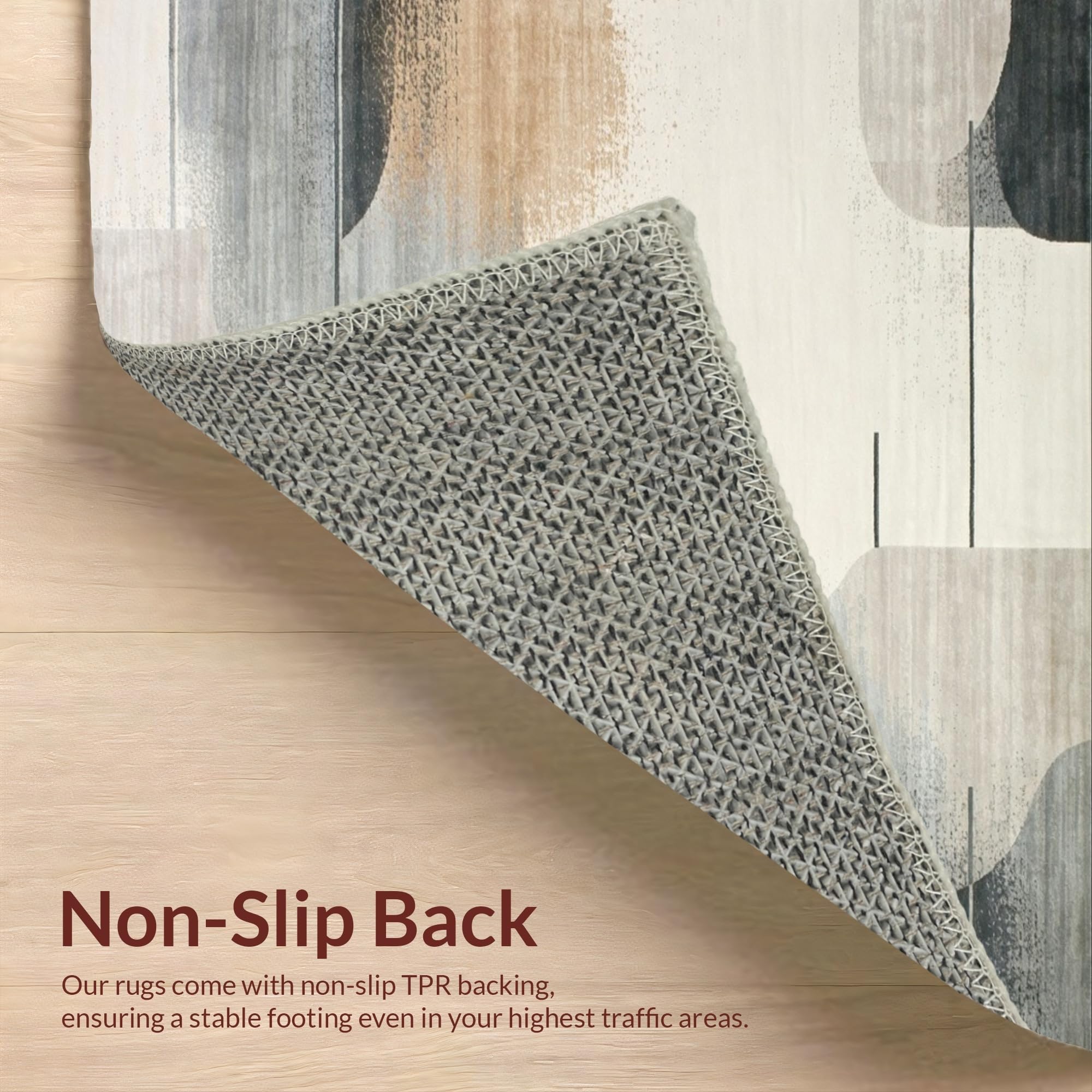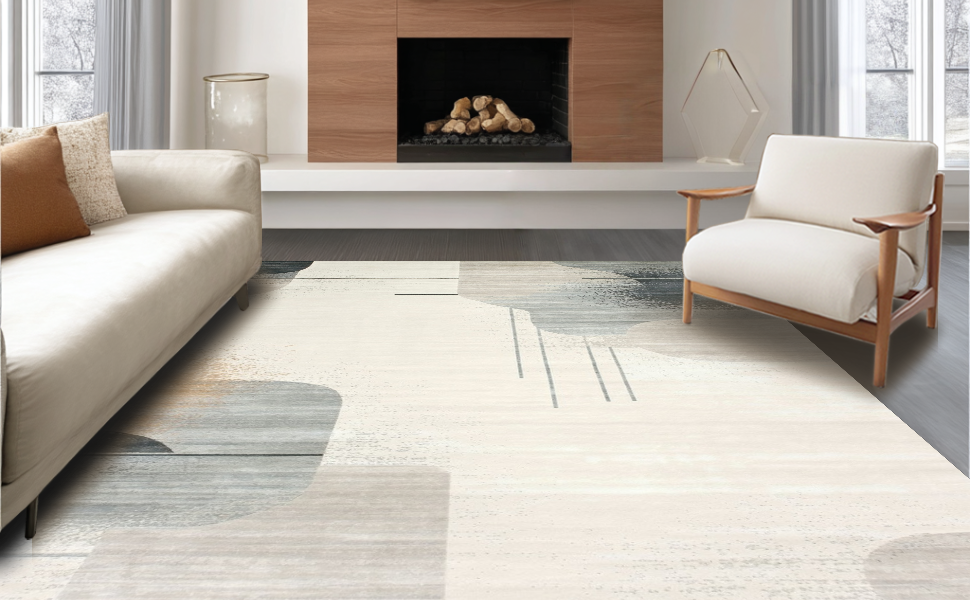 Ultra Soft Area Rug, Non Slip, Stain Resistant, Washable Area Rugs for Living Room, Bedroom, Inviting Subtle Abstract Waves(Beige) Overview:
