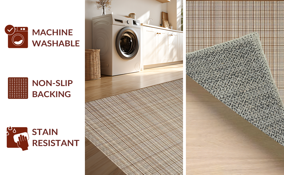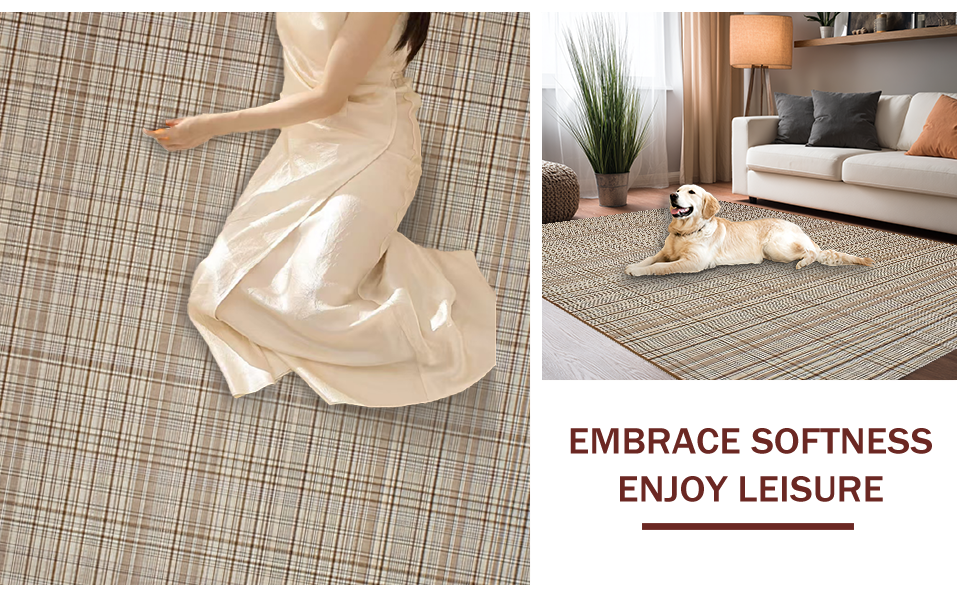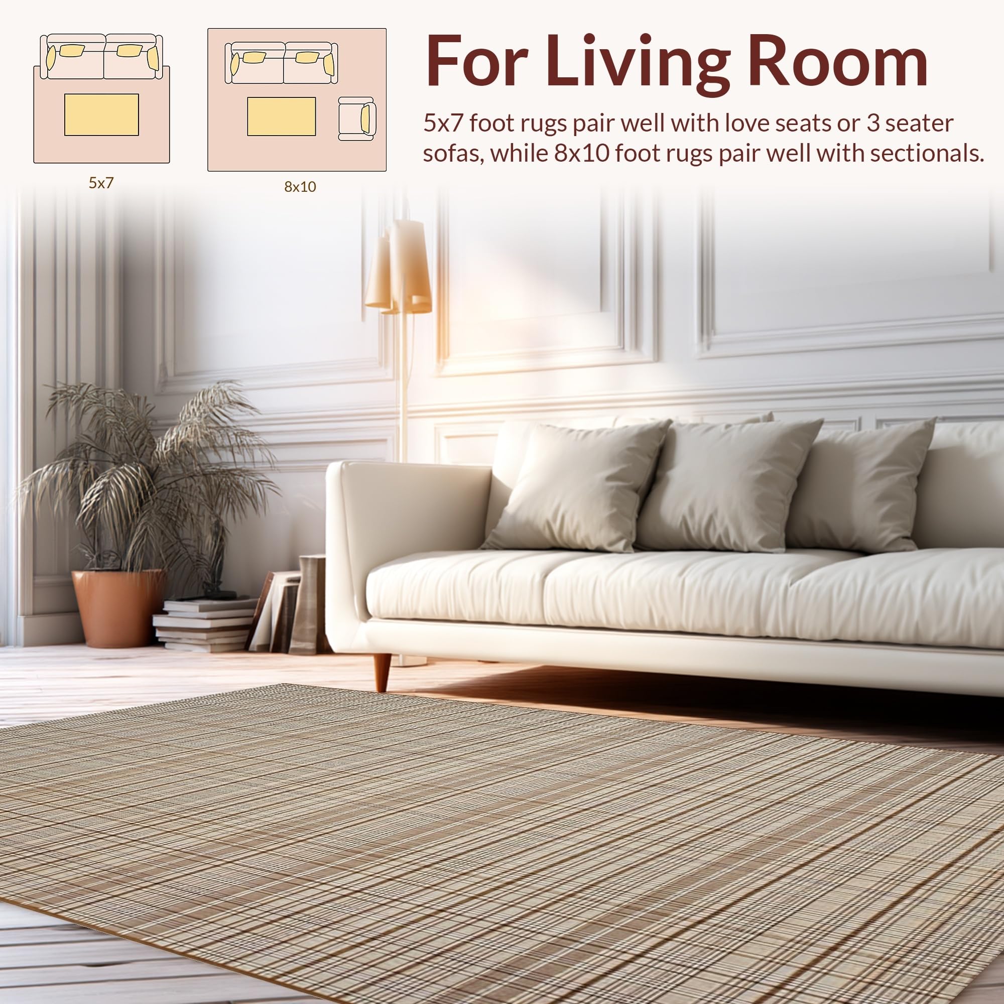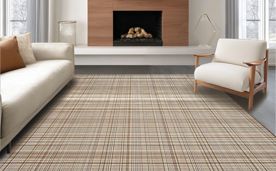 Ultra Soft Area Rug, Non Slip, Stain Resistant, Washable Area Rugs for Living Room, Bedroom, Inviting Subtle Checkered Design(Beige) Overview: