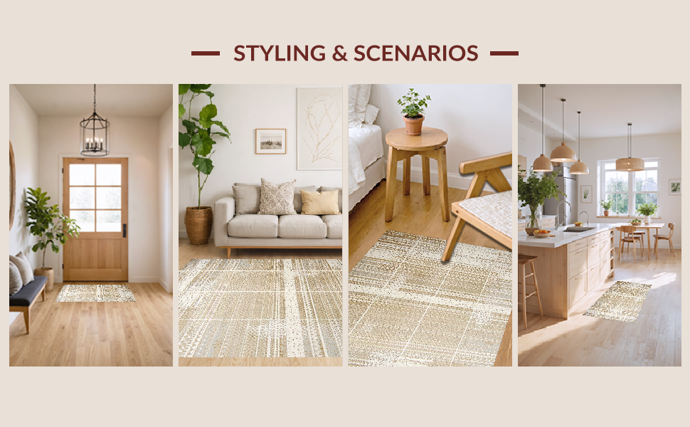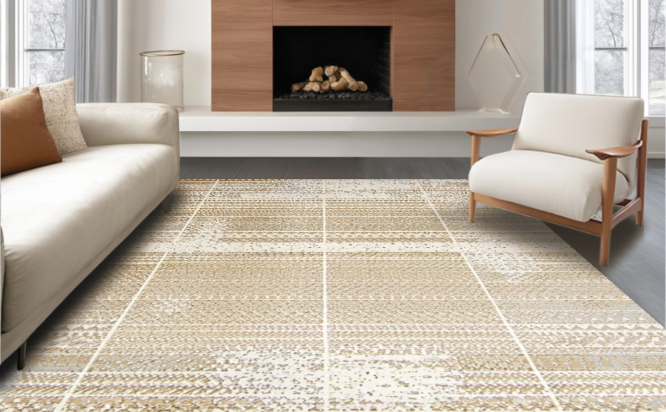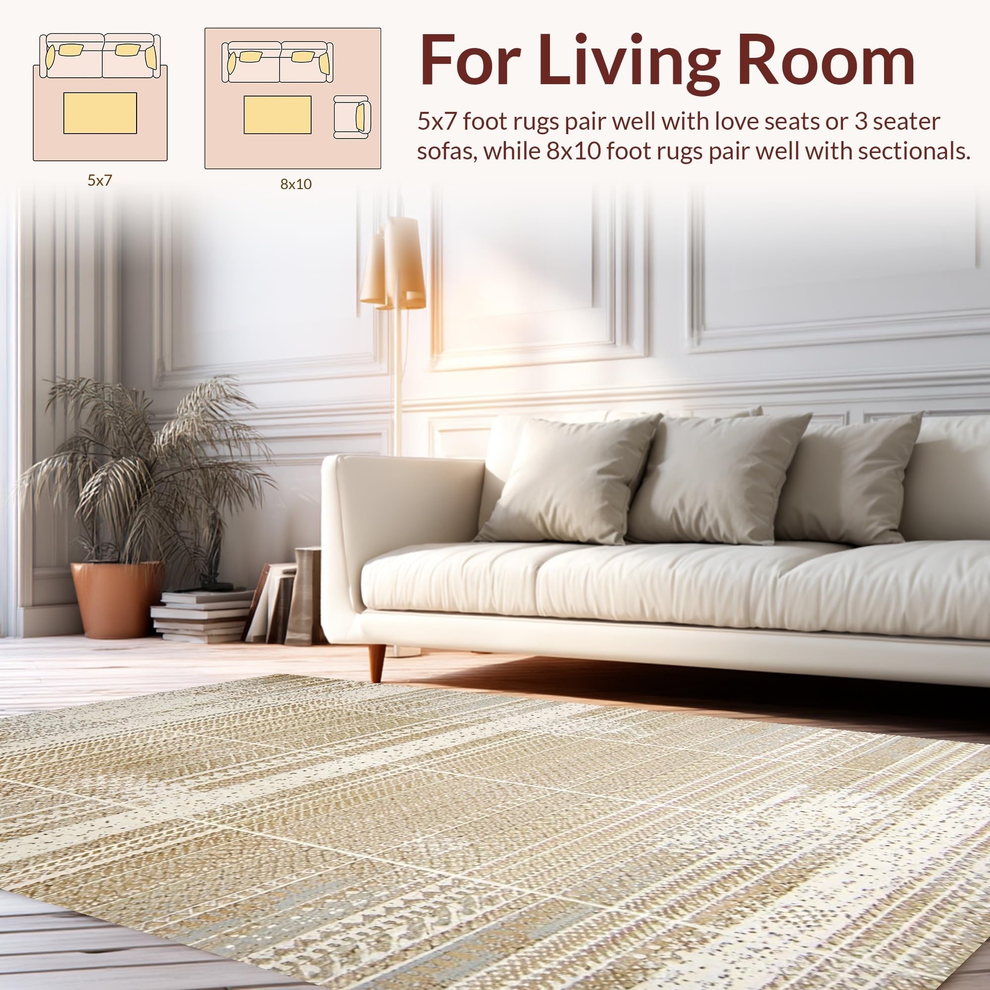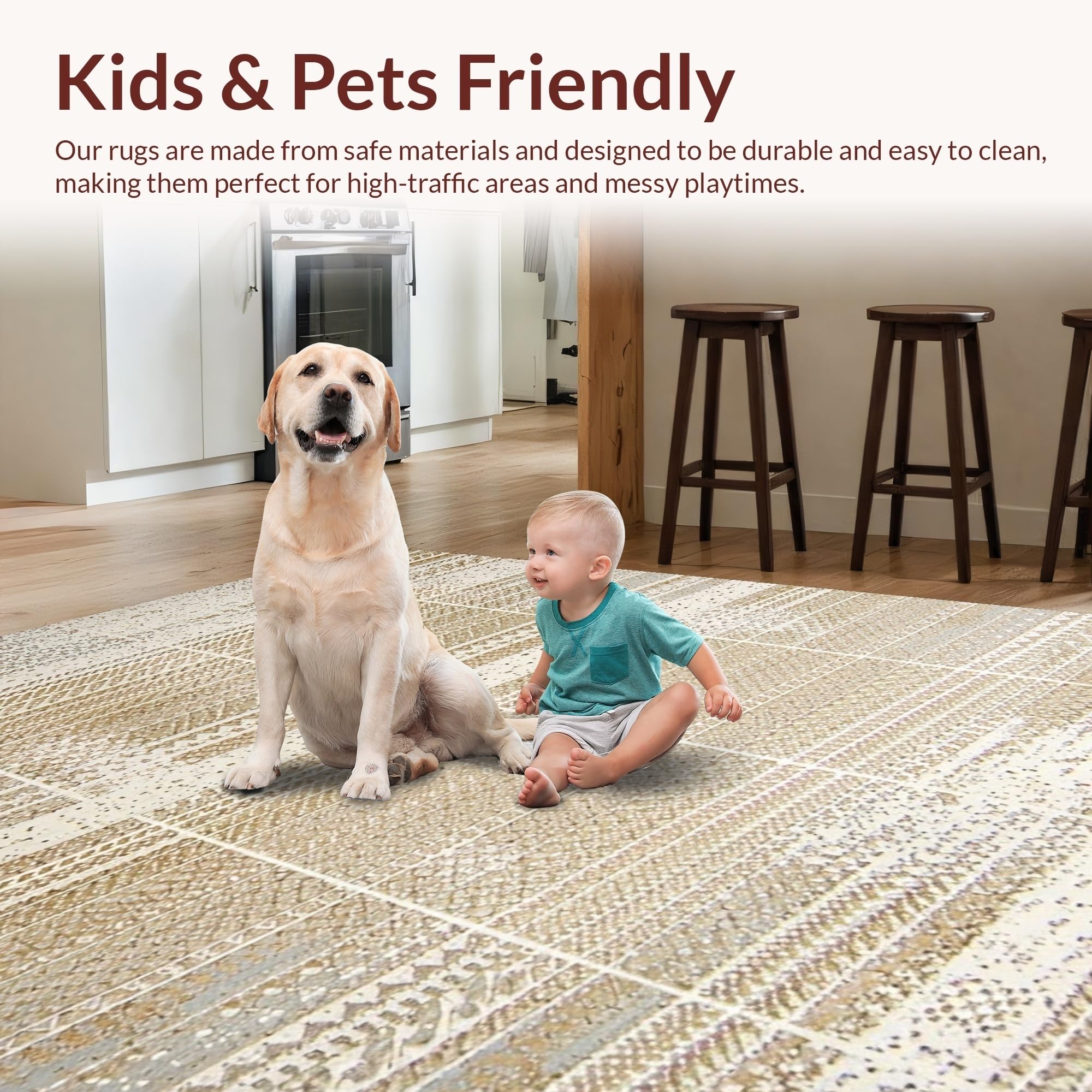 Ultra Soft Area Rug, Non Slip, Stain Resistant, Washable Area Rugs for Living Room, Bedroom, Inviting Textured Fawn Visuals(Beige) Overview: