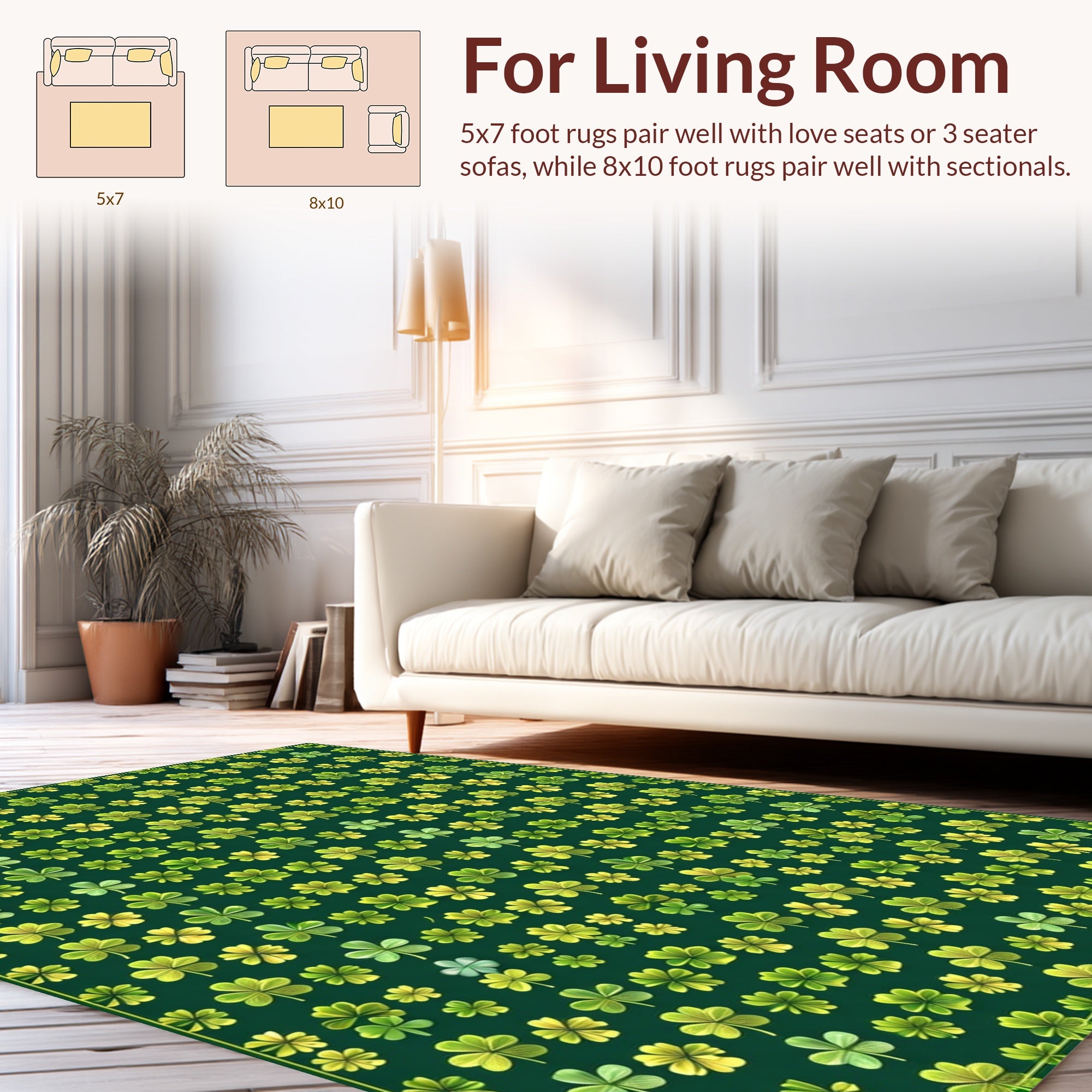 Flatwoven High Traffic Area Rug, Inviting Whimsical Shamrock Design, Non Slip, Stain Resistant, Washable Area Rugs for Living Room, Bedroom (Green) Overview: