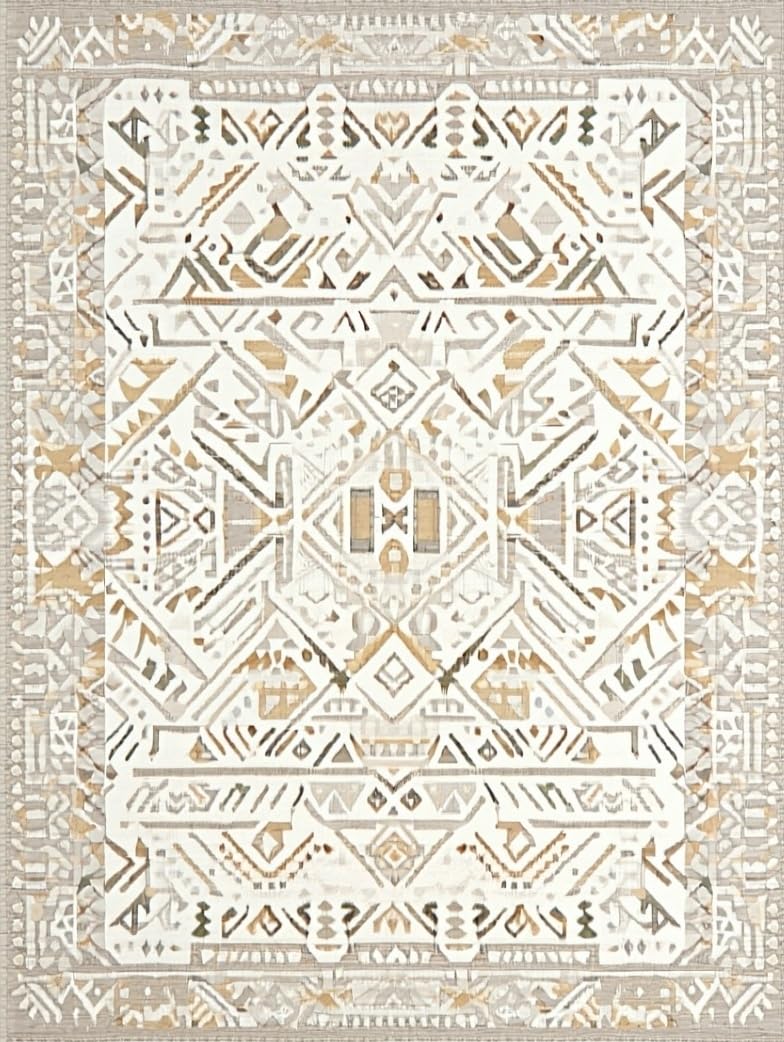 Ivory Beige Geometric Loop Area Tribal Inspired(Beige)