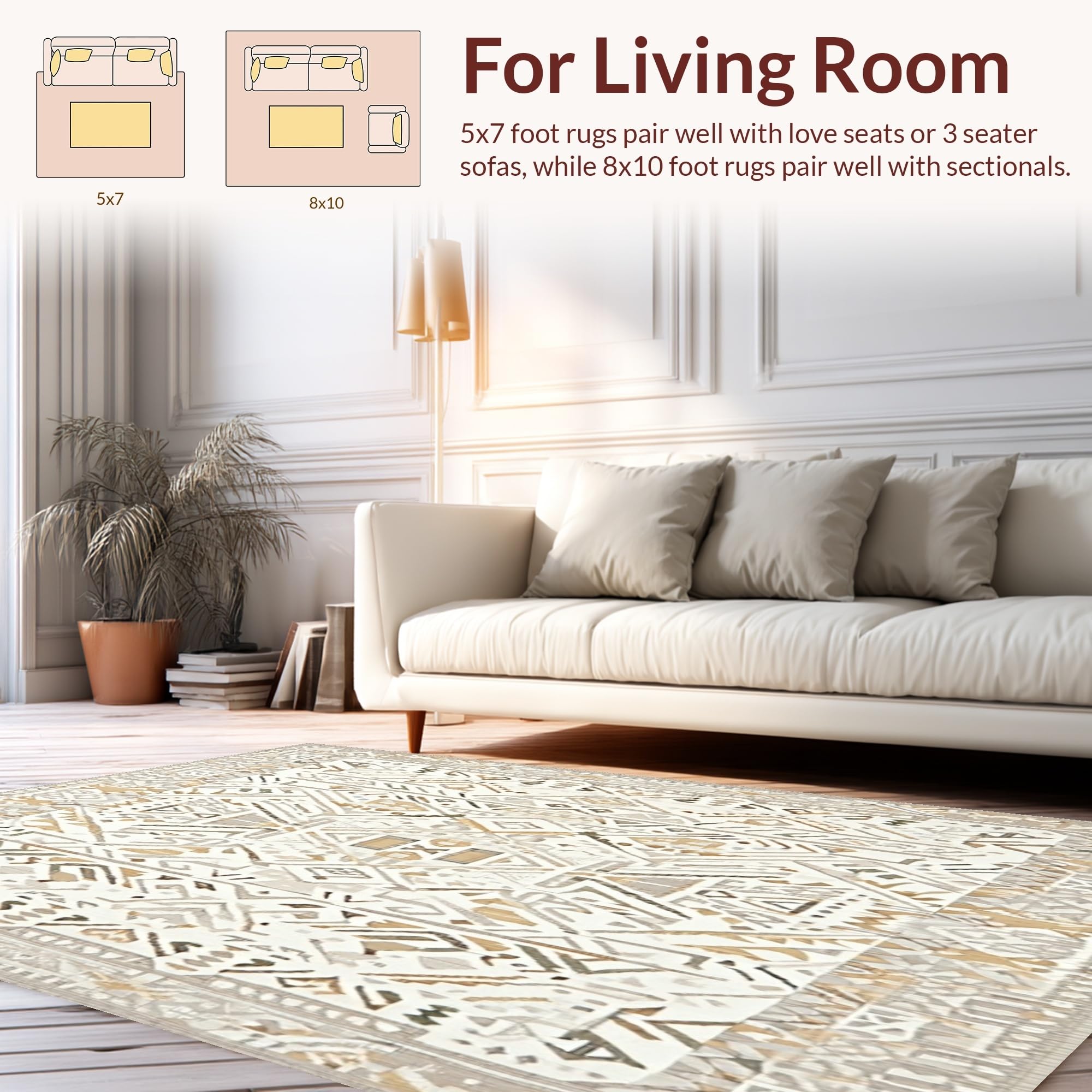 Ultra Soft Area Rug, Non Slip, Stain Resistant, Washable Area Rugs for Living Room, Bedroom, Ivory Beige Geometric Loop Area Tribal Inspired(Beige) Overview: