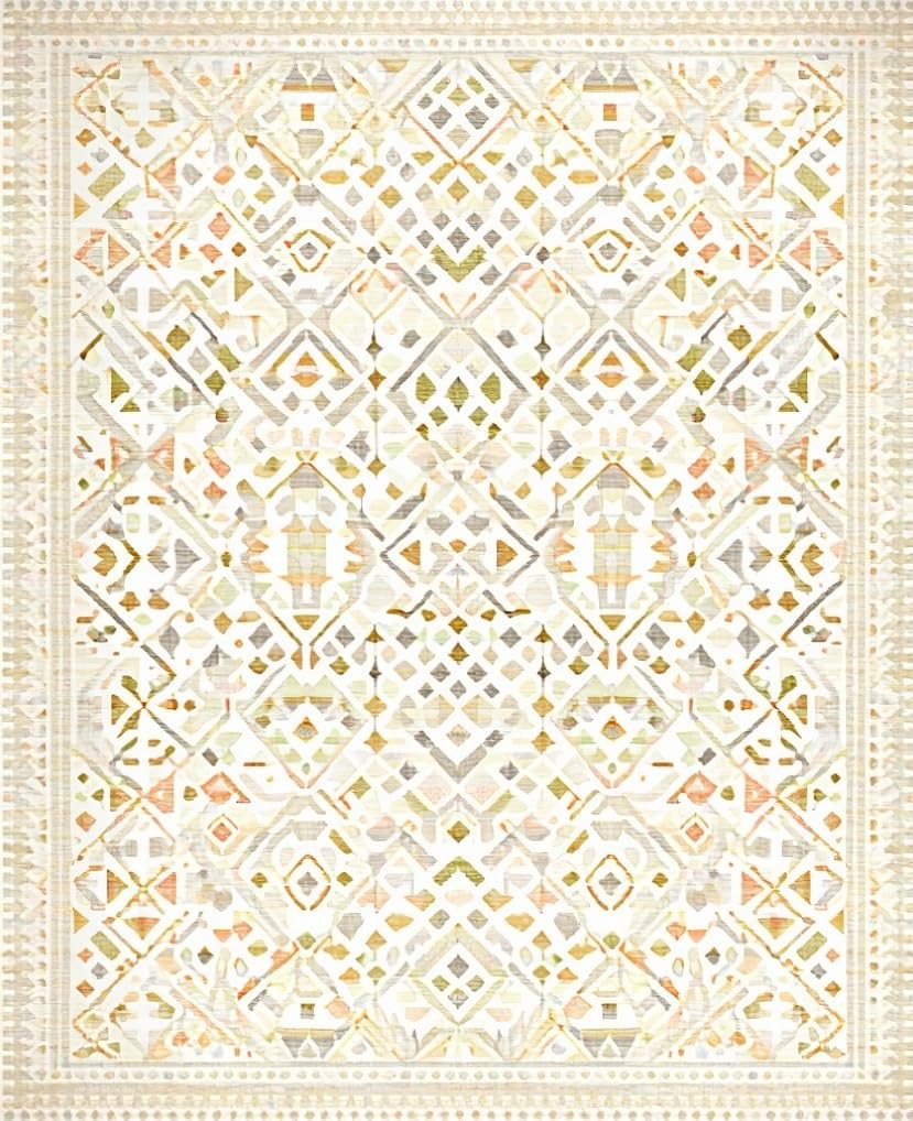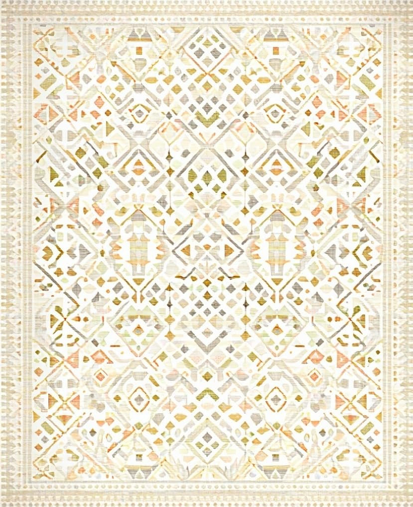Ultra Soft Area Rug, Non Slip, Stain Resistant, Washable Area Rugs for Living Room, Bedroom, Ivory Beige Geometric Patterned Simple Care Non Shedding(Beige) Overview:
