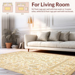 Ultra Soft Area Rug, Non Slip, Stain Resistant, Washable Area Rugs for Living Room, Bedroom, Ivory & Beige Round Floral Medallion(Beige) Overview: