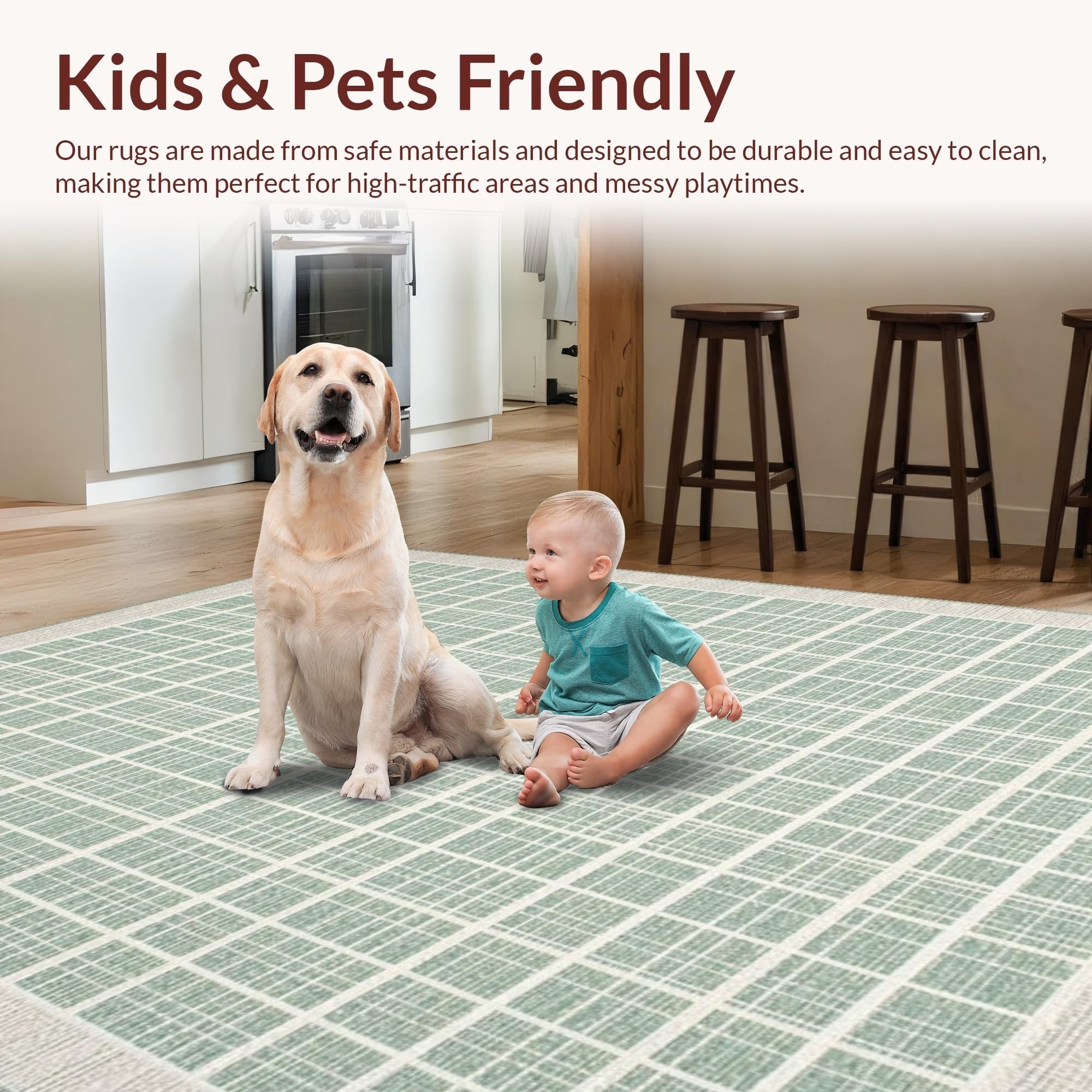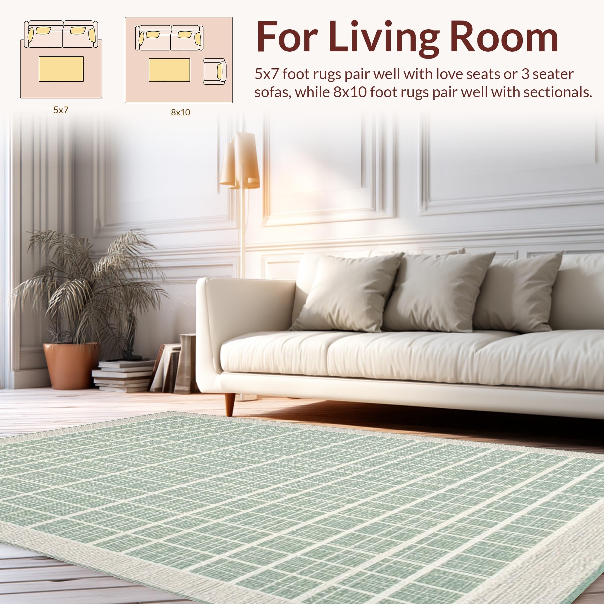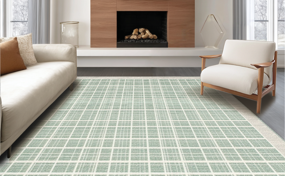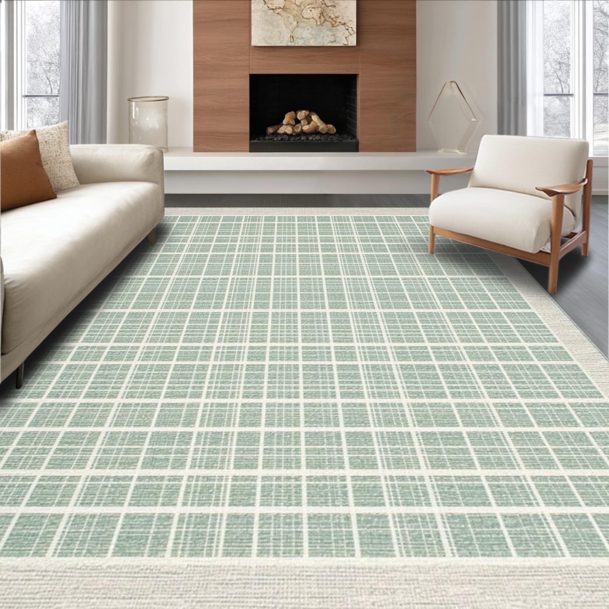 Ultra Soft Area Rug, Non Slip, Stain Resistant, Washable Area Rugs for Living Room, Bedroom, Ivory Minimalist Tiled Motif(Beige) Overview: