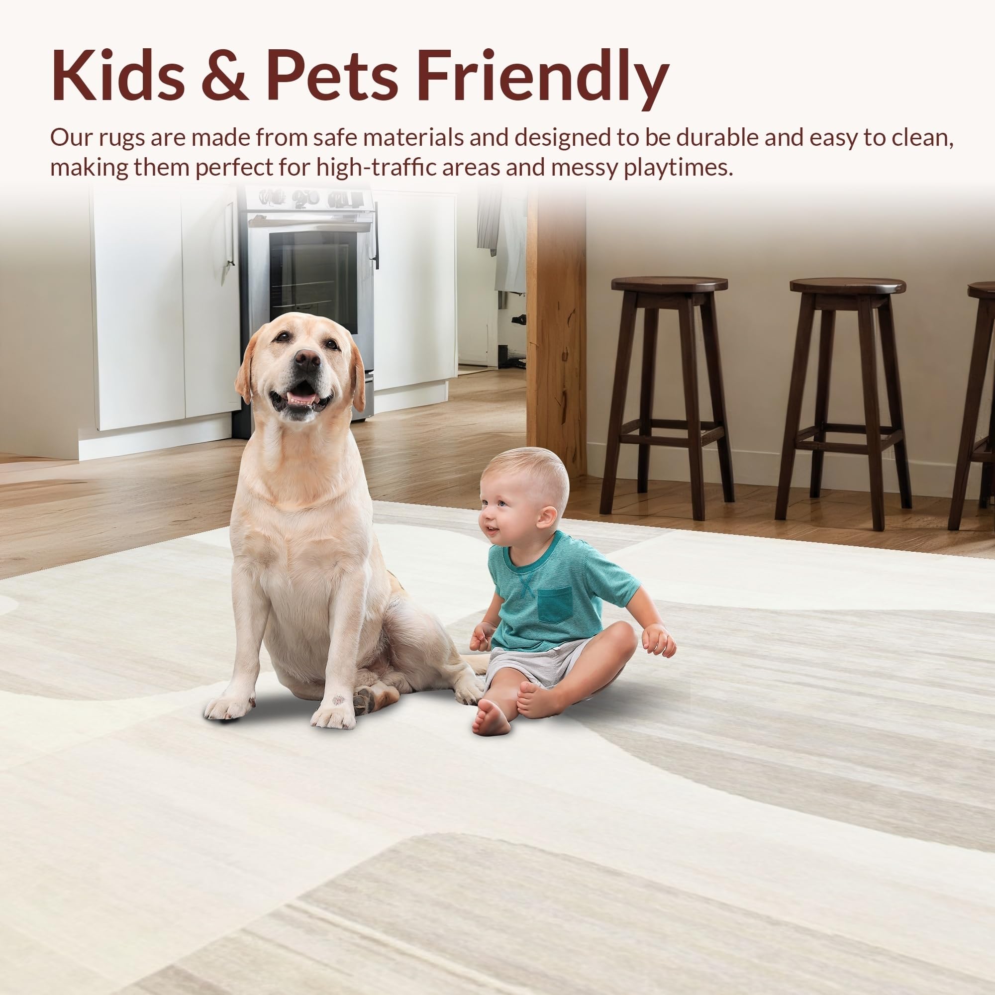 Ultra Soft Area Rug, Non Slip, Stain Resistant, Washable Area Rugs for Living Room, Bedroom, Ivory Serenity Area Gentle Abstract Flowing Shapes(Beige) Overview:
