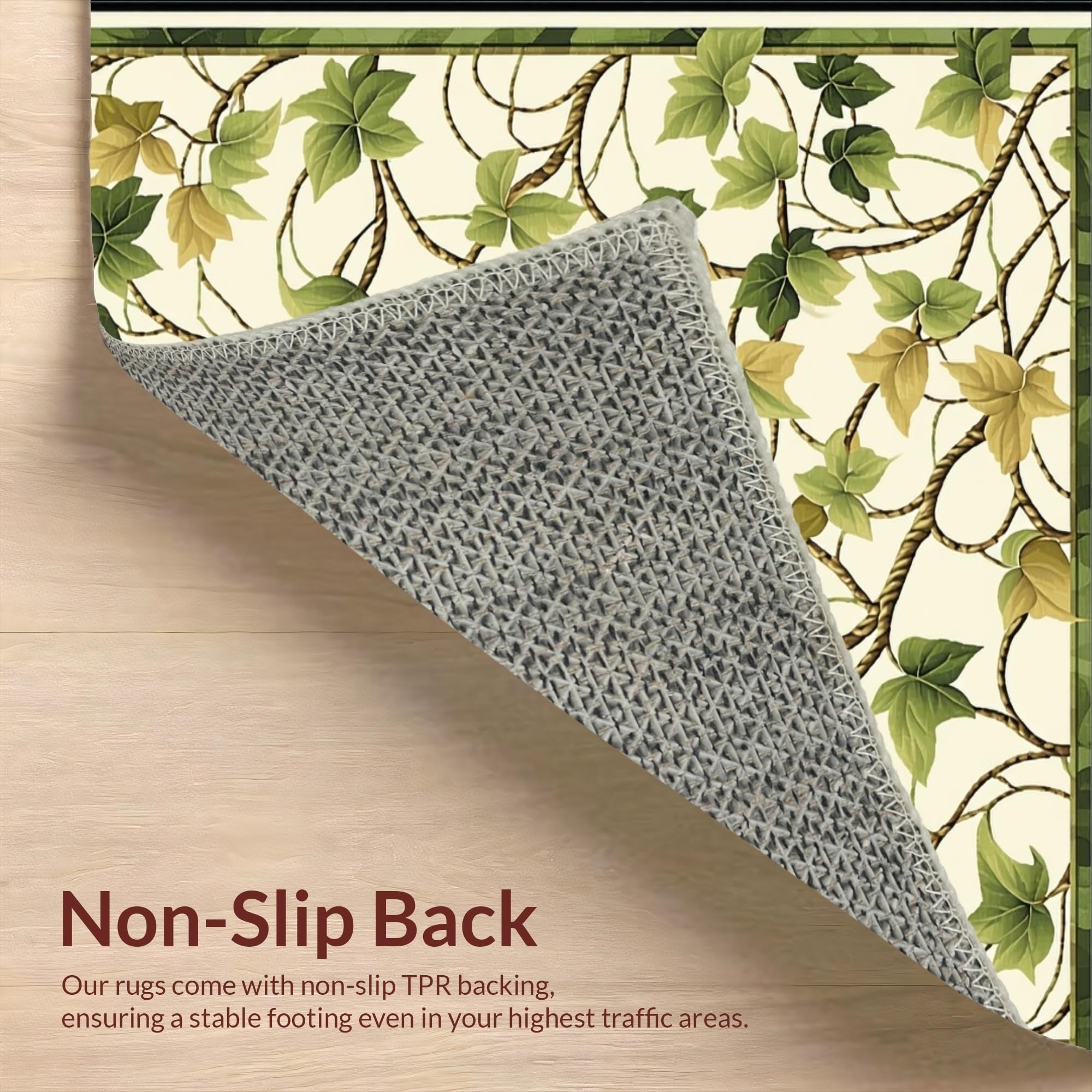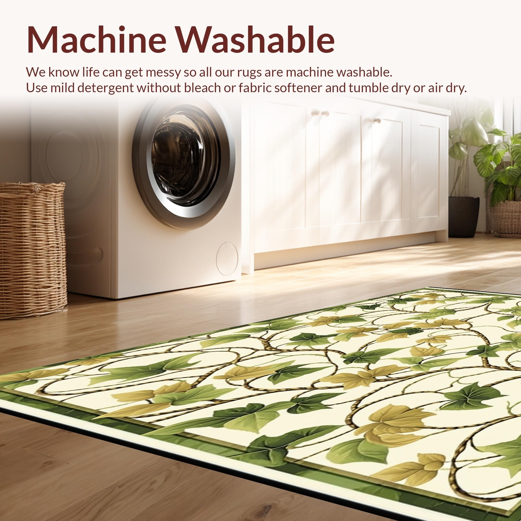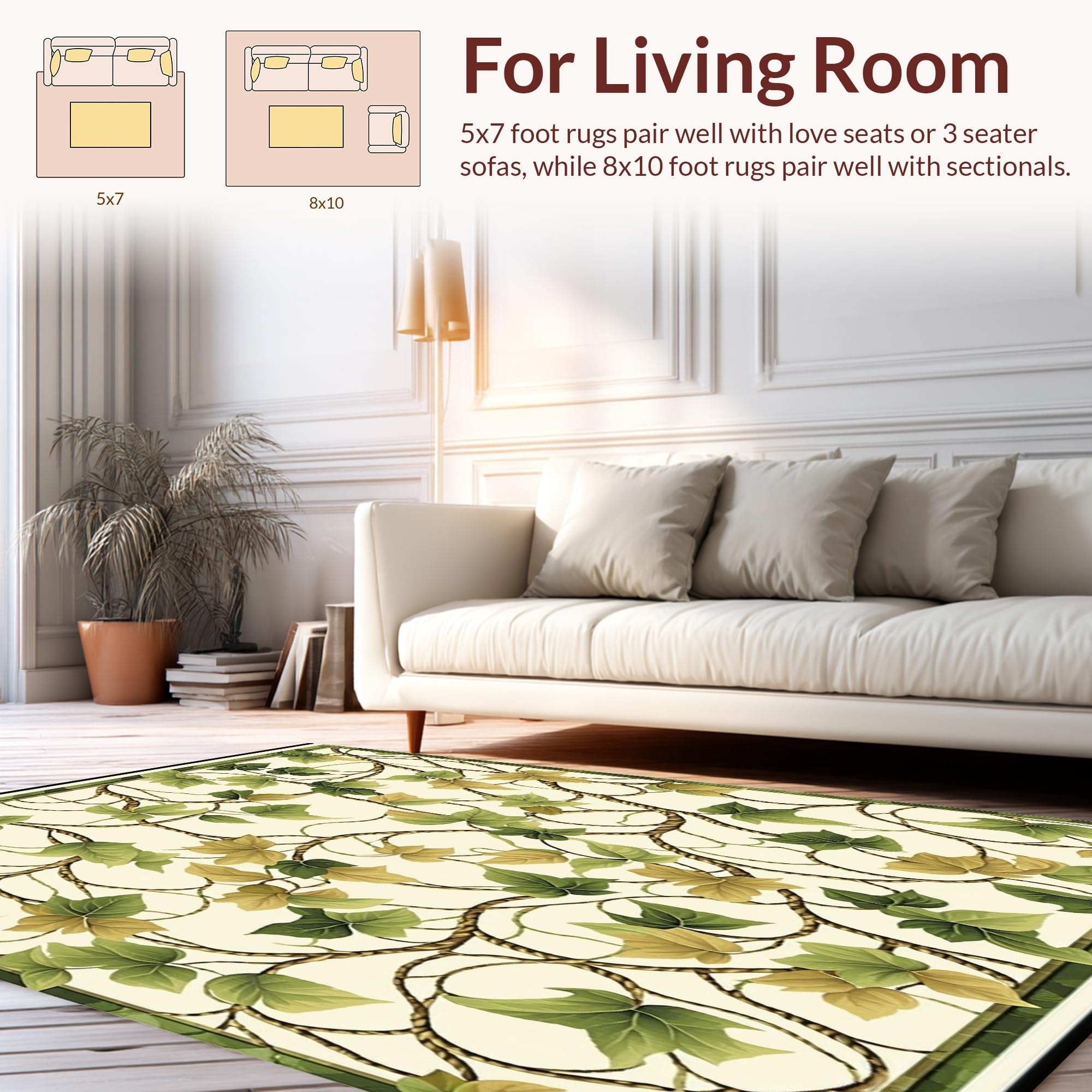 Ultra Soft Area Rug, Non Slip, Stain Resistant, Washable Area Rugs for Living Room, Bedroom, Ivy League Beige & Green Artistic Design Area(Beige) Overview: