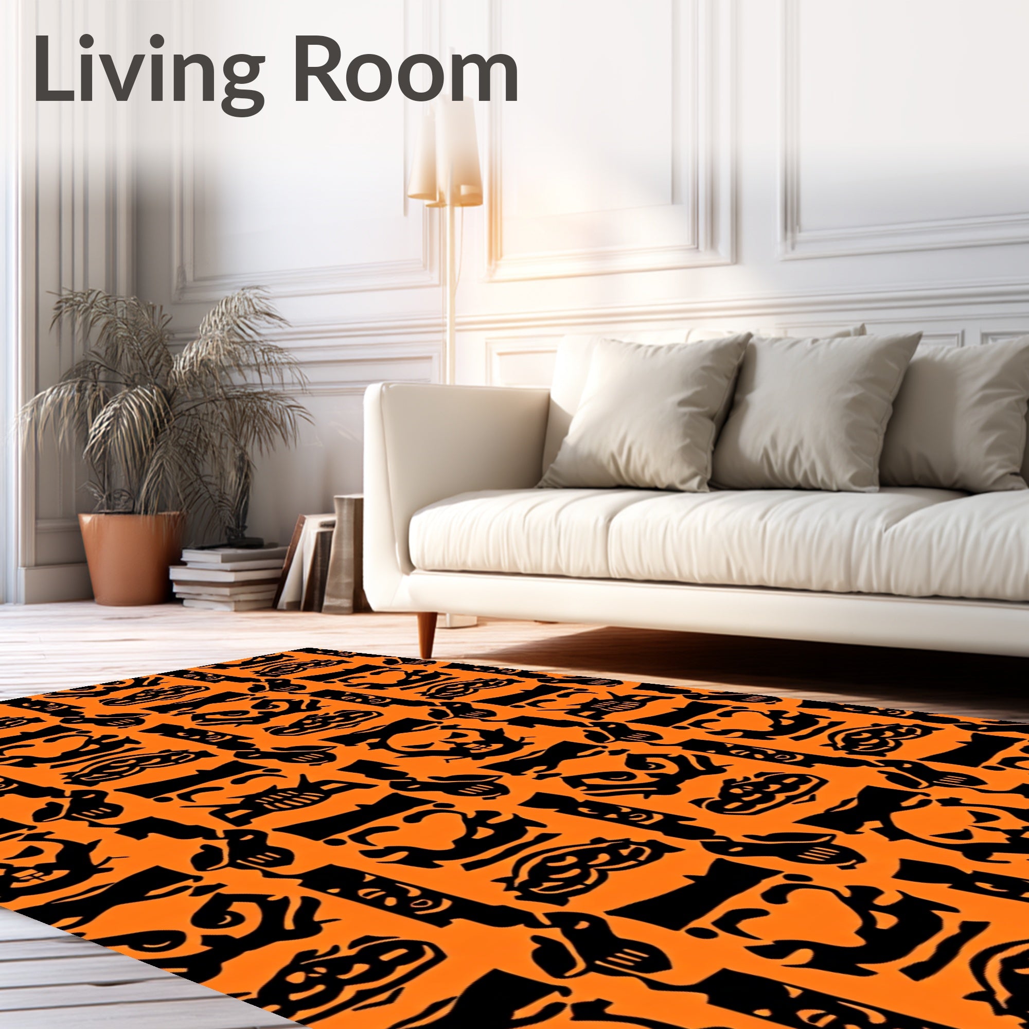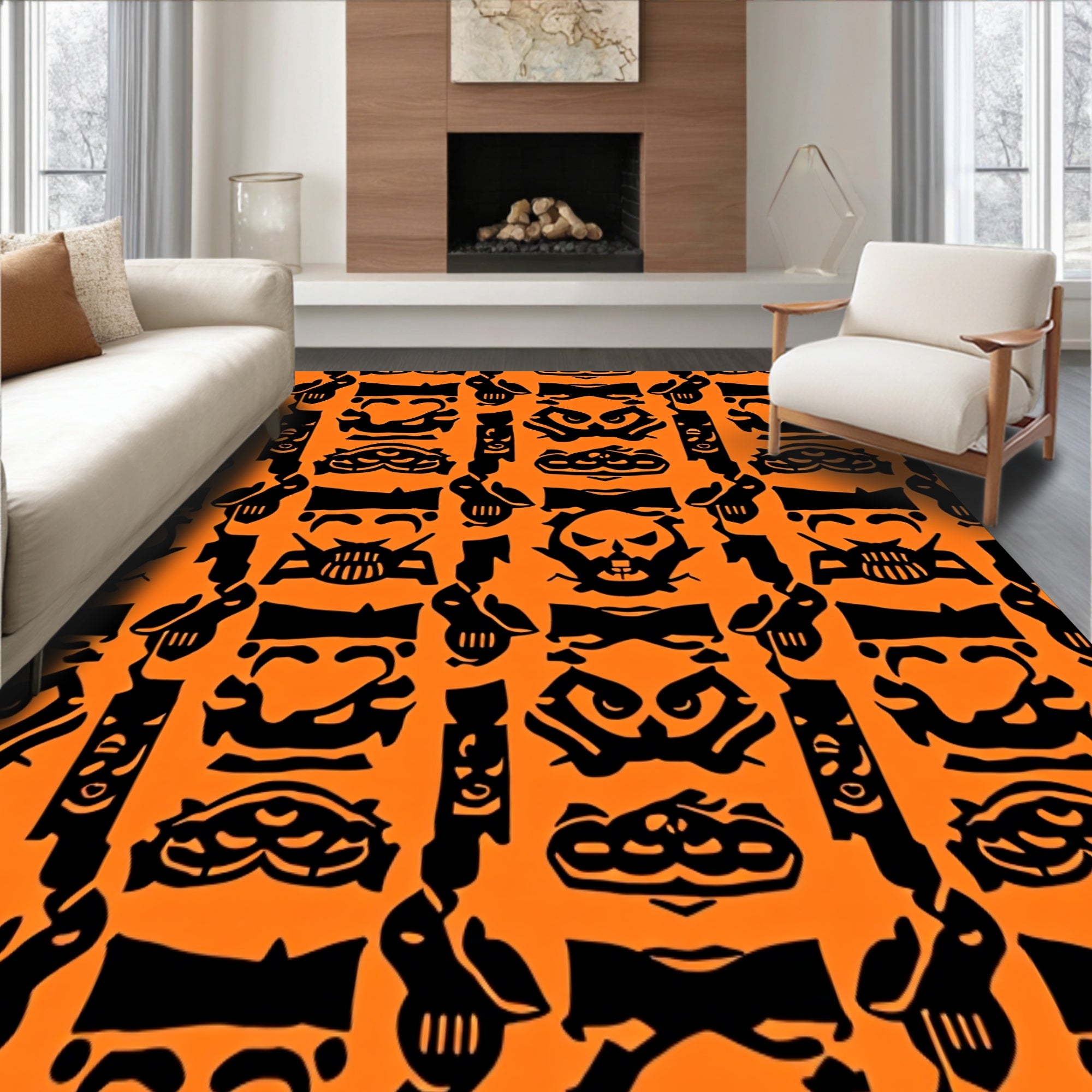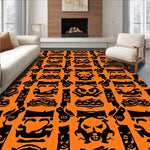 Ultra Soft Area Rug, Non Slip, Stain Resistant, Washable Area Rugs for Living Room, Bedroom, Jack O Lantern Gingham with Festive Accents(Orange) Overview: