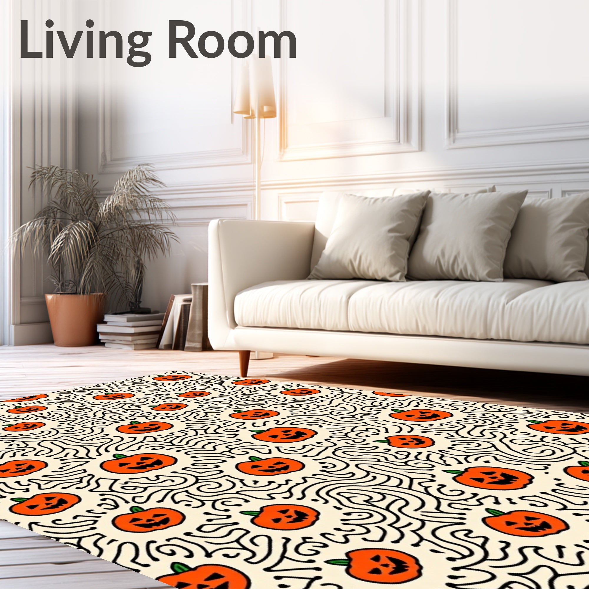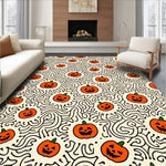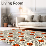 Ultra Soft Area Rug, Non Slip, Stain Resistant, Washable Area Rugs for Living Room, Bedroom, Jack O Lantern Lattice Motif Whimsical Halloween Celebration(Orange) Overview: