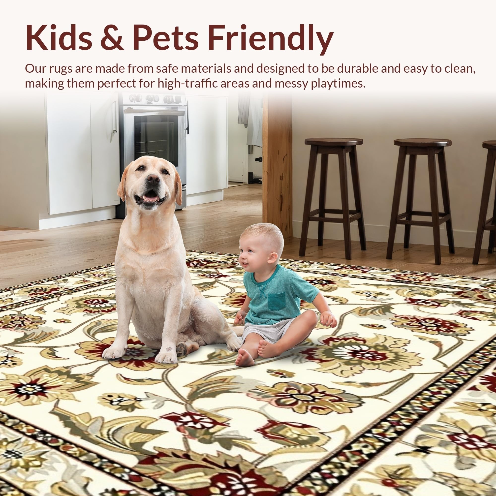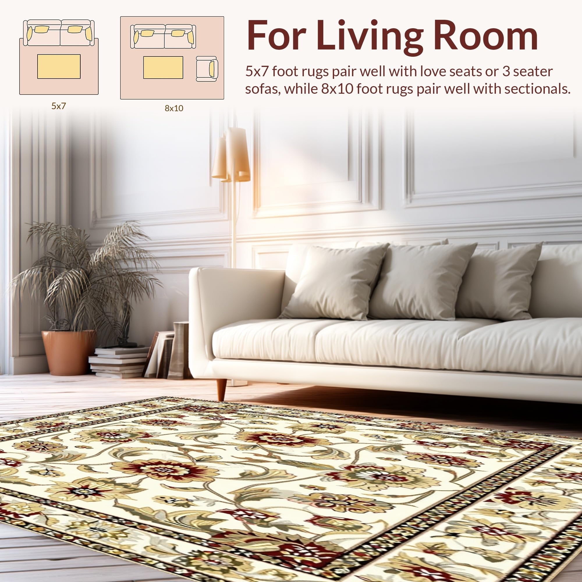 Ultra Soft Area Rug, Non Slip, Stain Resistant, Washable Area Rugs for Living Room, Bedroom, Jacobean Inspired Botanical for Contemporary Home Floor Cover(Beige) Overview: