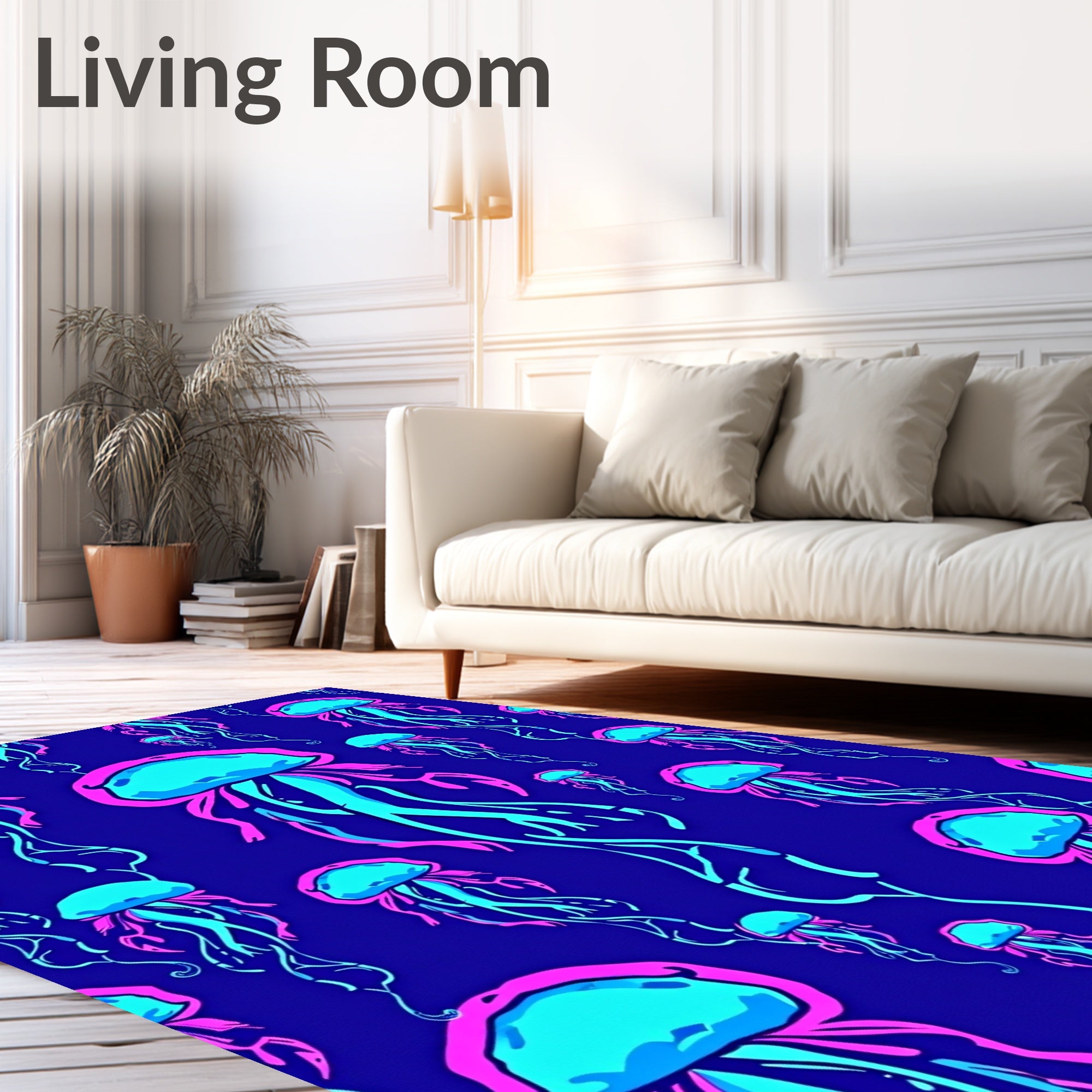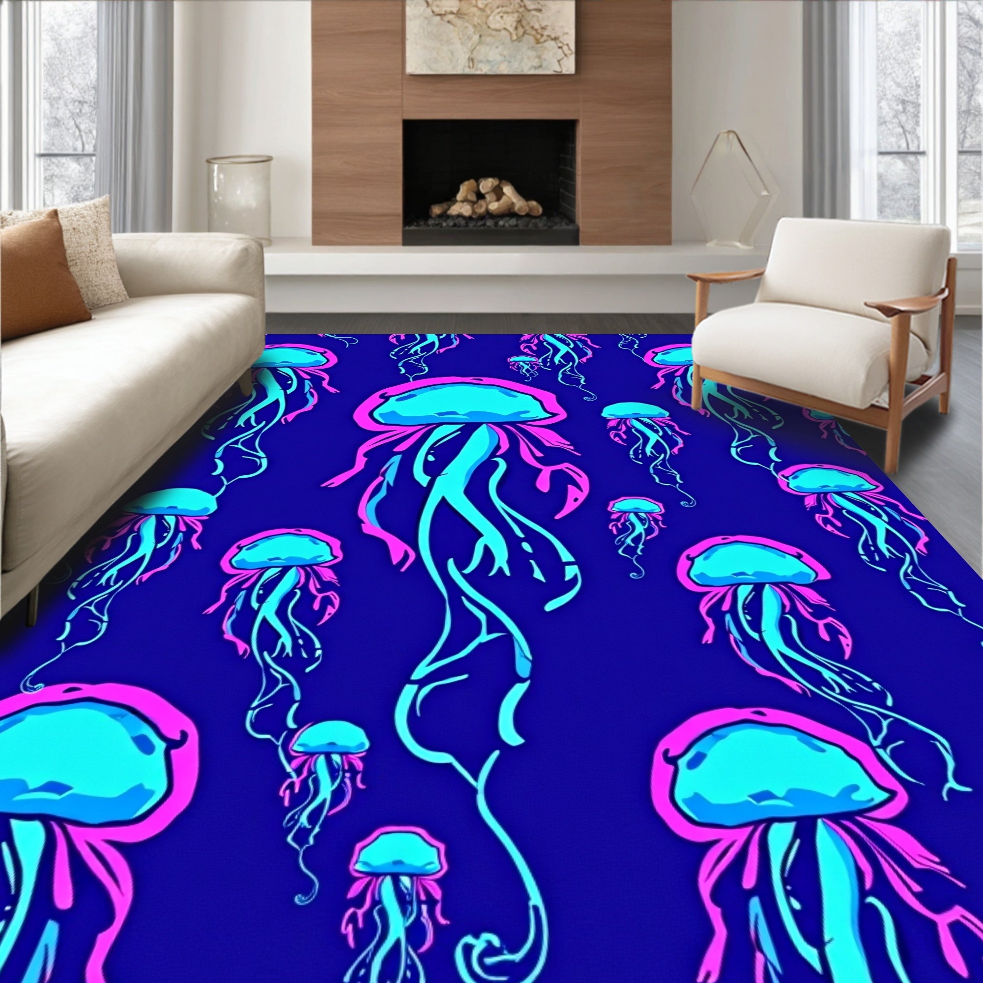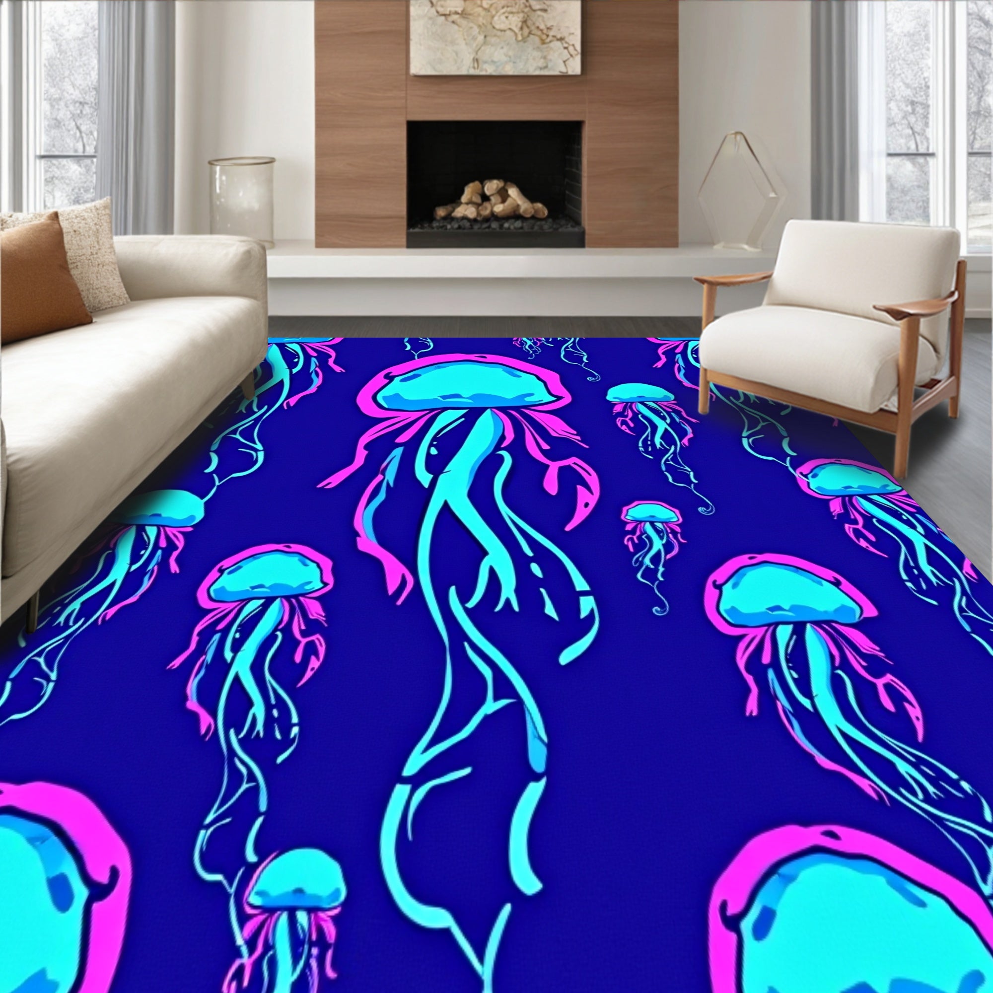 Ultra Soft Area Rug, Non Slip, Stain Resistant, Washable Area Rugs for Living Room, Bedroom, Jellyfish Wonderland Tapestry(Purple) Overview: