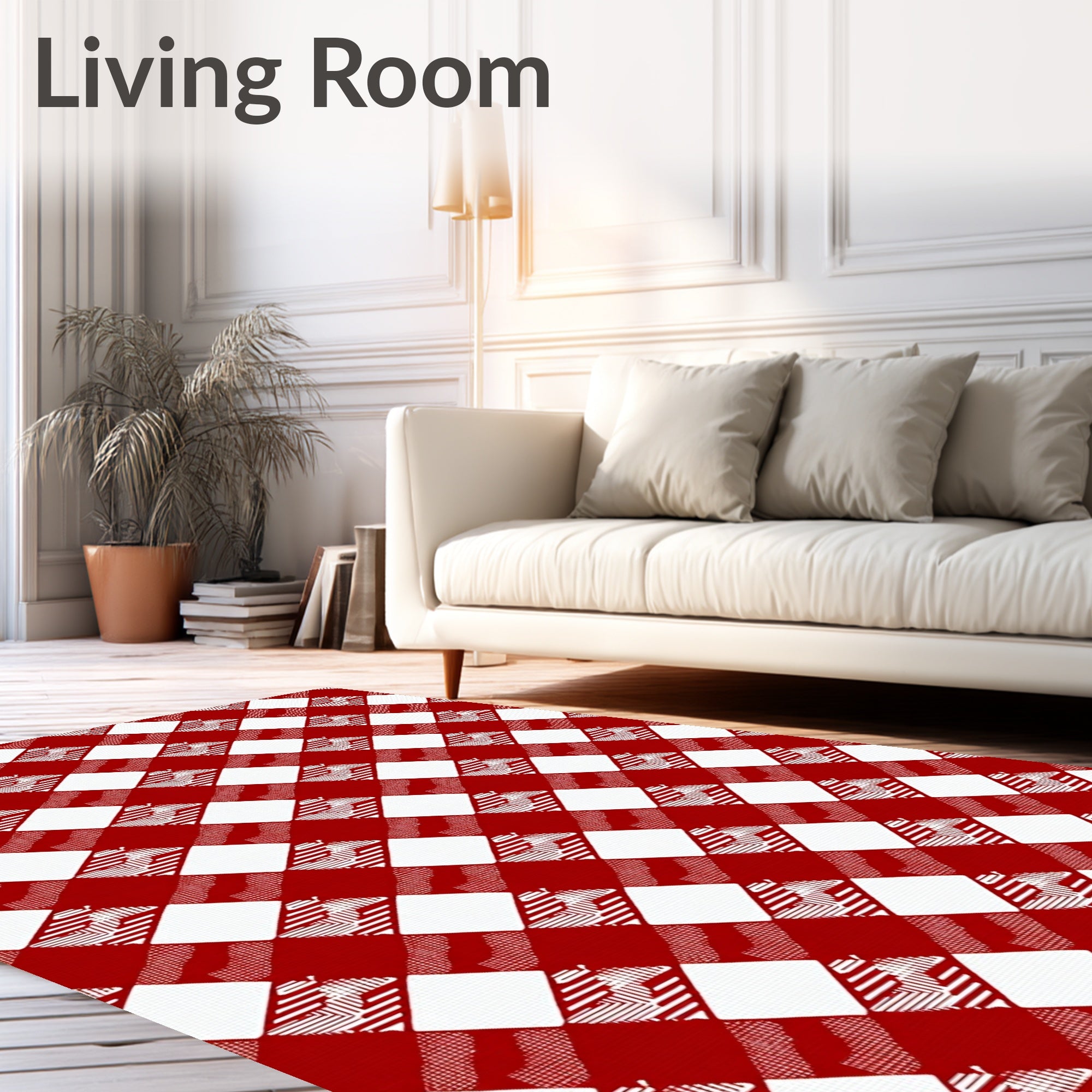 Ultra Soft Area Rug, Non Slip, Stain Resistant, Washable Area Rugs for Living Room, Bedroom, Jolly Farmhouse Tartan Entryway Decoration(Red) Overview: