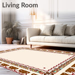 Ultra Soft Area Rug, Non Slip, Stain Resistant, Washable Area Rugs for Living Room, Bedroom, Jolly Gingerbread House Village with Frosted Peppermint Accents(Beige) Overview: