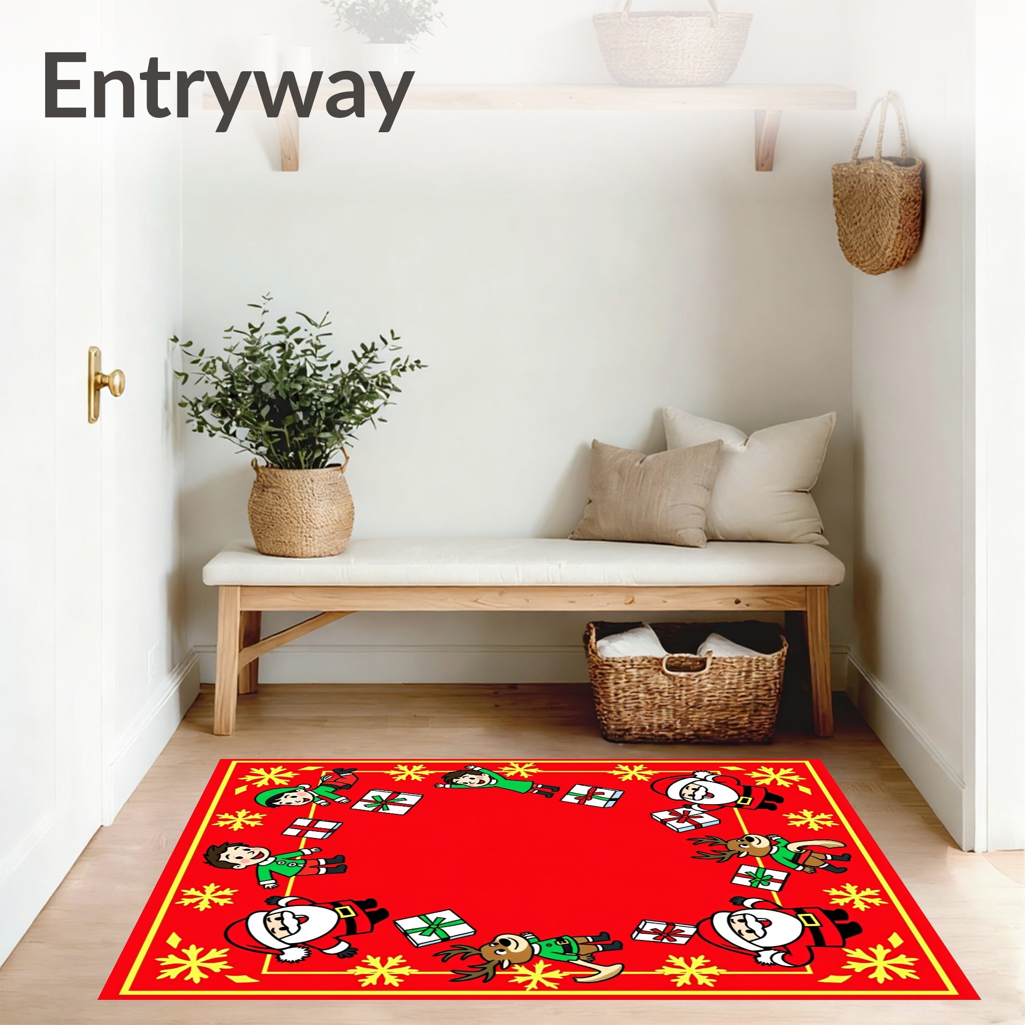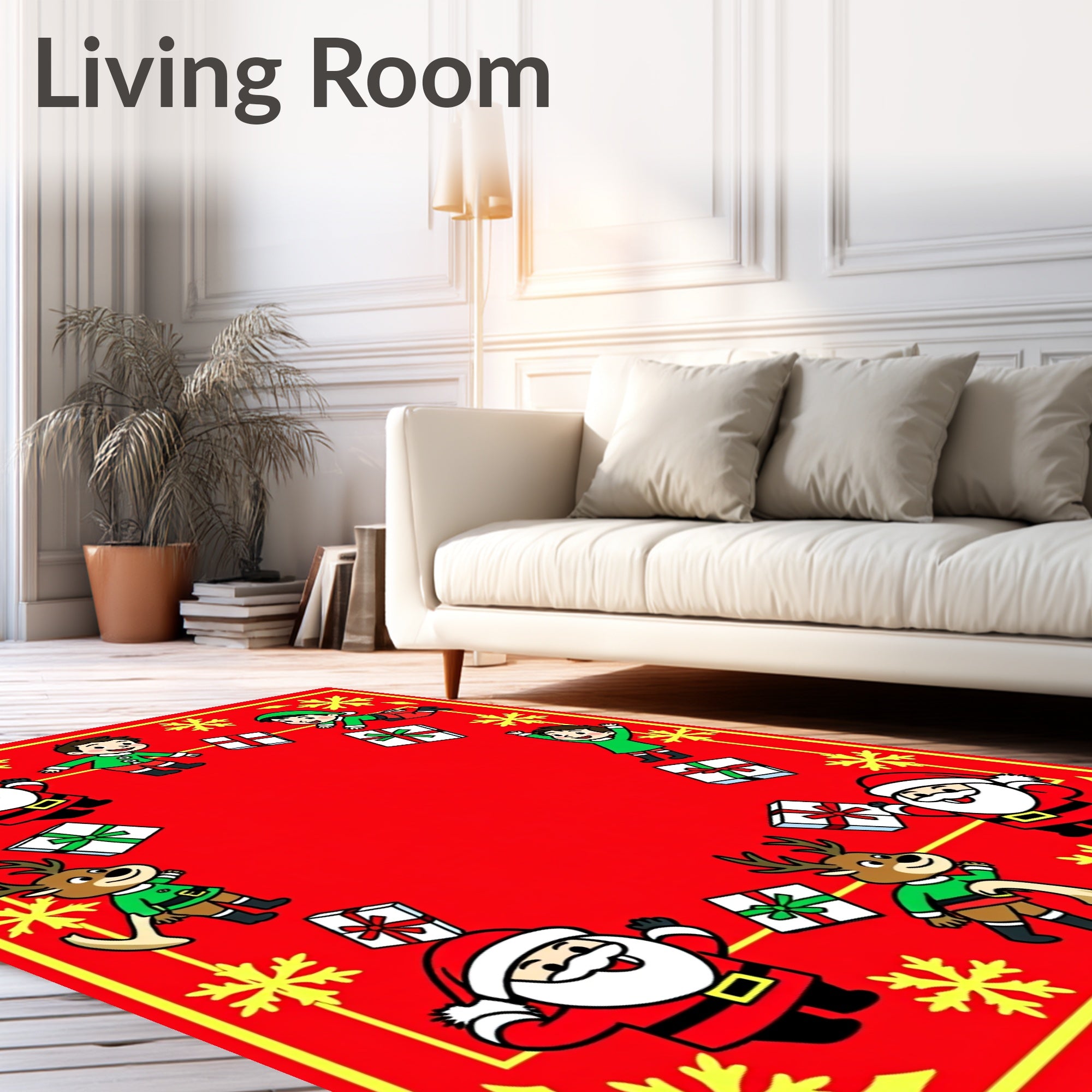 Ultra Soft Area Rug, Non Slip, Stain Resistant, Washable Area Rugs for Living Room, Bedroom, Jolly North Pole Adventure Holiday Festive(Red) Overview: