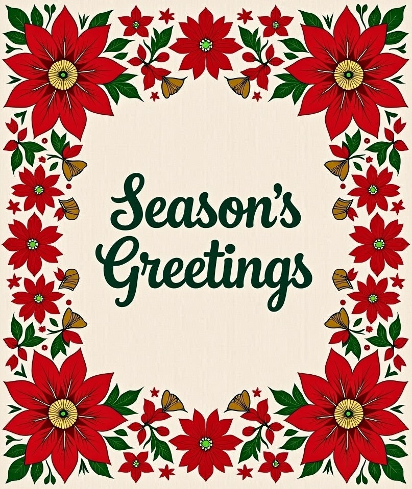 Jolly Poinsettia Bordered Greeting Coir Doorstep Decoration(Ivory)