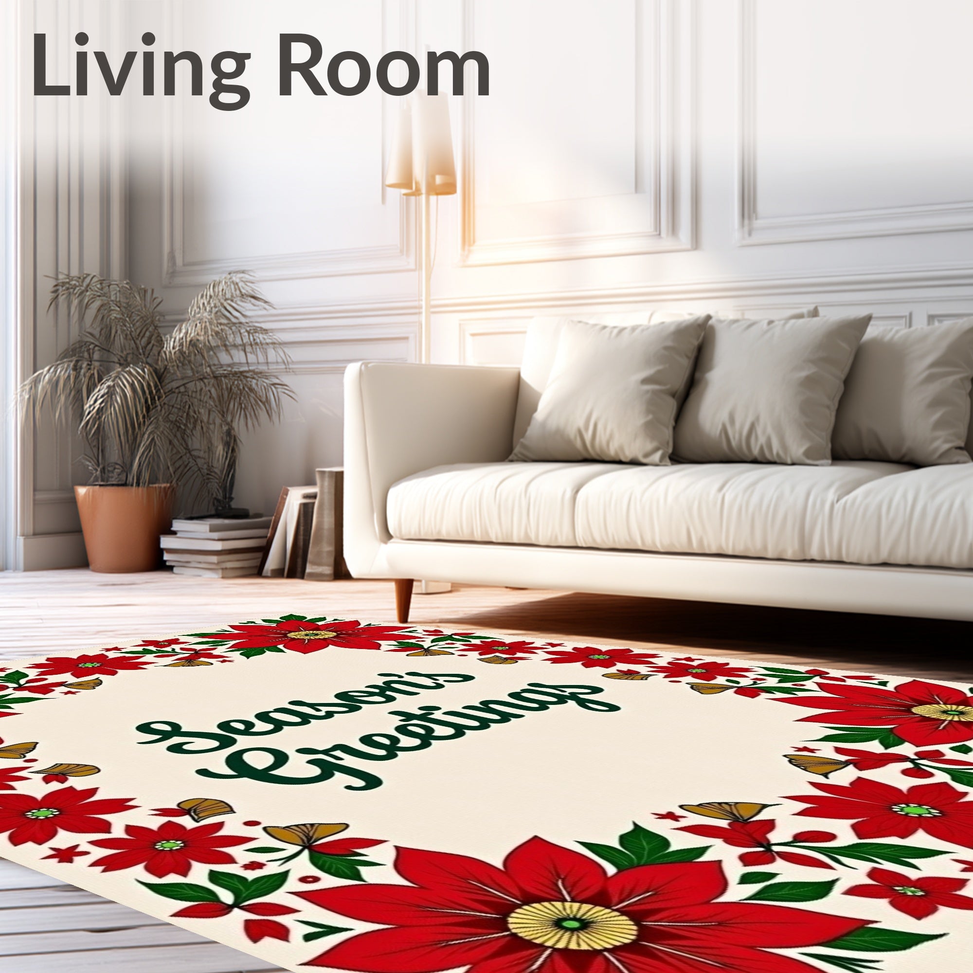 Ultra Soft Area Rug, Non Slip, Stain Resistant, Washable Area Rugs for Living Room, Bedroom, Jolly Poinsettia Bordered Greeting Coir Doorstep Decoration(Ivory) Overview: