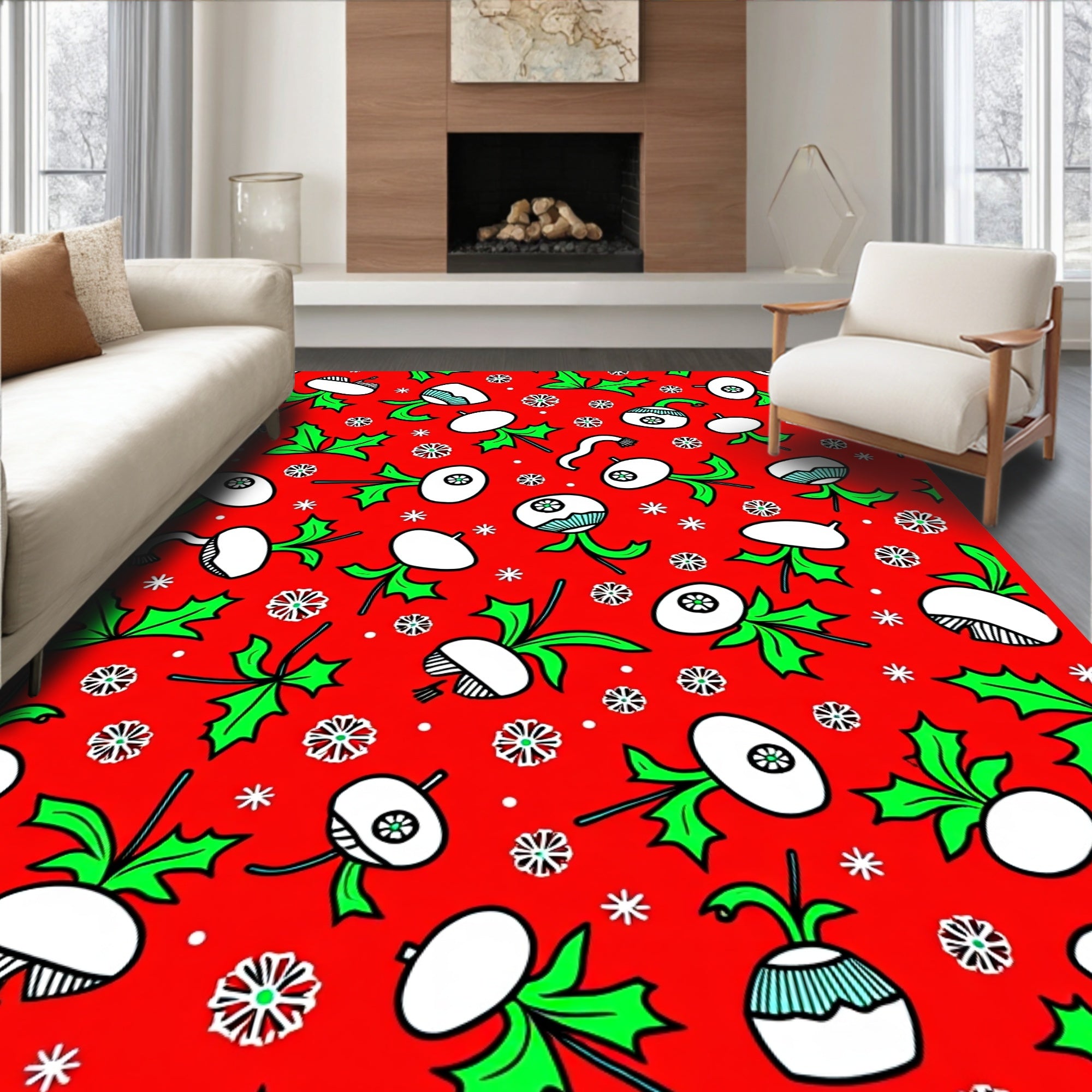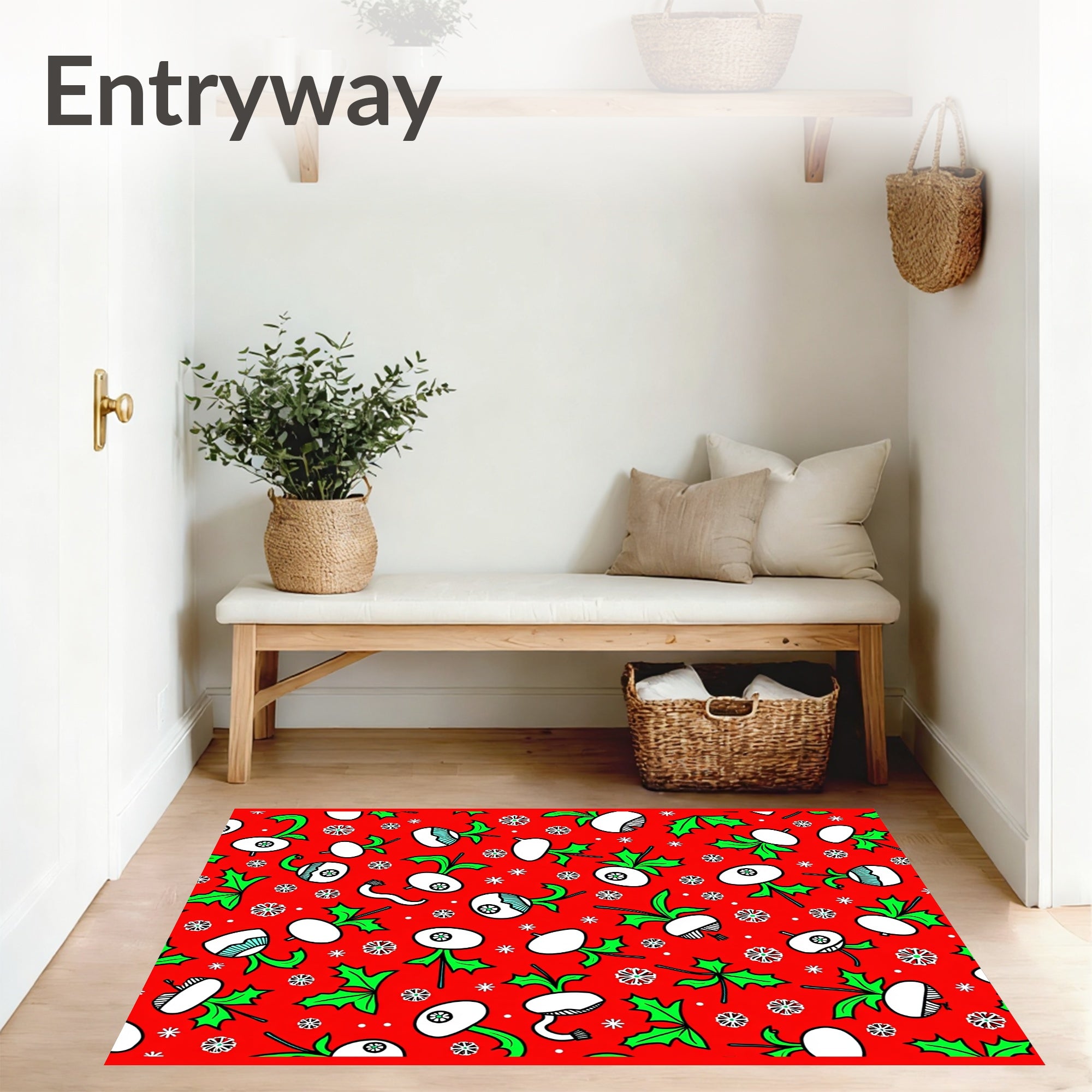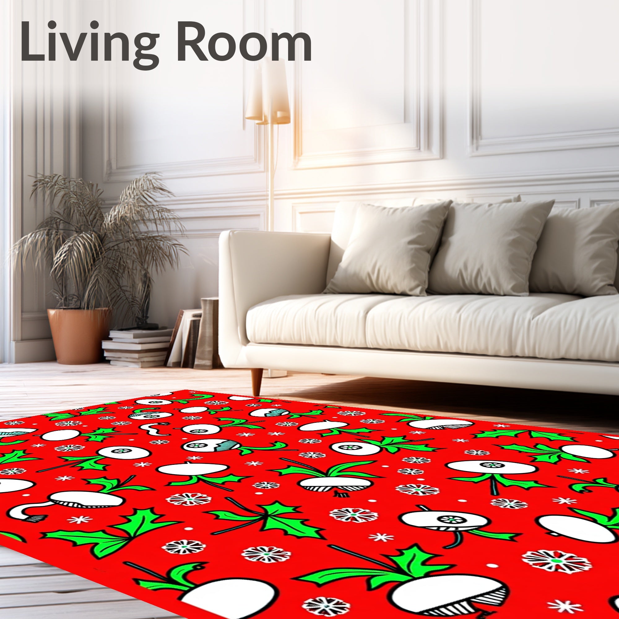 Ultra Soft Area Rug, Non Slip, Stain Resistant, Washable Area Rugs for Living Room, Bedroom, Jolly Santa Mosaic with Sprig and Holly Details(Red) Overview: