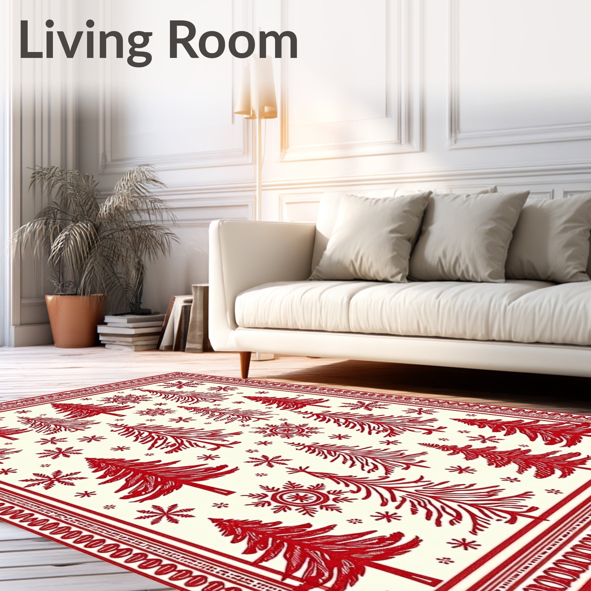 Ultra Soft Area Rug, Non Slip, Stain Resistant, Washable Area Rugs for Living Room, Bedroom, Jolly Yuletide Celebration Enchanted Wonderland Surface(Red) Overview: