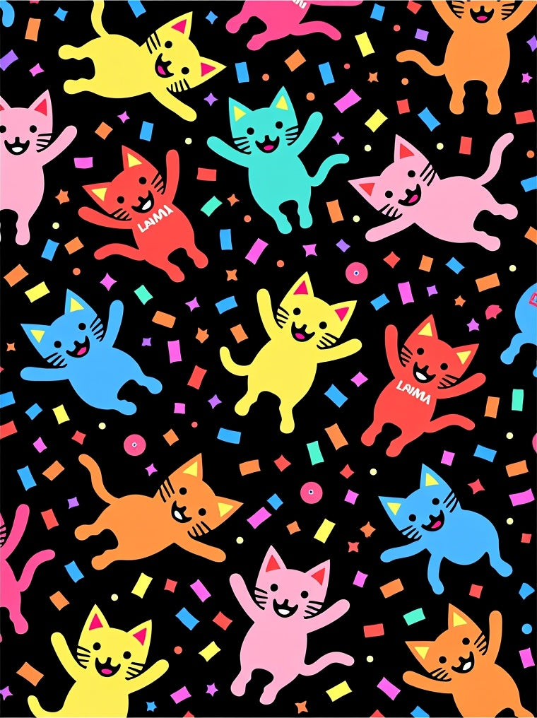 Jovial Meow Parade Festive Celebration With Dancing Kittens(Black)