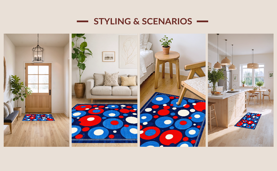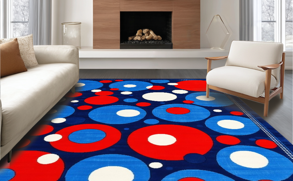Ultra Soft Area Rug, Non Slip, Stain Resistant, Washable Area Rugs for Living Room, Bedroom, Joyful Abstract Dotted Aesthetic(Blue) Overview: