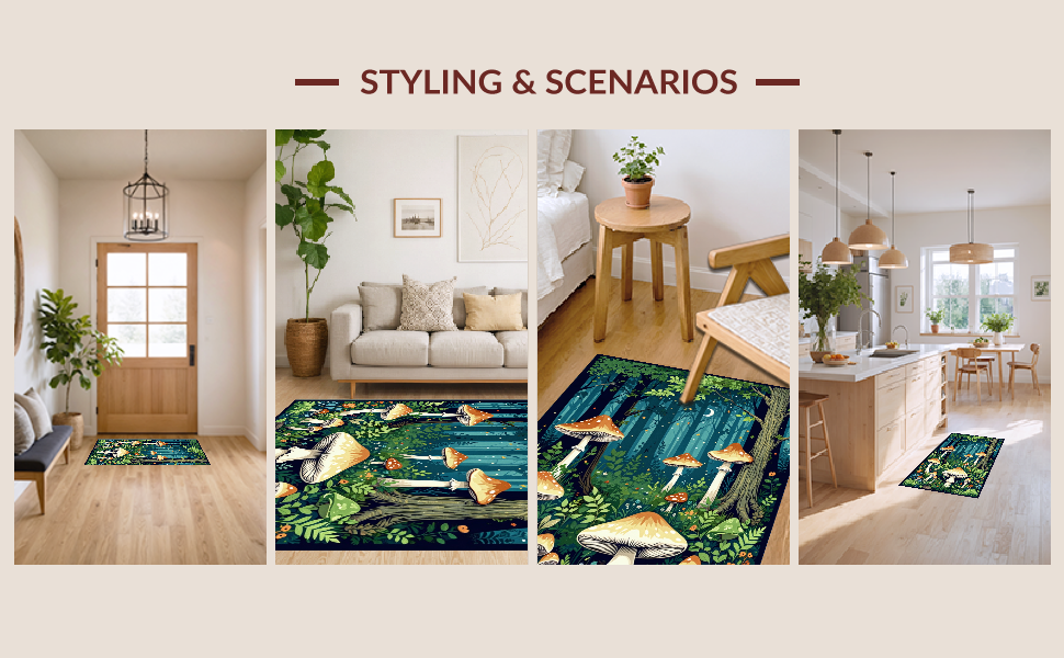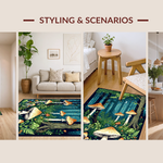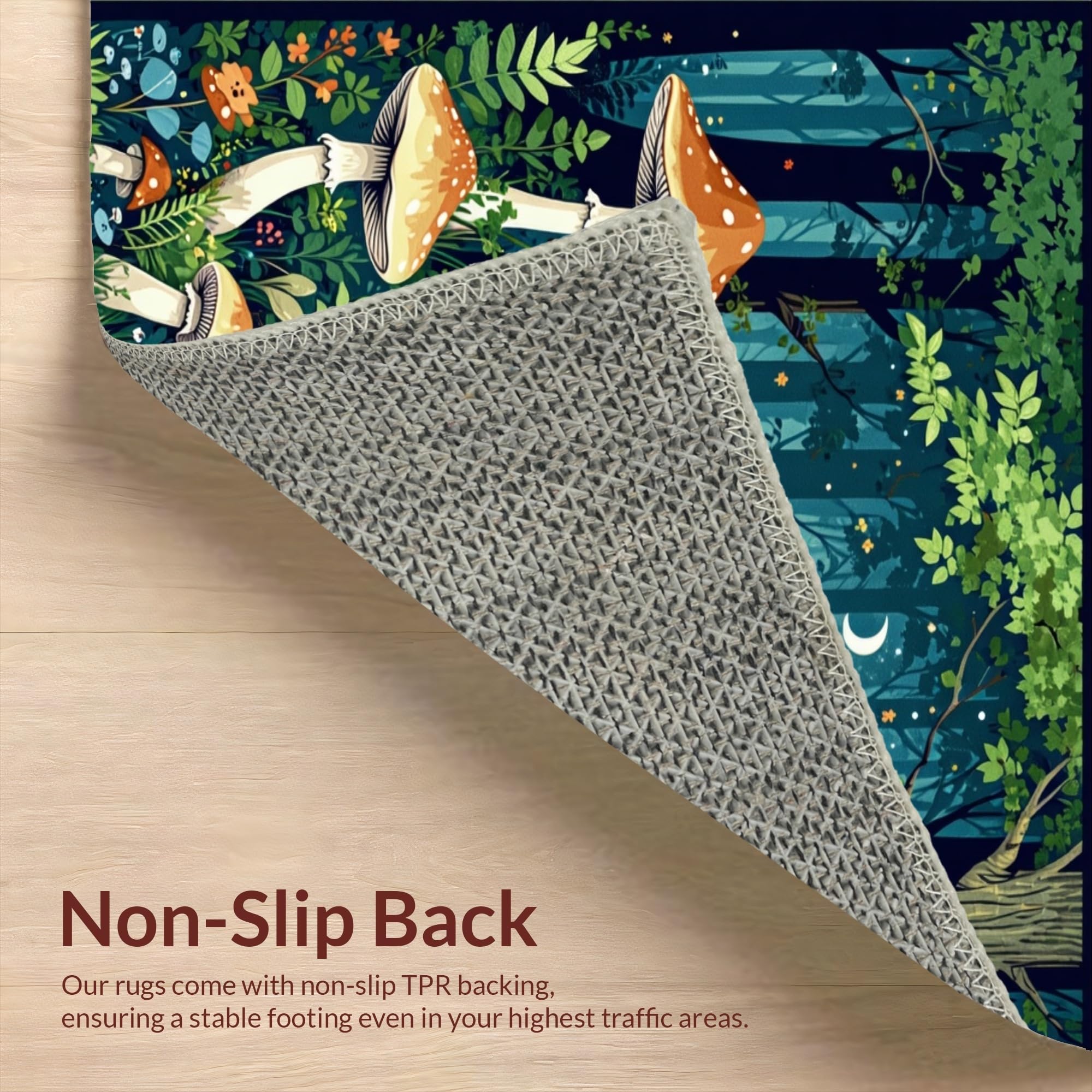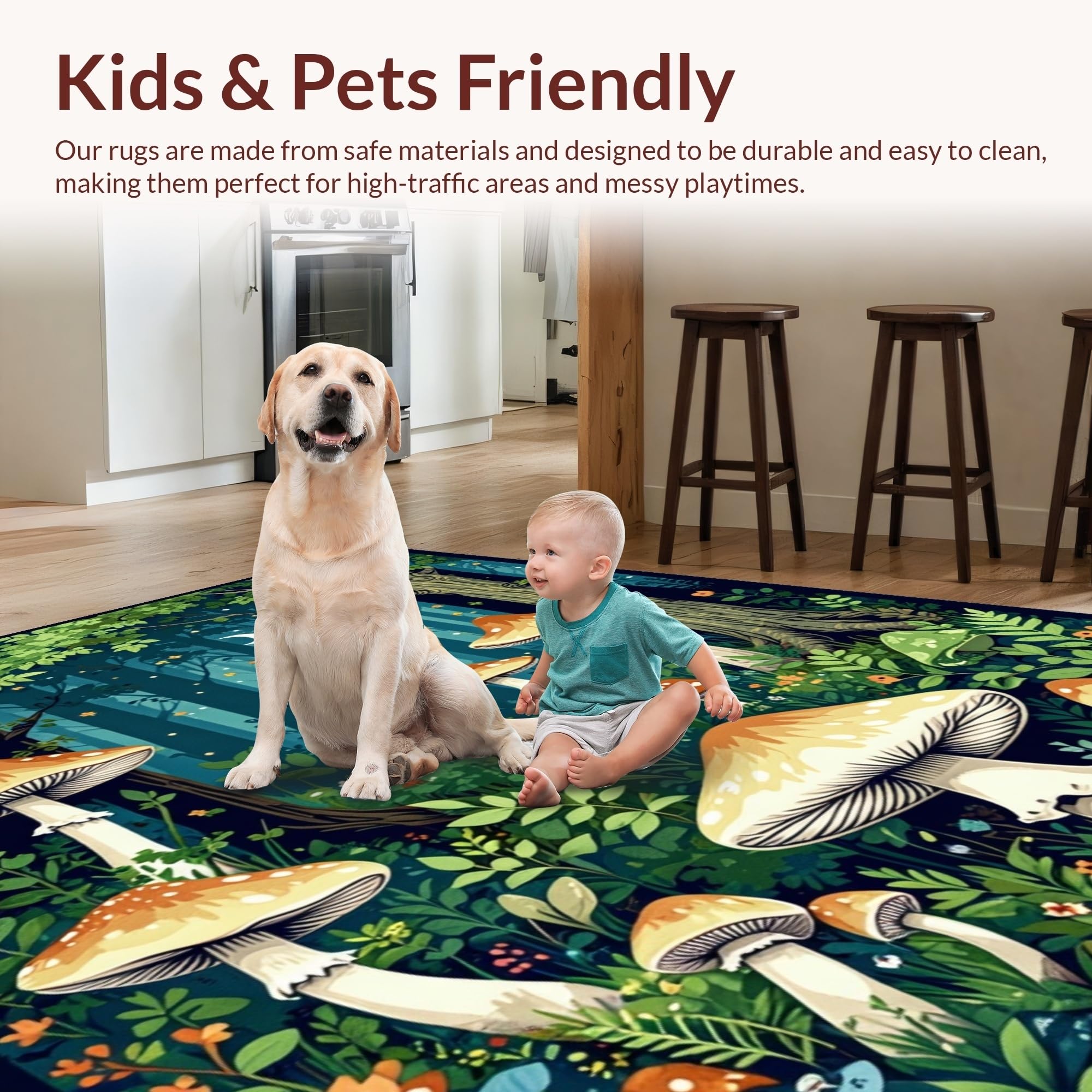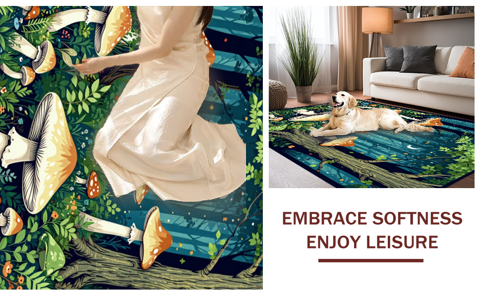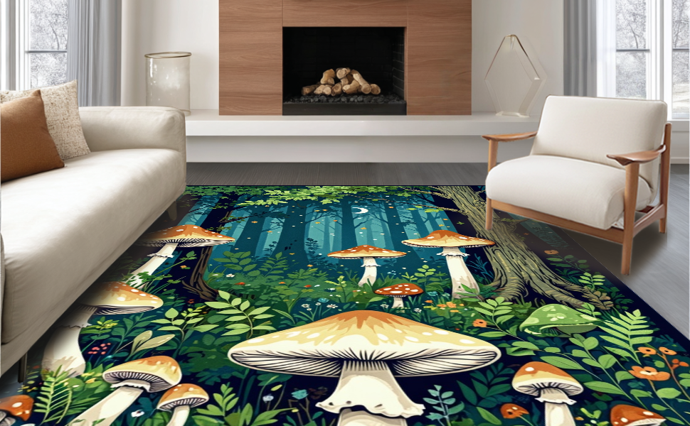 Ultra Soft Area Rug, Non Slip, Stain Resistant, Washable Area Rugs for Living Room, Bedroom, Joyful Blue Tones Abstract Fungi Style(Green) Overview: