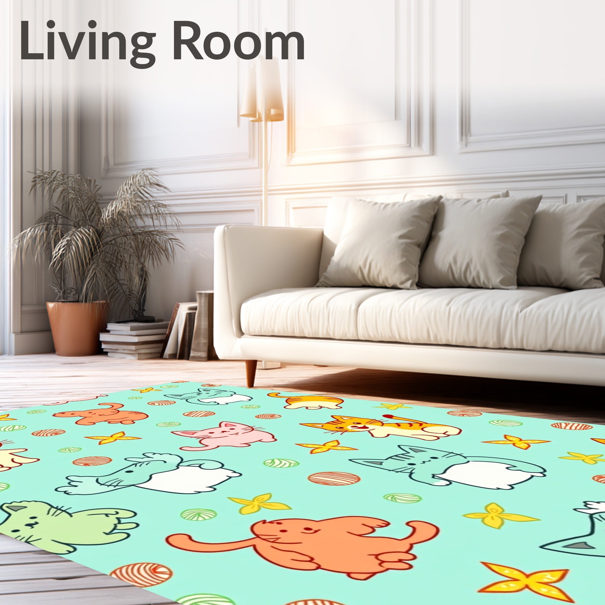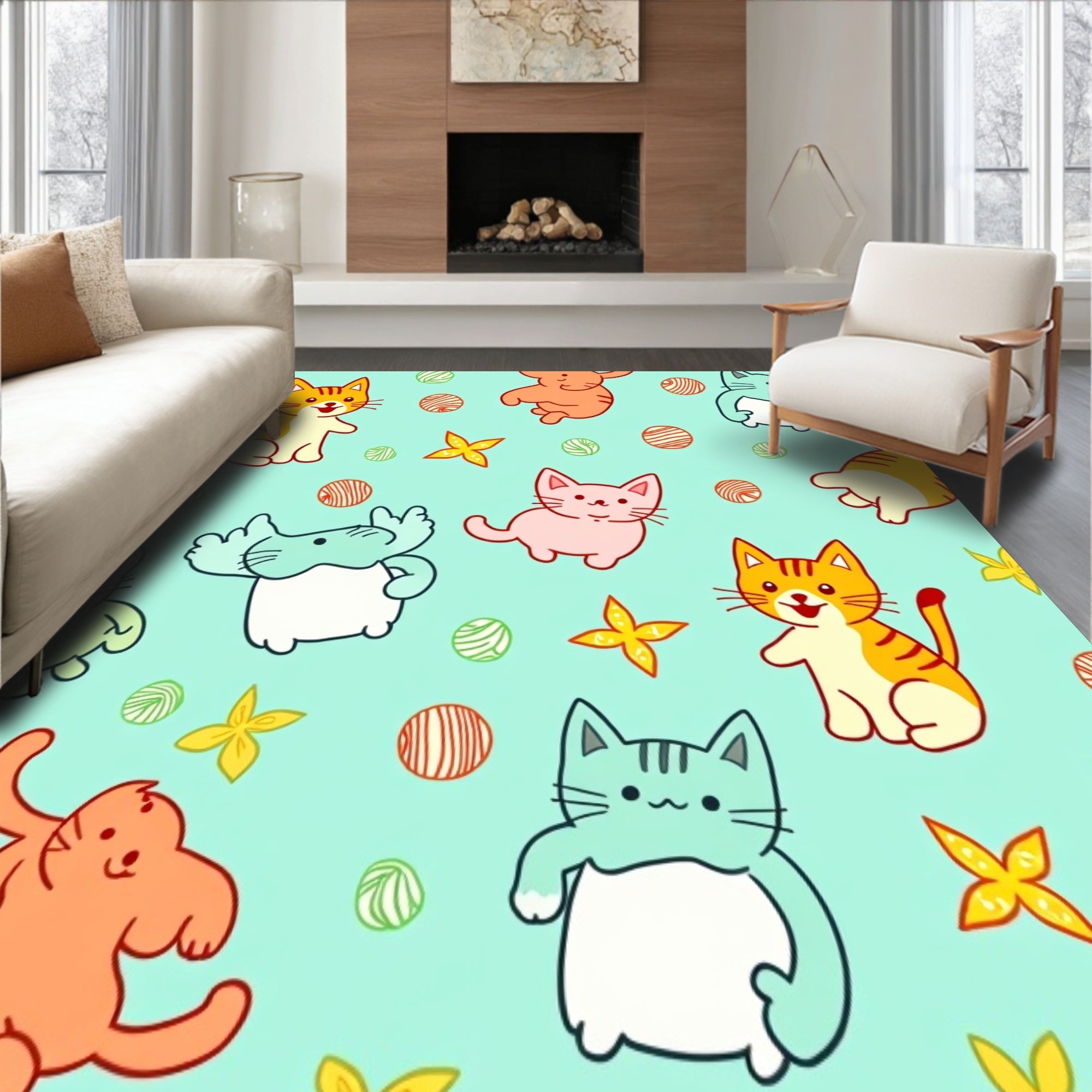 Ultra Soft Area Rug, Non Slip, Stain Resistant, Washable Area Rugs for Living Room, Bedroom, Joyful Calico Companion Doormat Scratch Barrier(Blue) Overview: