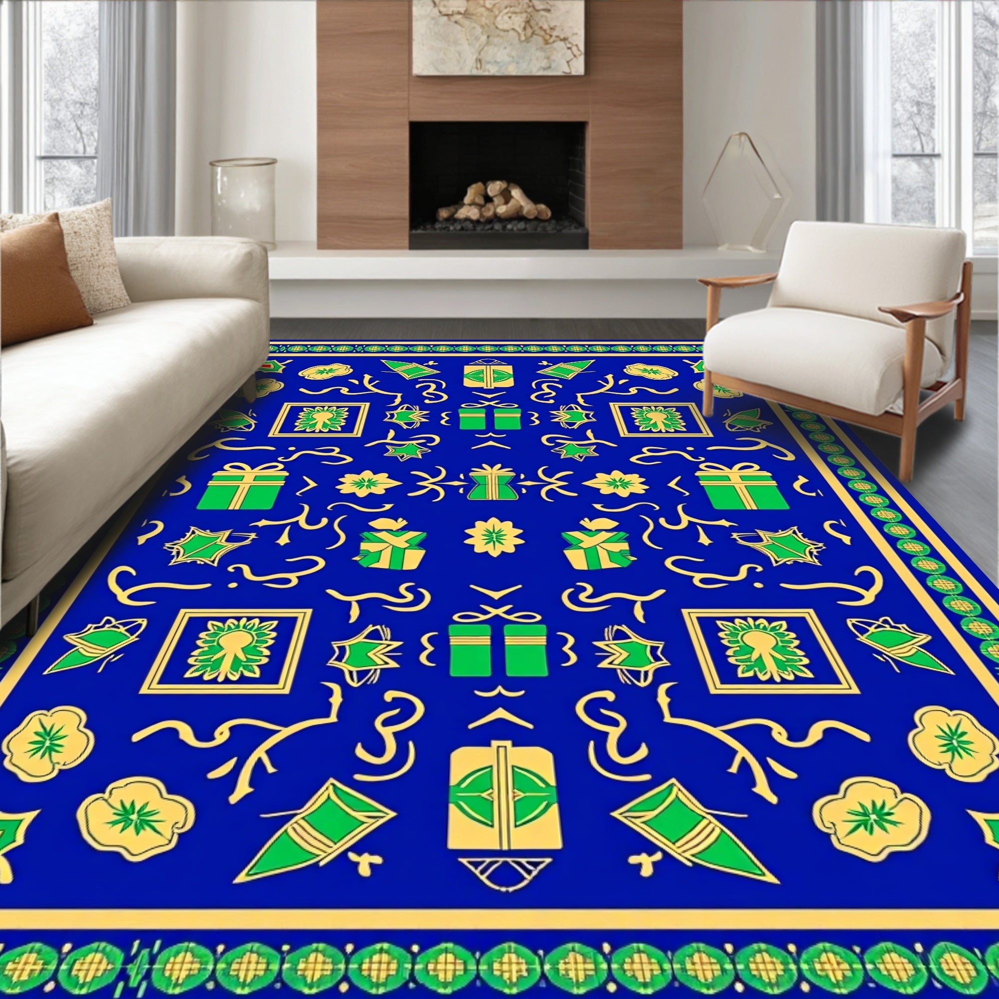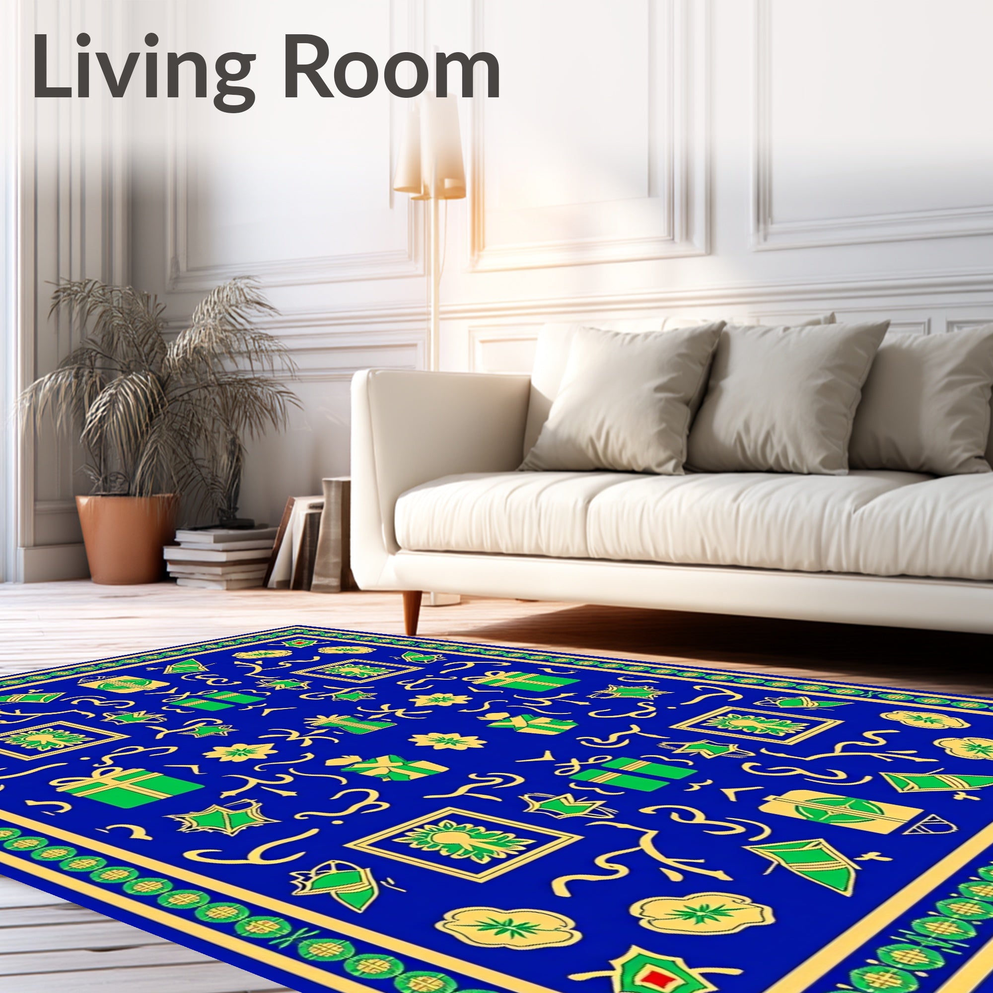 Ultra Soft Area Rug, Non Slip, Stain Resistant, Washable Area Rugs for Living Room, Bedroom, Joyful Celebration Heirloom Treasure Radiant Spectacular Symphony(Blue) Overview: