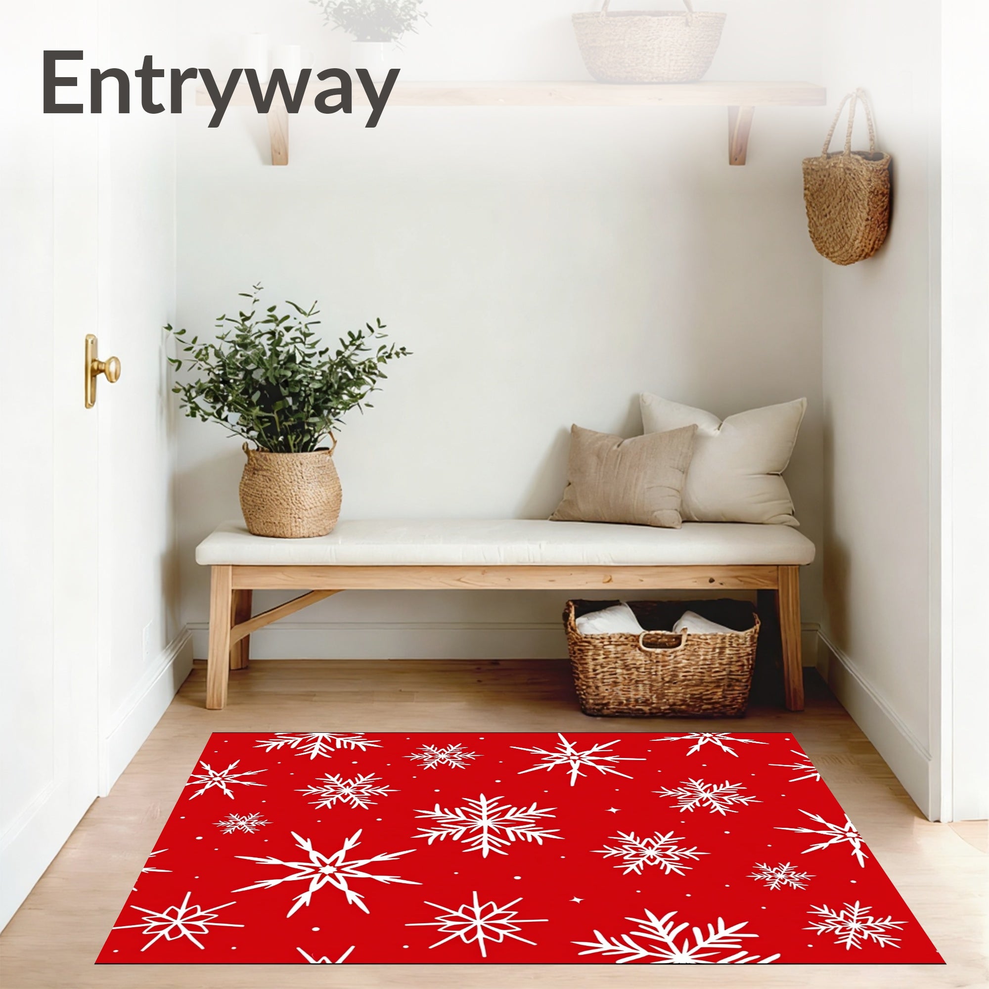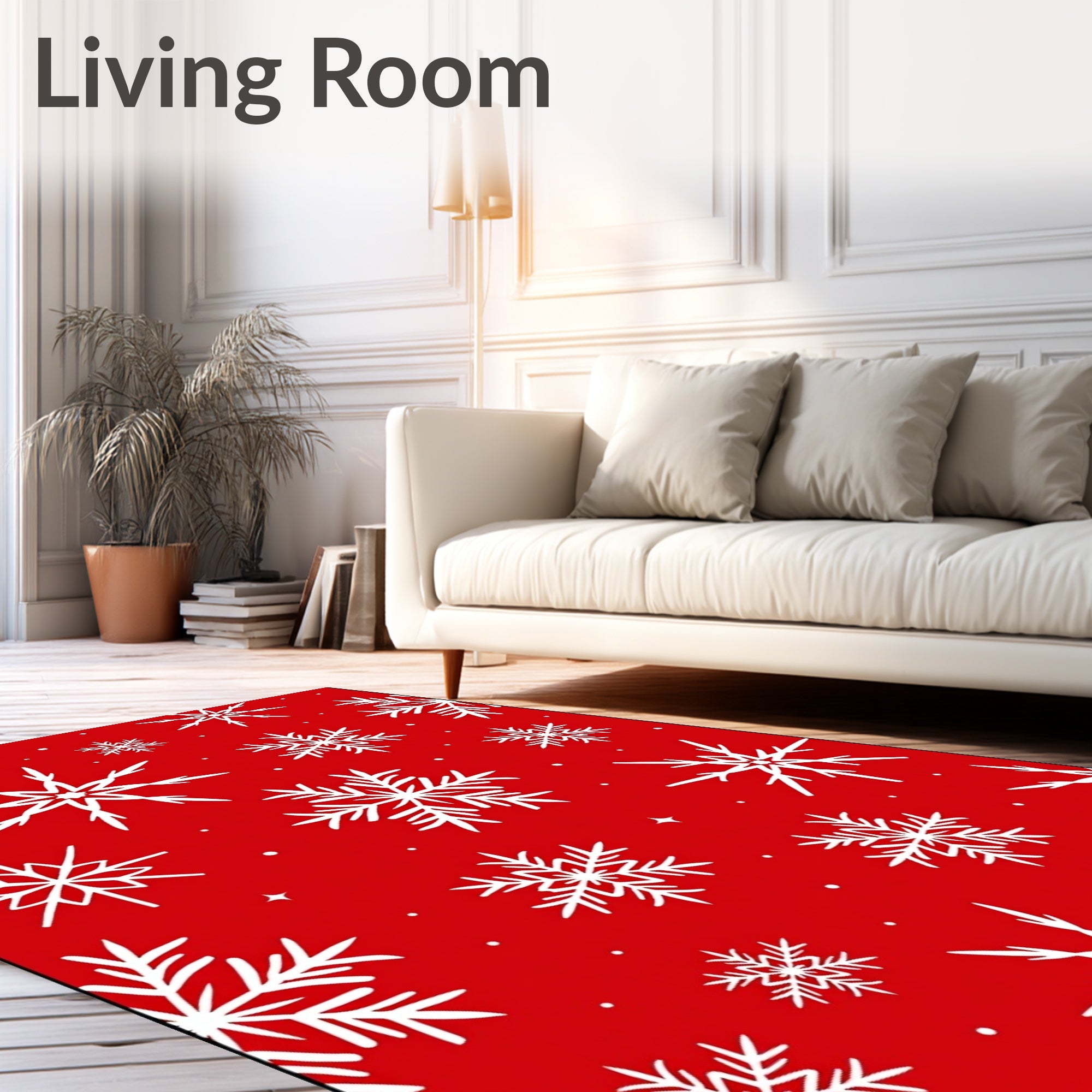 Ultra Soft Area Rug, Non Slip, Stain Resistant, Washable Area Rugs for Living Room, Bedroom, Joyful Celebration Seasonal Decorative(Red) Overview: