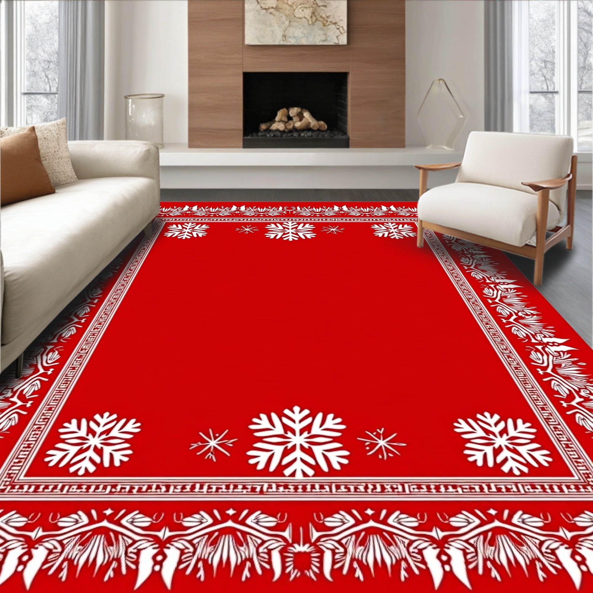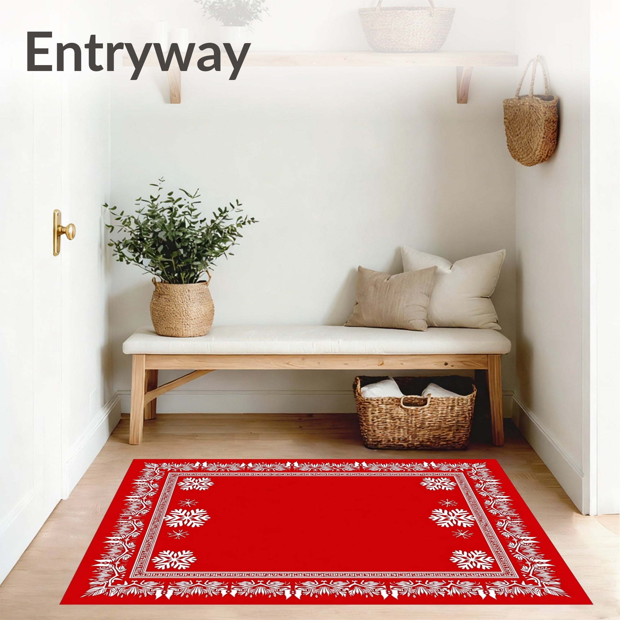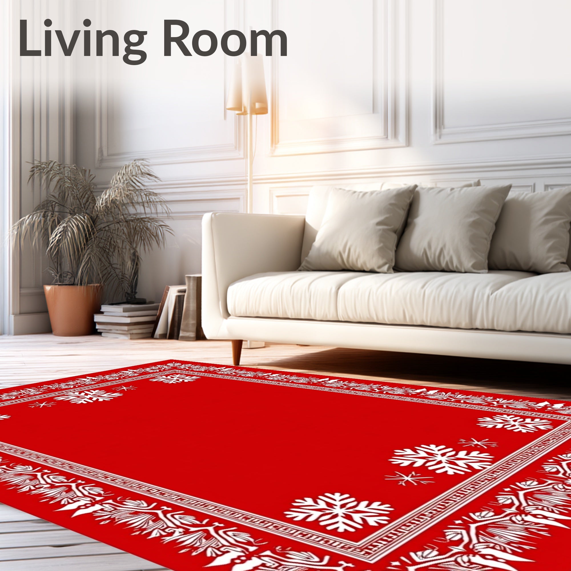 Ultra Soft Area Rug, Non Slip, Stain Resistant, Washable Area Rugs for Living Room, Bedroom, Joyful Celebration Yuletide Decorative Flooring(Red) Overview: