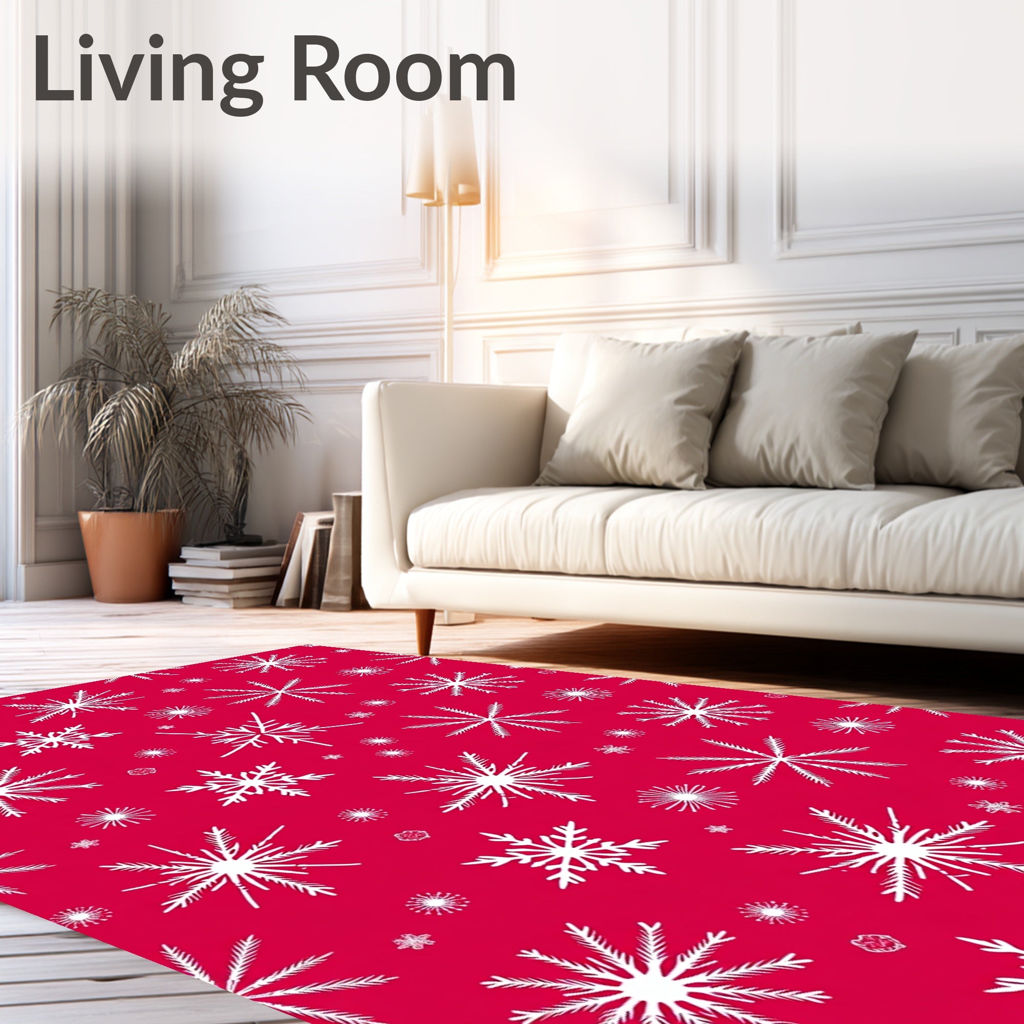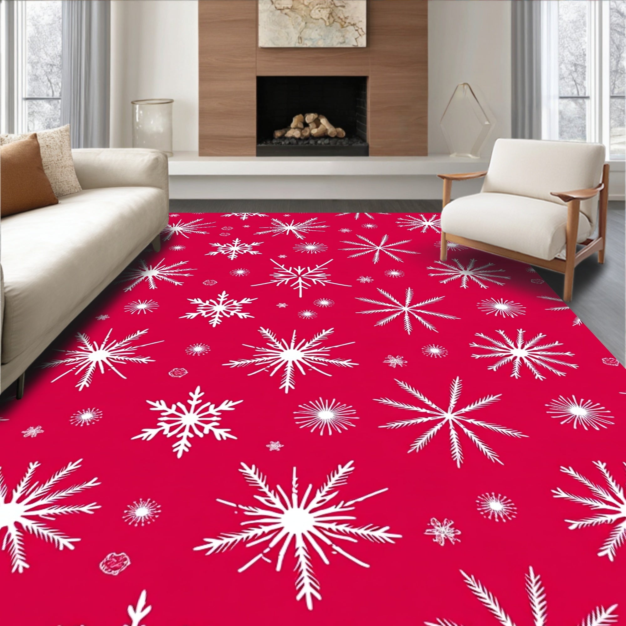 Ultra Soft Area Rug, Non Slip, Stain Resistant, Washable Area Rugs for Living Room, Bedroom, Joyful Celebration Yuletide Ornamental Floor(Red) Overview: