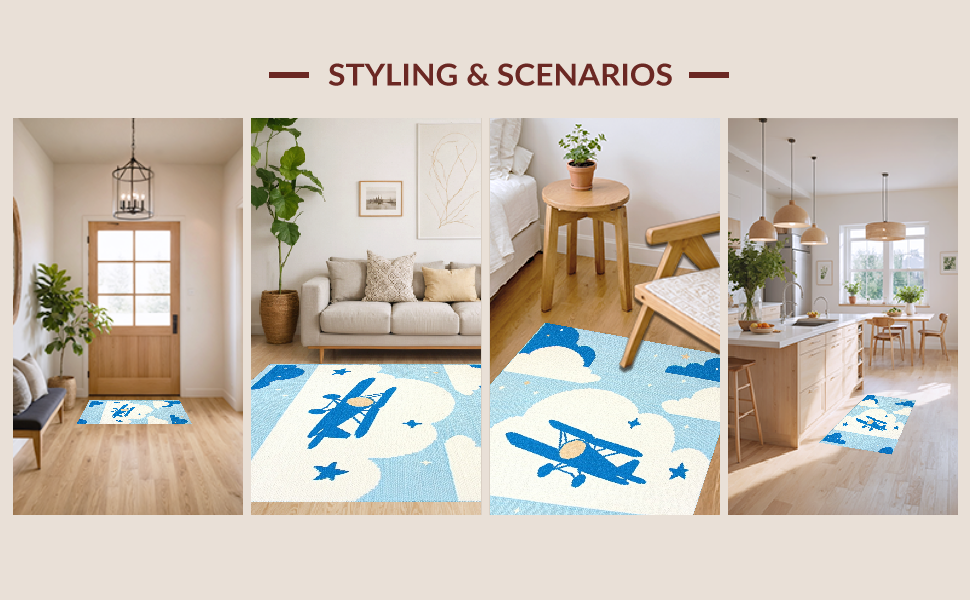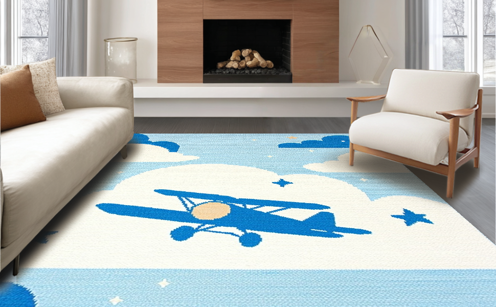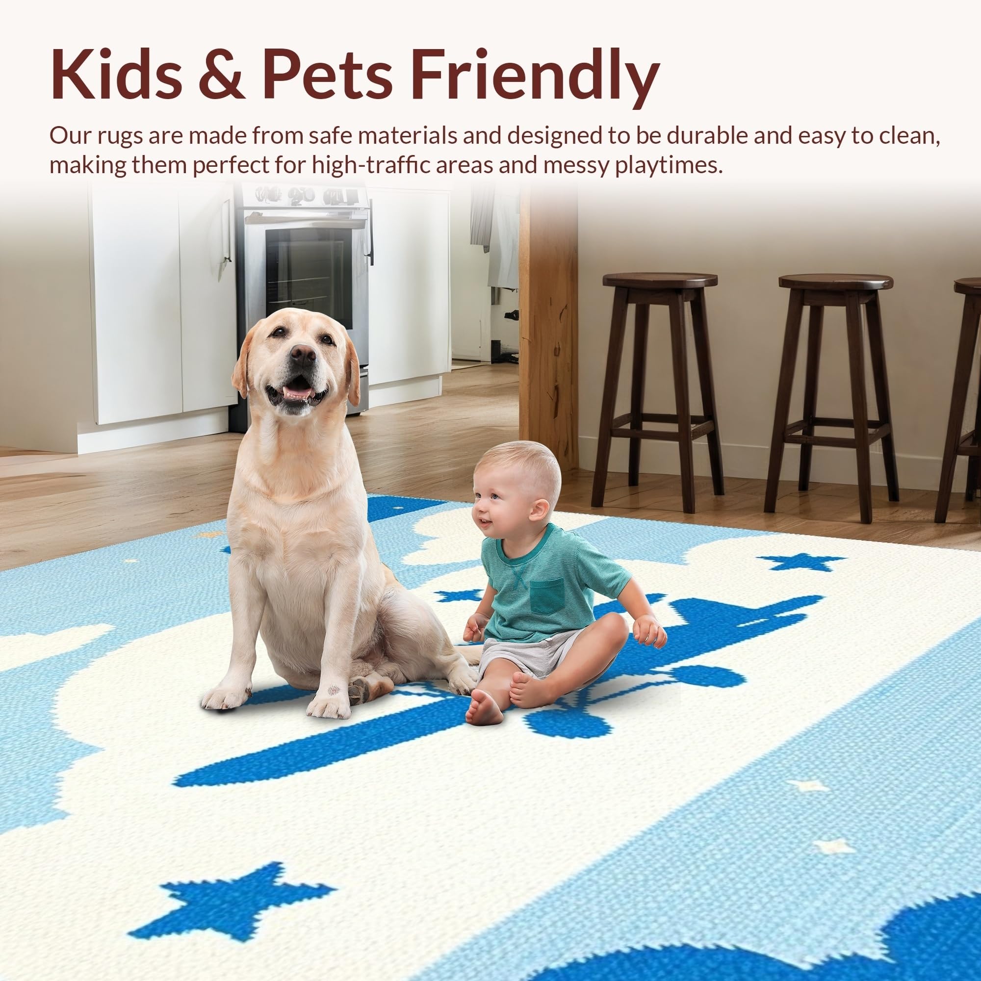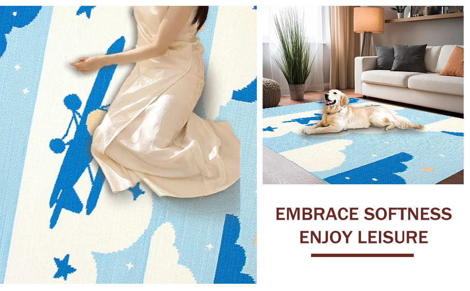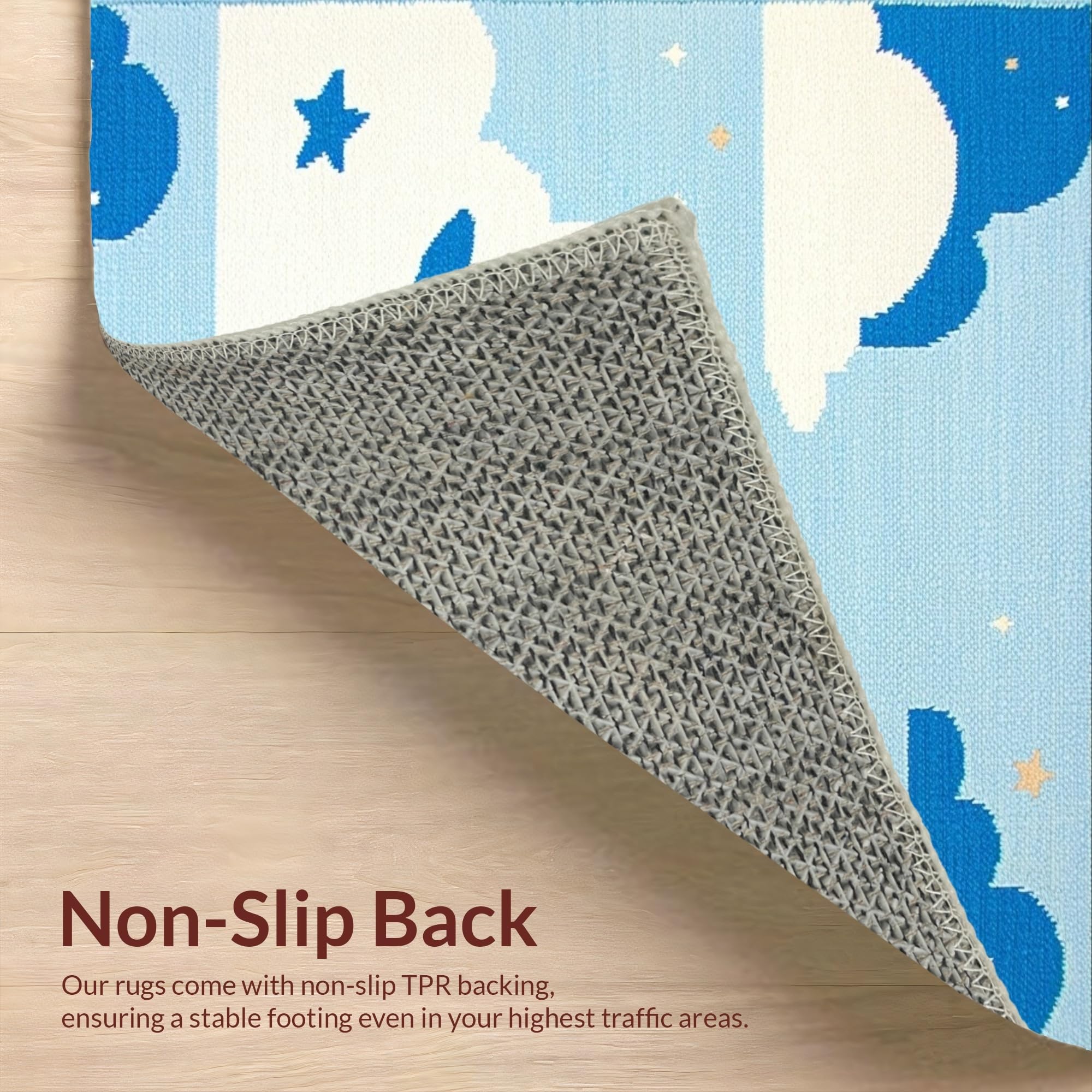 Ultra Soft Area Rug, Non Slip, Stain Resistant, Washable Area Rugs for Living Room, Bedroom, Joyful Celestial Cloudscape Design(Blue) Overview: