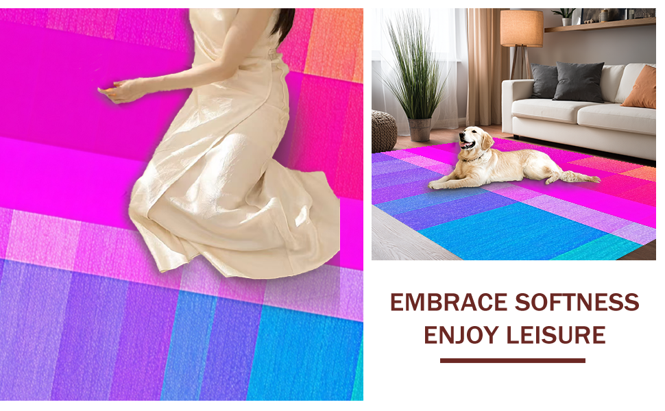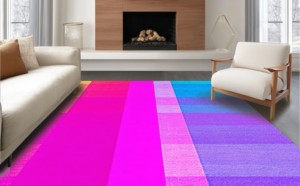 Ultra Soft Area Rug, Non Slip, Stain Resistant, Washable Area Rugs for Living Room, Bedroom, Joyful Curved Line Arrangement(Pink) Overview:
