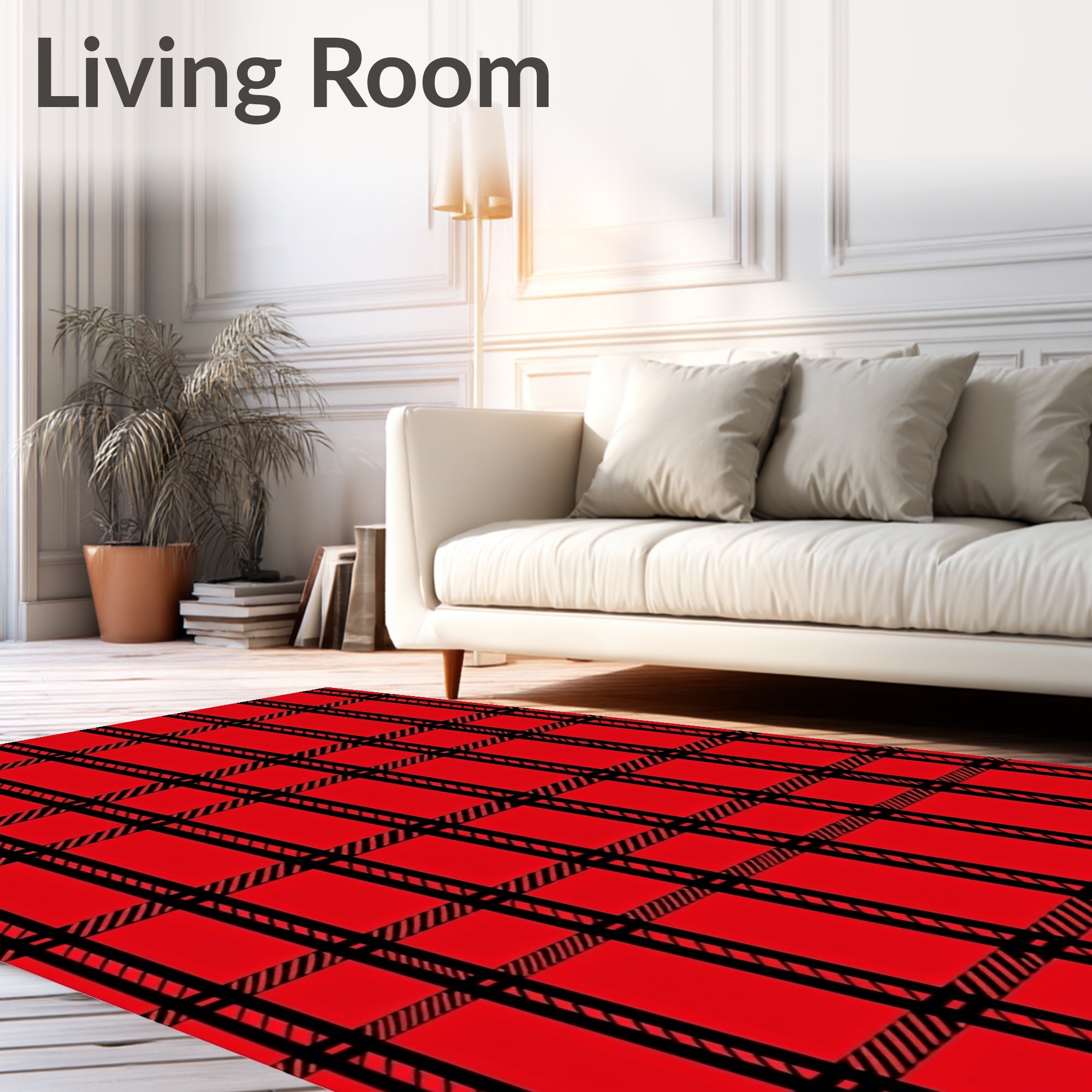 Ultra Soft Area Rug, Non Slip, Stain Resistant, Washable Area Rugs for Living Room, Bedroom, Joyful Gingham Hearth Welcoming Seasonal Accent(Red) Overview: