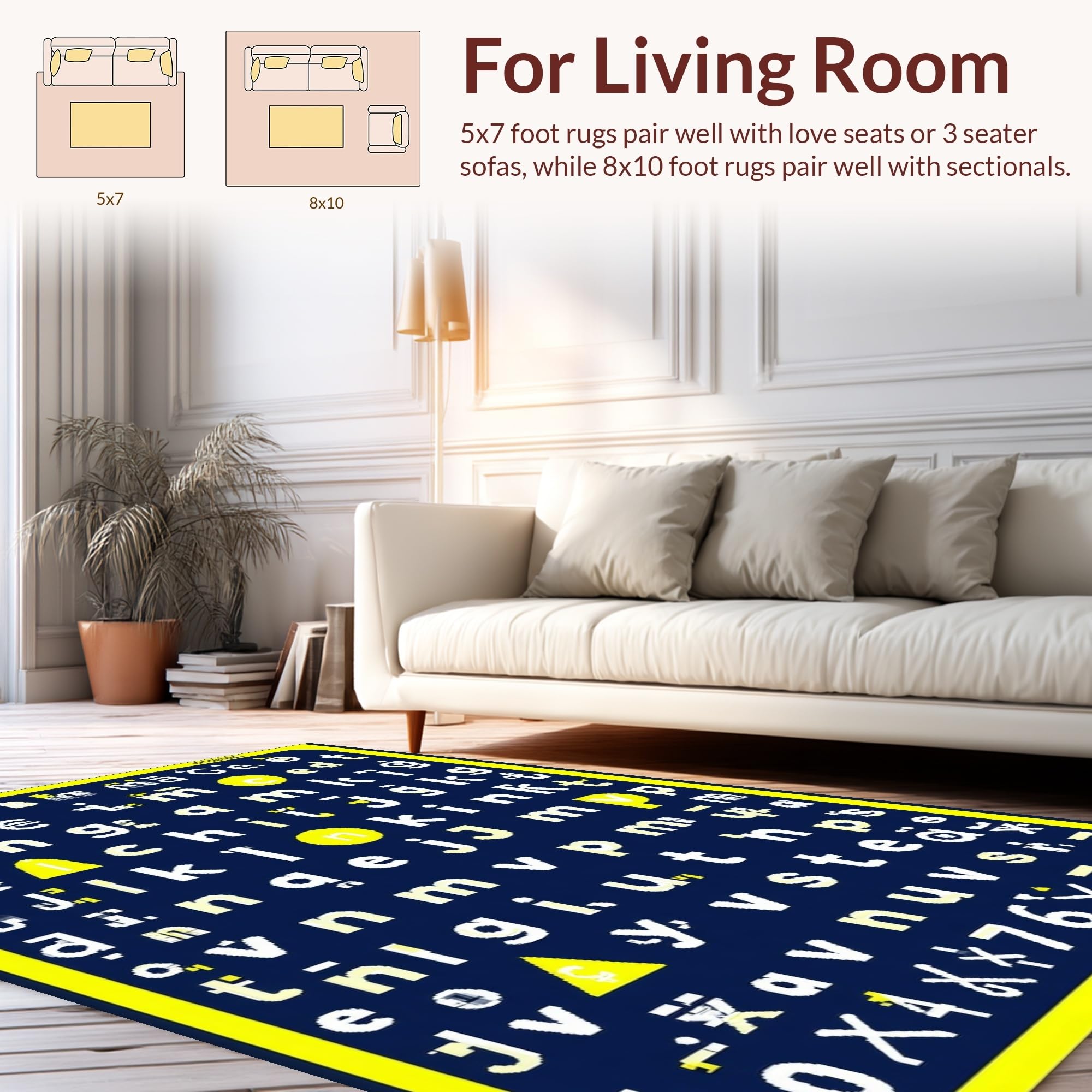 Ultra Soft Area Rug, Non Slip, Stain Resistant, Washable Area Rugs for Living Room, Bedroom, Joyful Learning Inspired Round Concept(White) Overview: