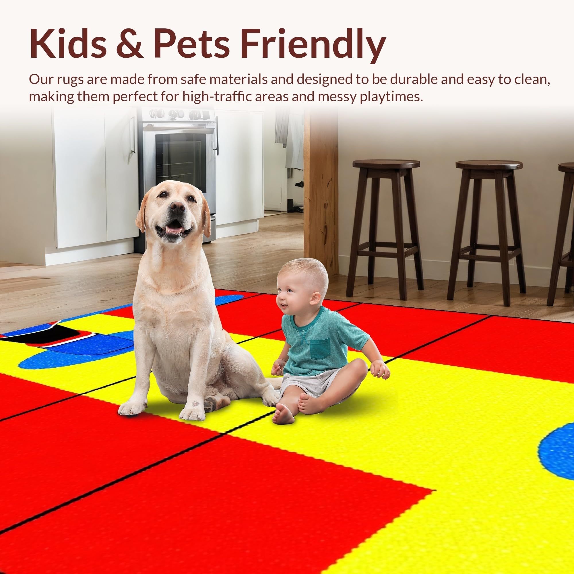 Ultra Soft Area Rug, Non Slip, Stain Resistant, Washable Area Rugs for Living Room, Bedroom, Joyful Learning Playful Motif(Red) Overview: