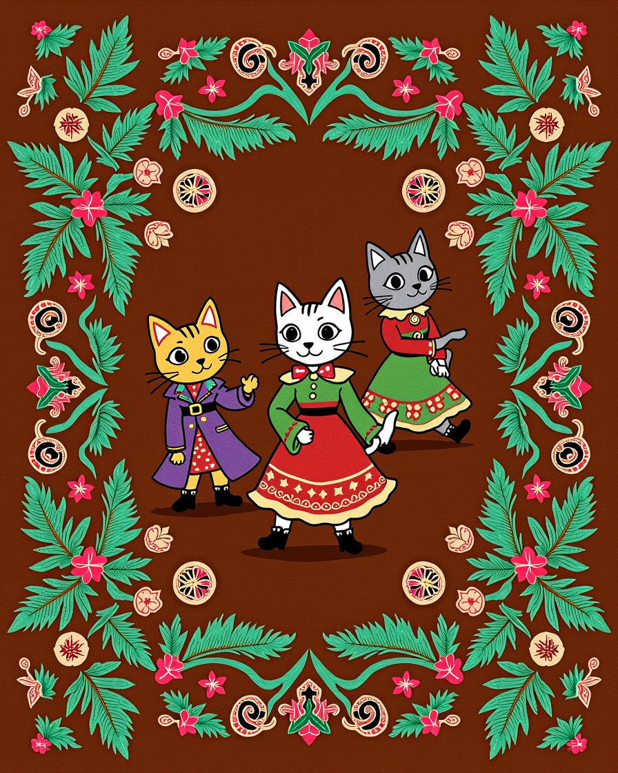 Joyful Lighted Cat Parade with Sparkling Ornament Accents and Fir Branches(Brown)