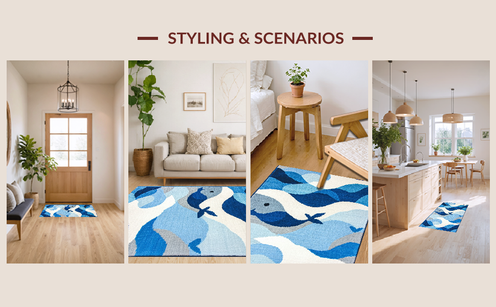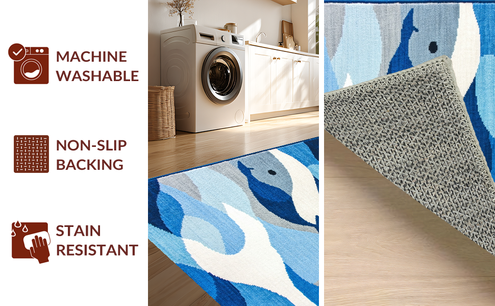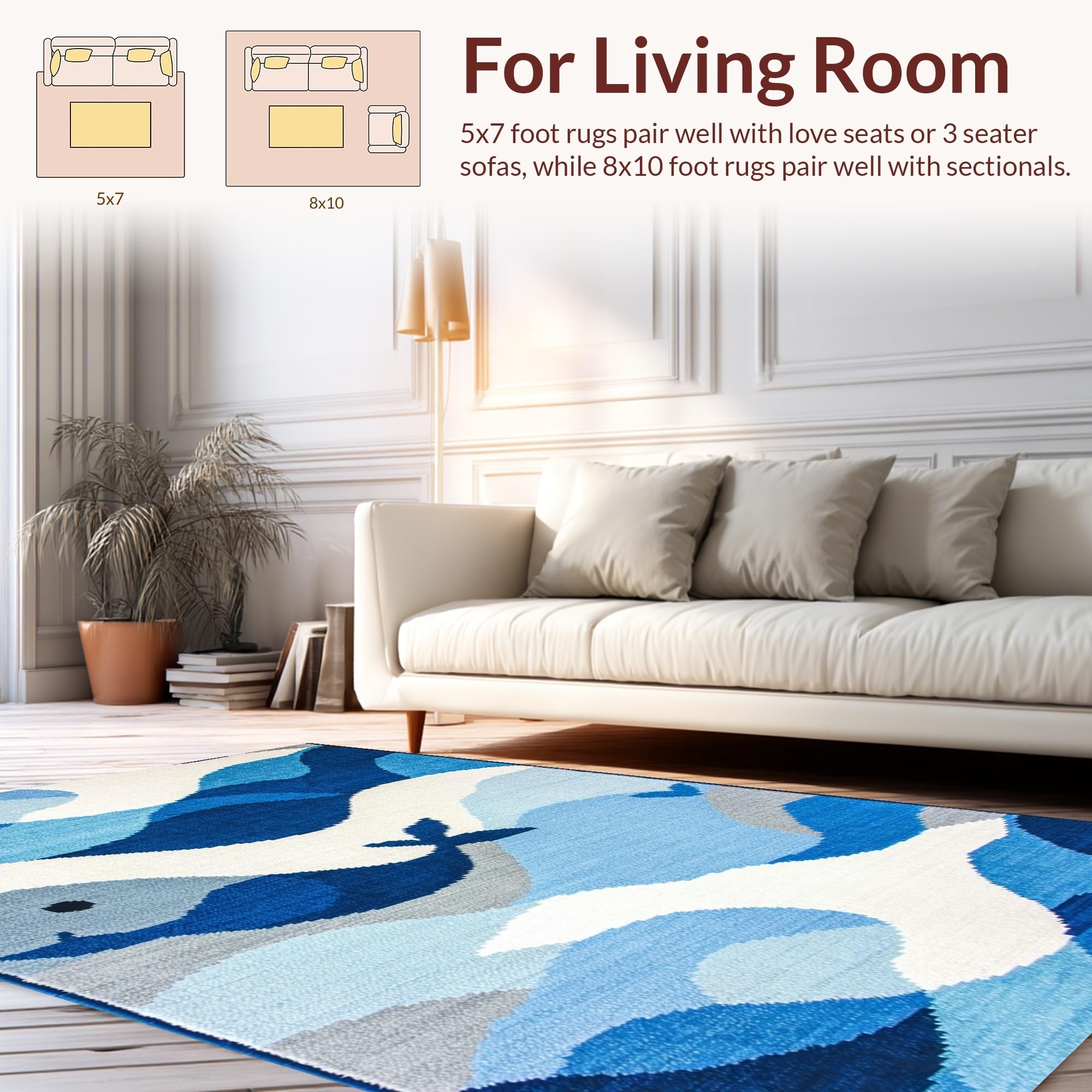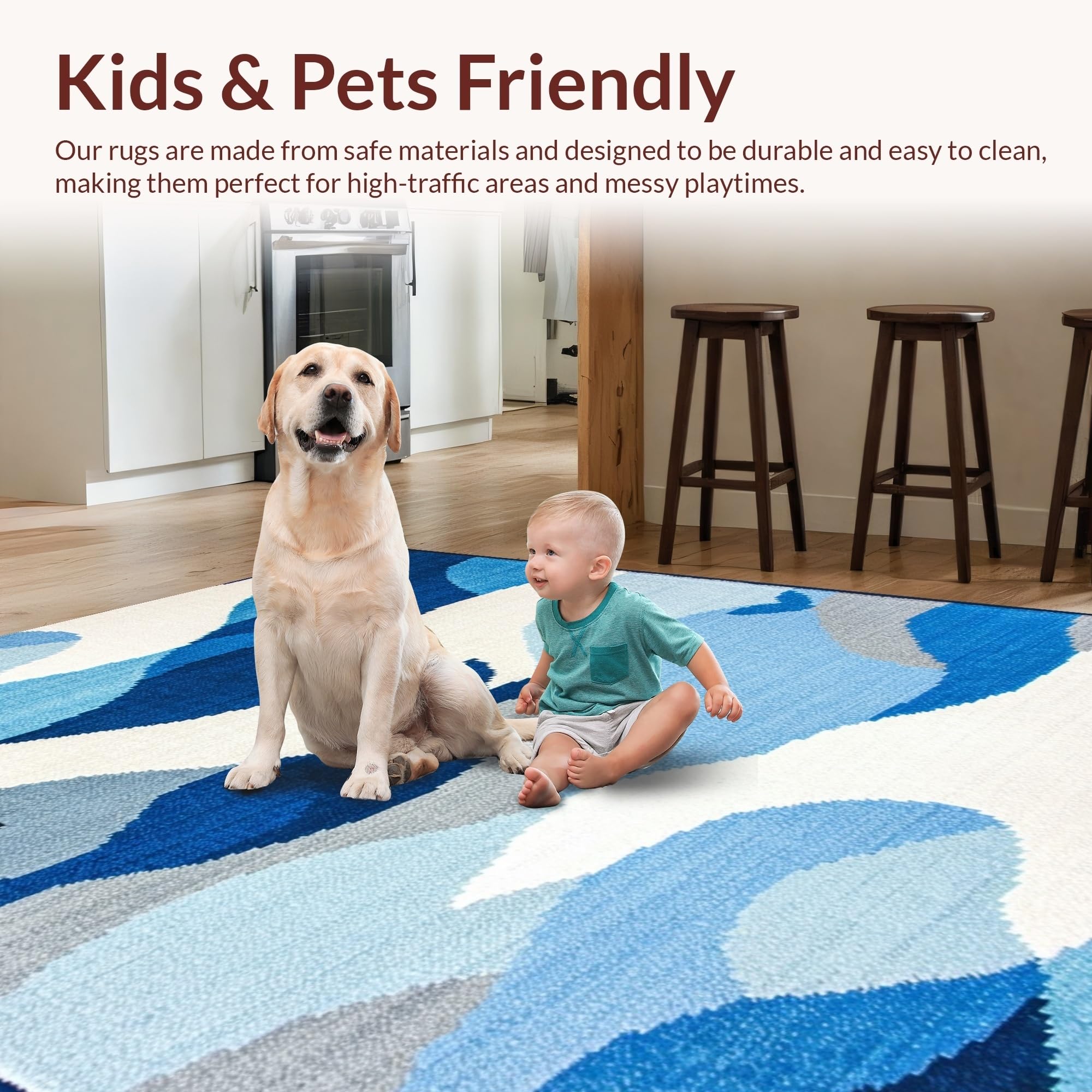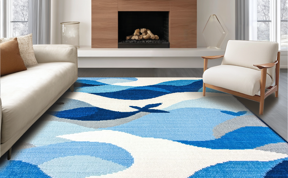 Ultra Soft Area Rug, Non Slip, Stain Resistant, Washable Area Rugs for Living Room, Bedroom, Joyful Marine Friends Art Concept(Blue) Overview: