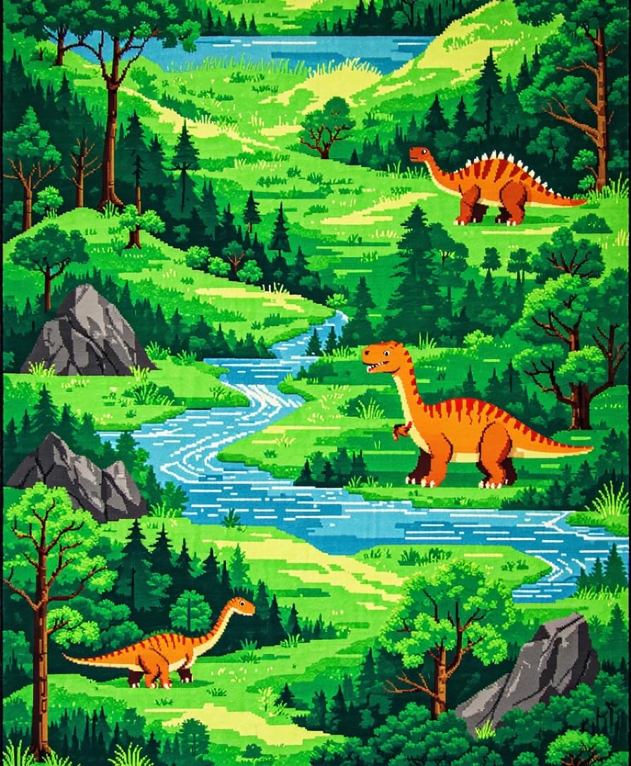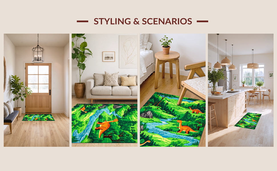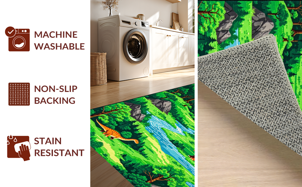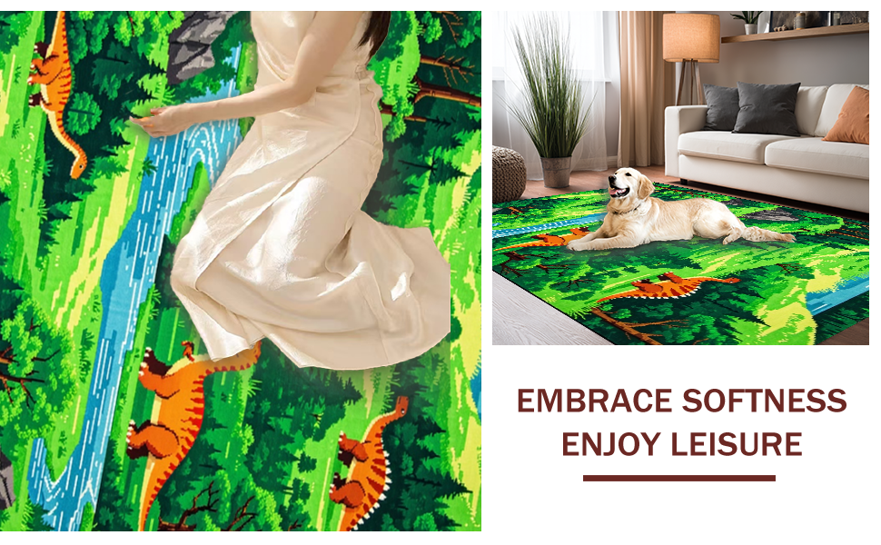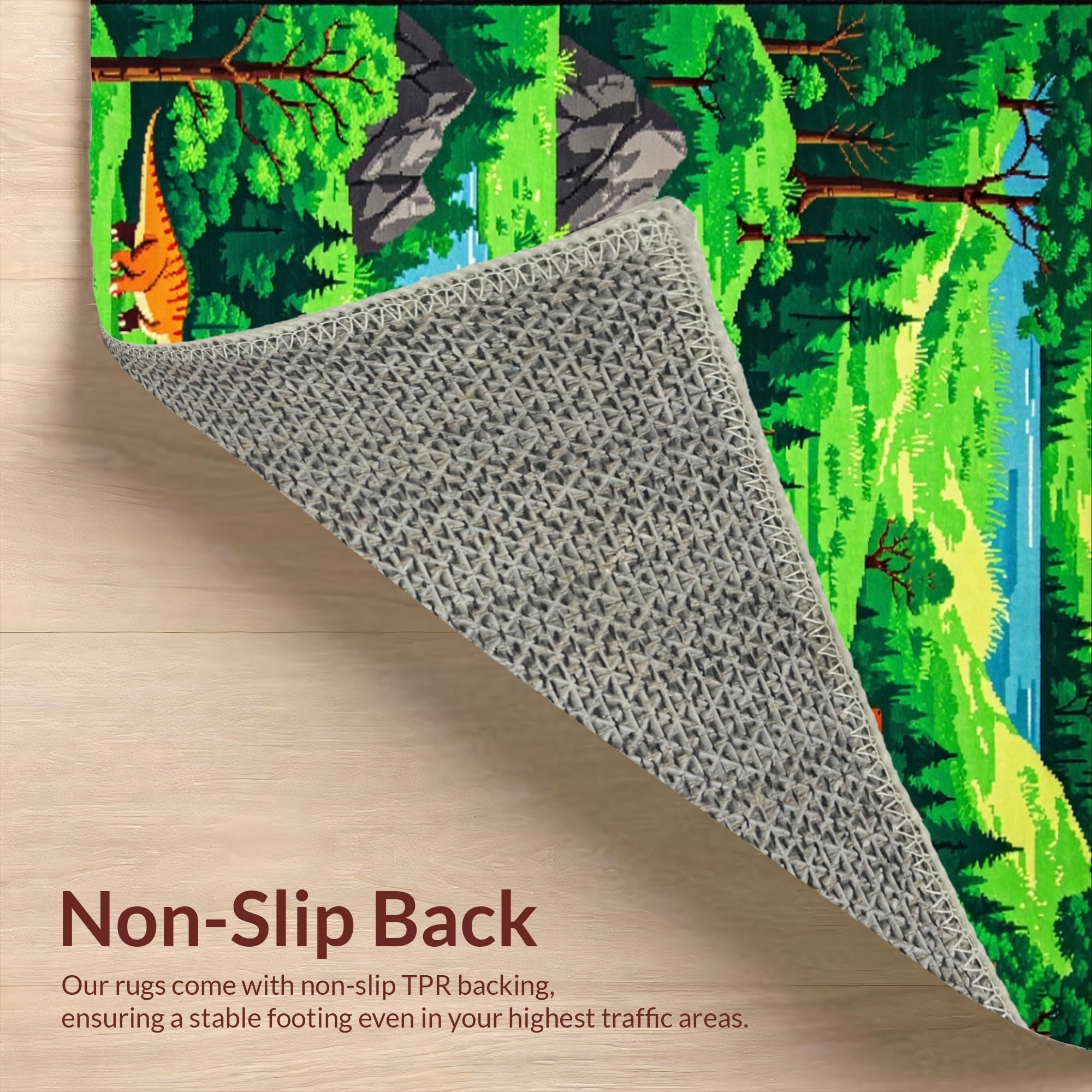 Ultra Soft Area Rug, Non Slip, Stain Resistant, Washable Area Rugs for Living Room, Bedroom, Joyful Multi-Colored Dino World(Green) Overview:
