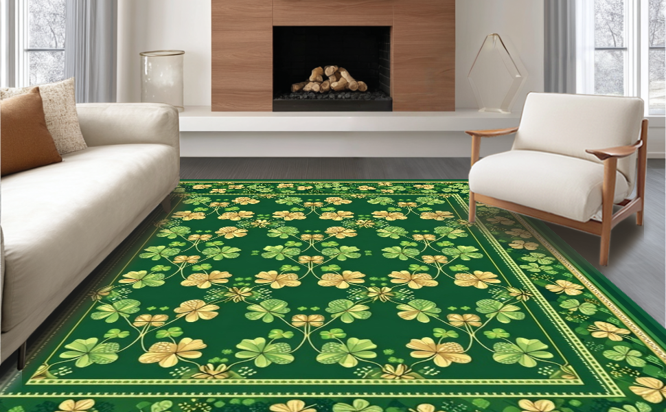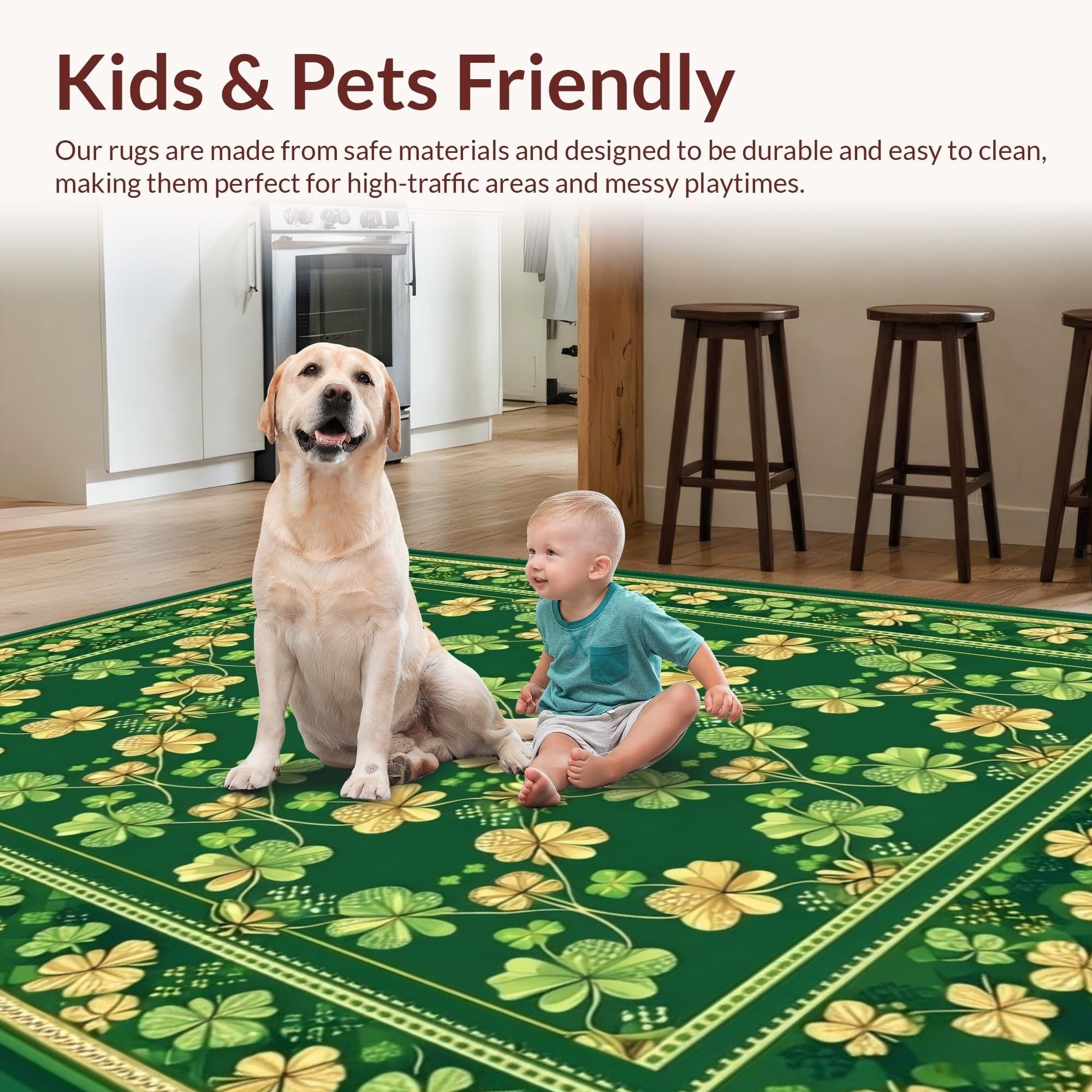 Ultra Soft Area Rug, Non Slip, Stain Resistant, Washable Area Rugs for Living Room, Bedroom, Joyful Nature Inspired Artwork(Green) Overview: