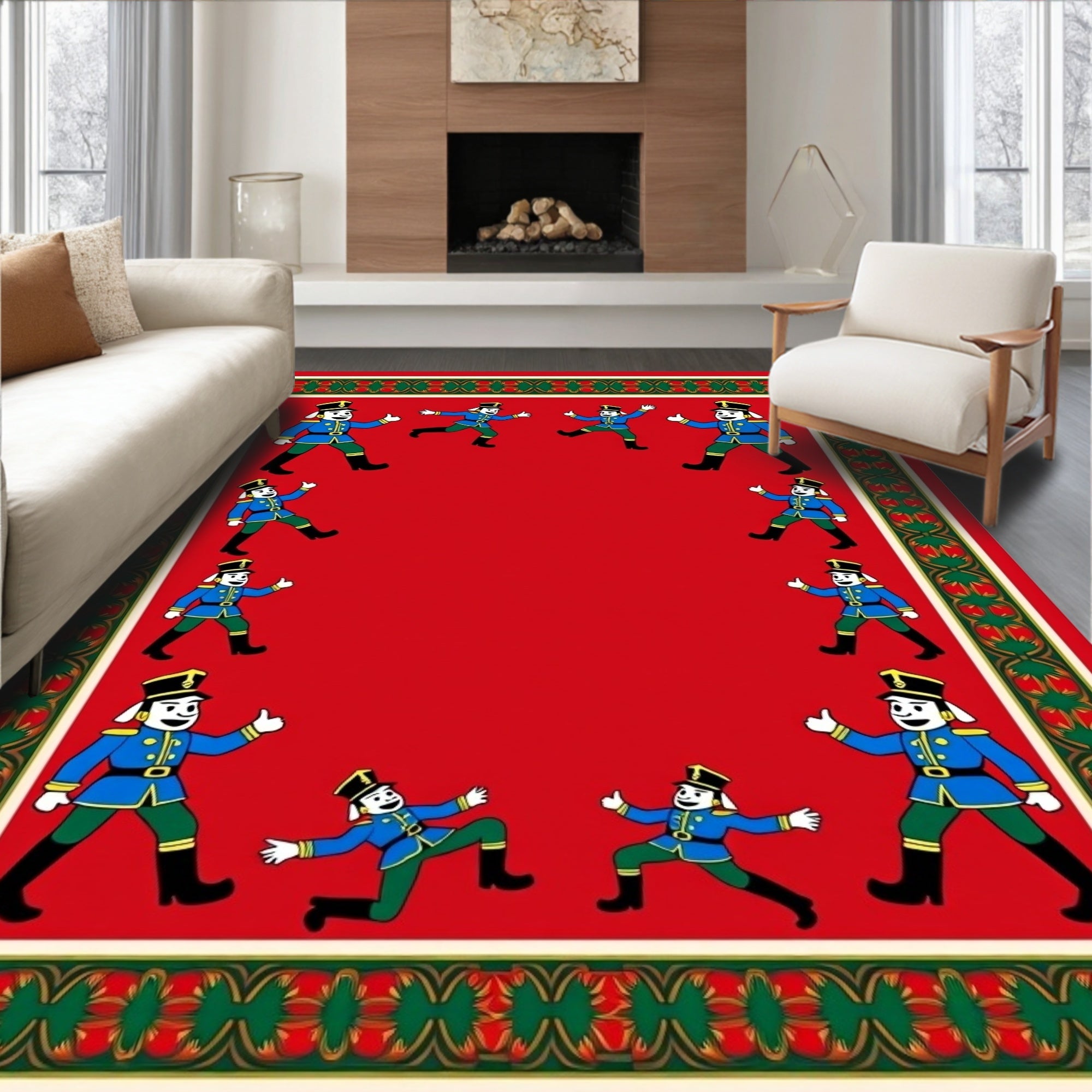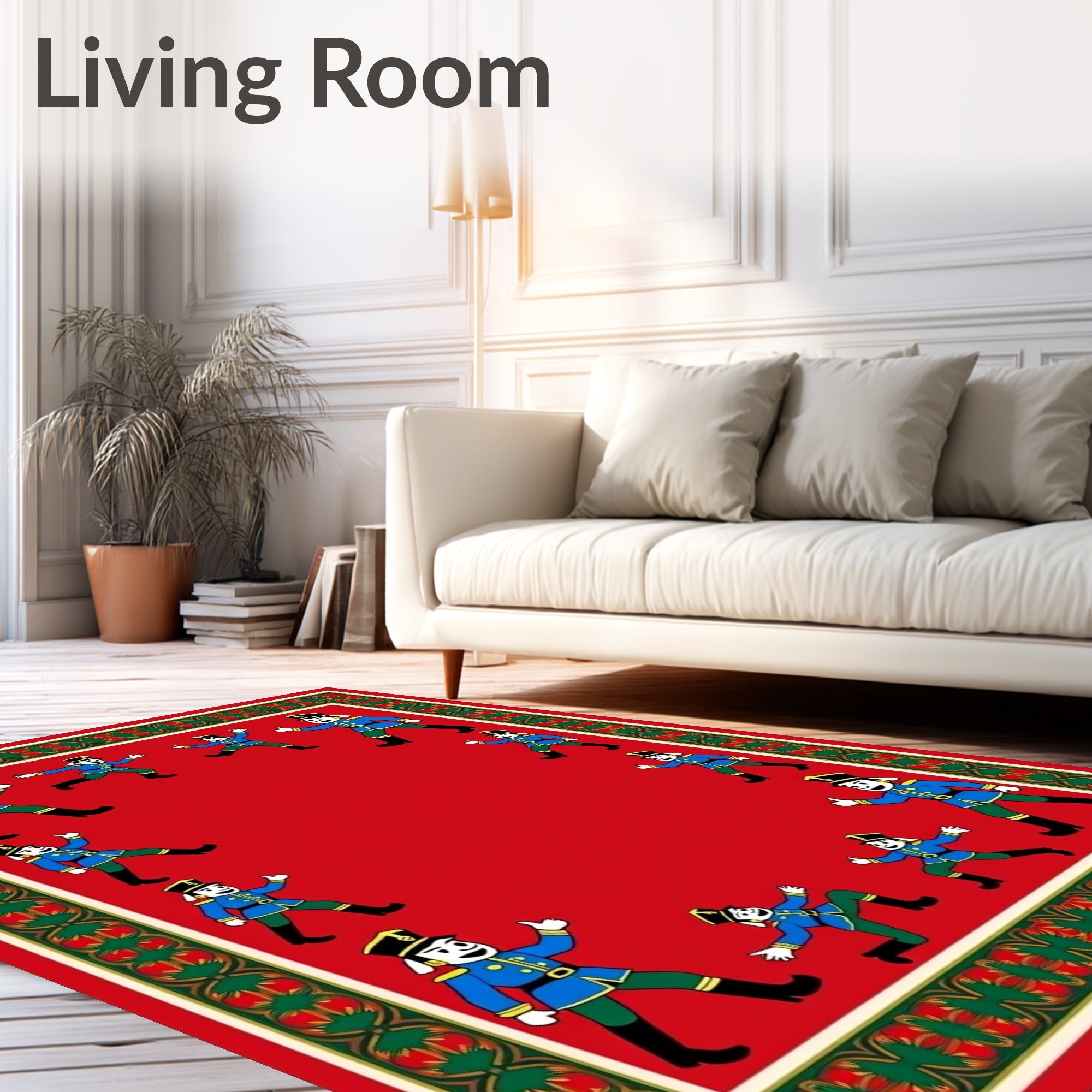 Ultra Soft Area Rug, Non Slip, Stain Resistant, Washable Area Rugs for Living Room, Bedroom, Joyful Nutcracker Symphony Enchanted Pathway Adornment(Red) Overview: