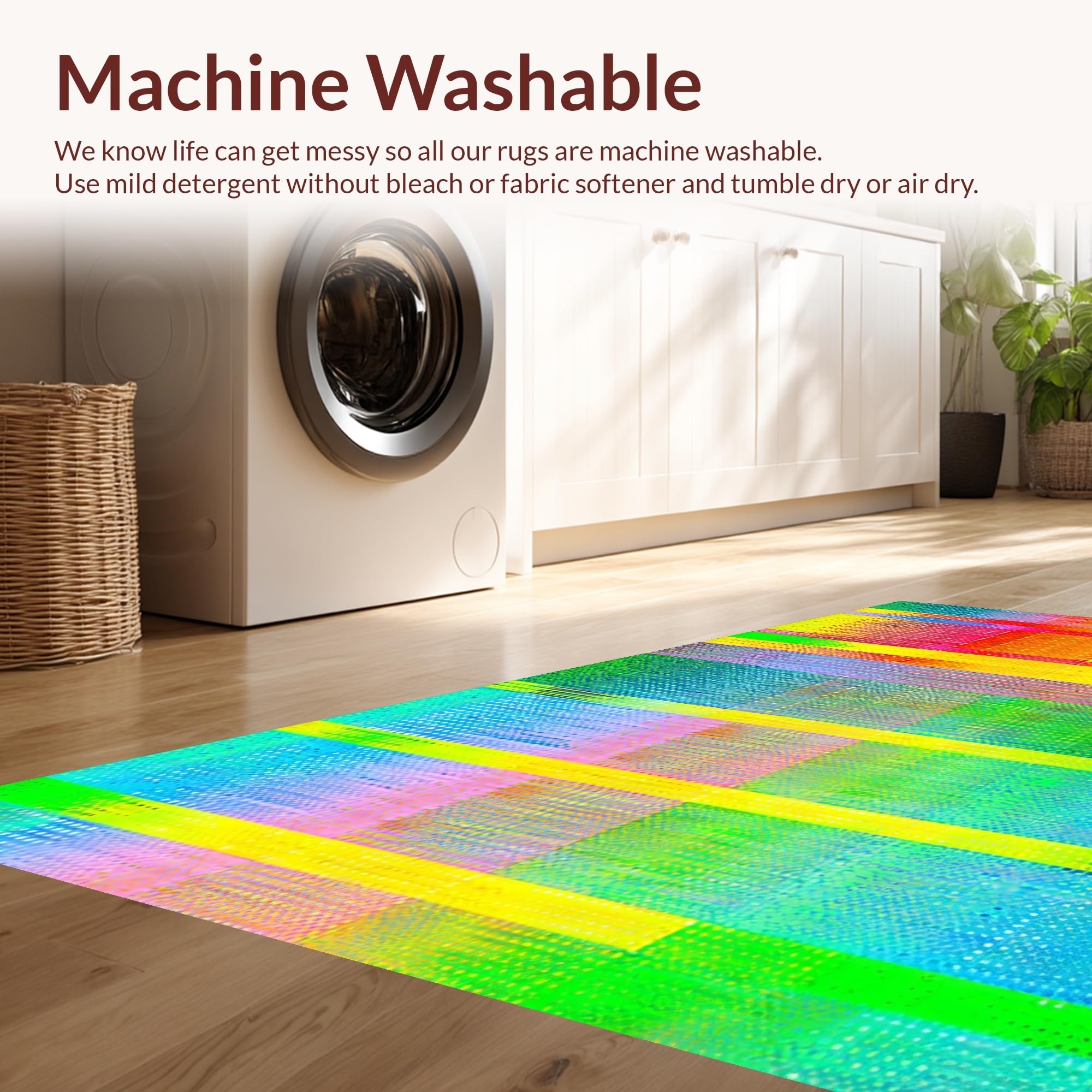 - Machine Washable: Our rugs can be easily thrown in the wash machine.